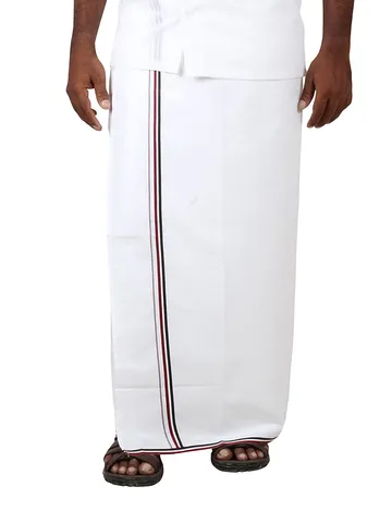 Product Details This Prakasam Cotton Men's White Colour Political Party Dhoti is a symbol of elegance and tradition. Crafted with fine quality materials, it exudes sophistication and charm. The dhoti's dimensions of 1.28 meters in length and 2.00 meters in width ensure a comfortable fit for any occasion. Whether worn at a political gathering or a celebratory event, this dhoti is sure to make a statement with its classic white color and impeccable craftsmanship. Step out in style and showcase your unique sense of fashion with this timeless piece.