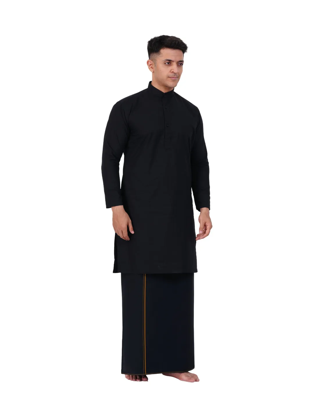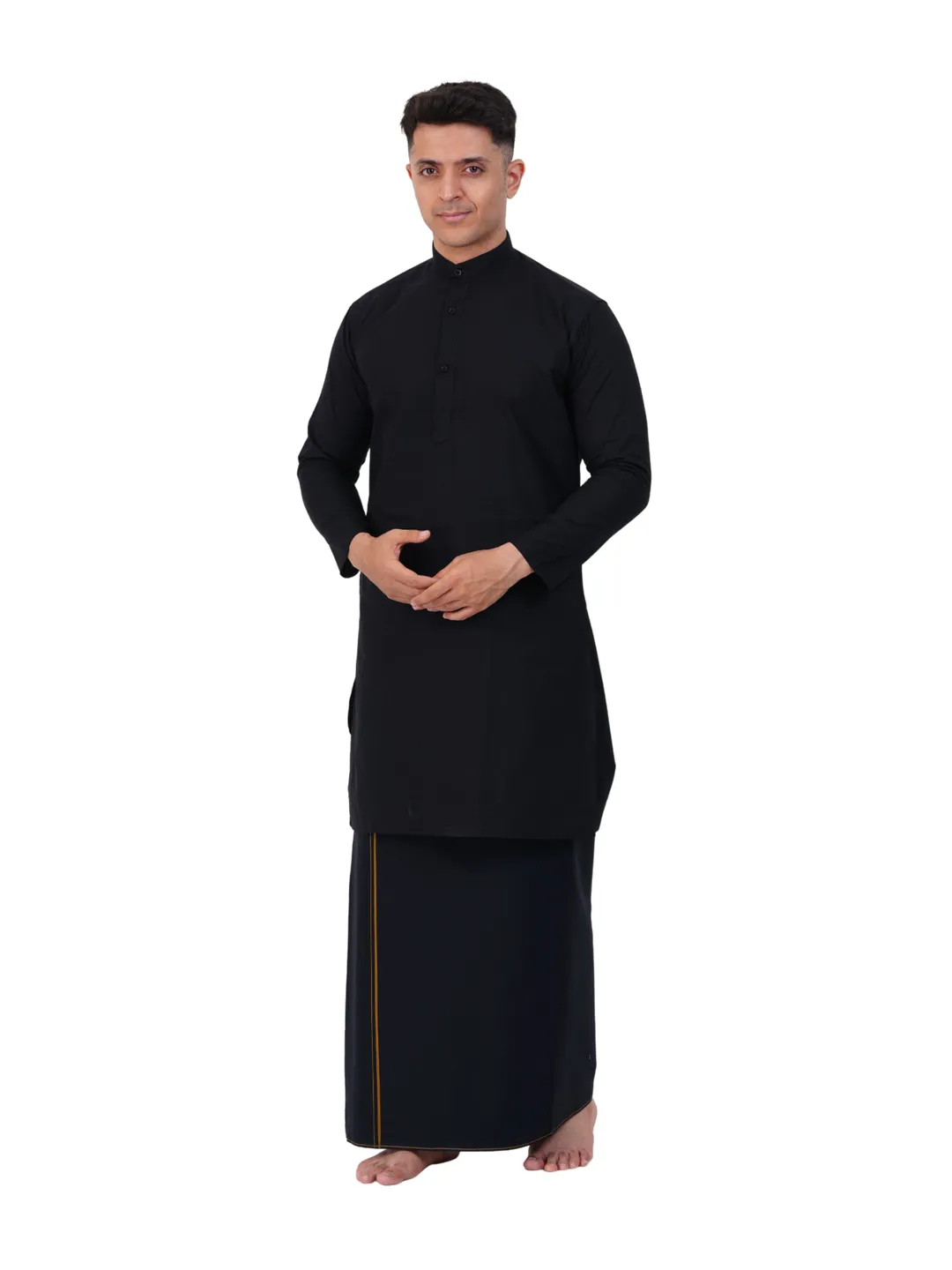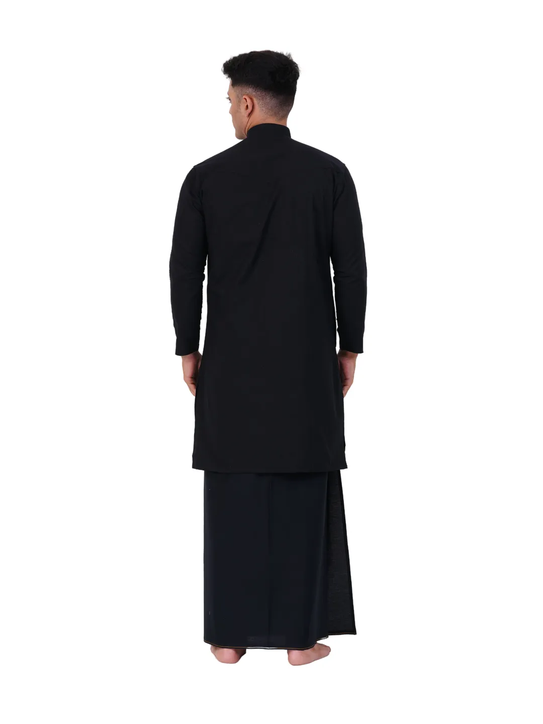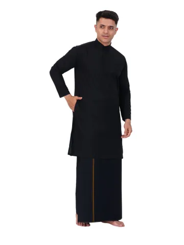 Aiyappa Collections Readymade Full Sleeve Black Colour kurta Shirt(Mandarin Coller) with Readymade Flexi Size Thin Border Black Dhoti (2 in 1) Set