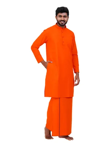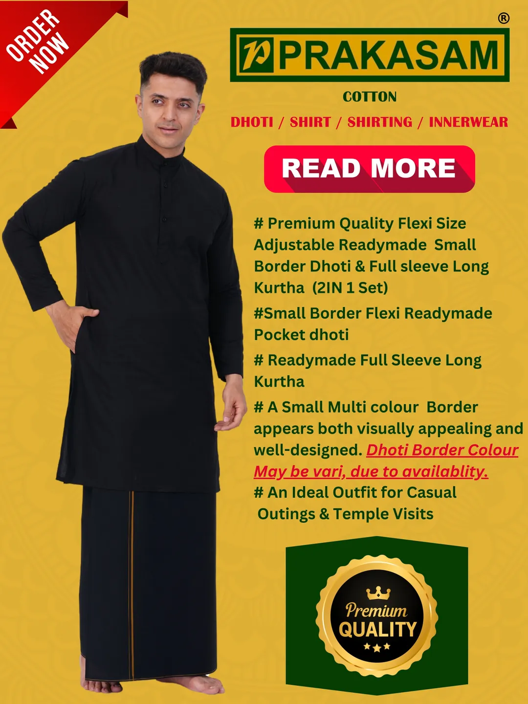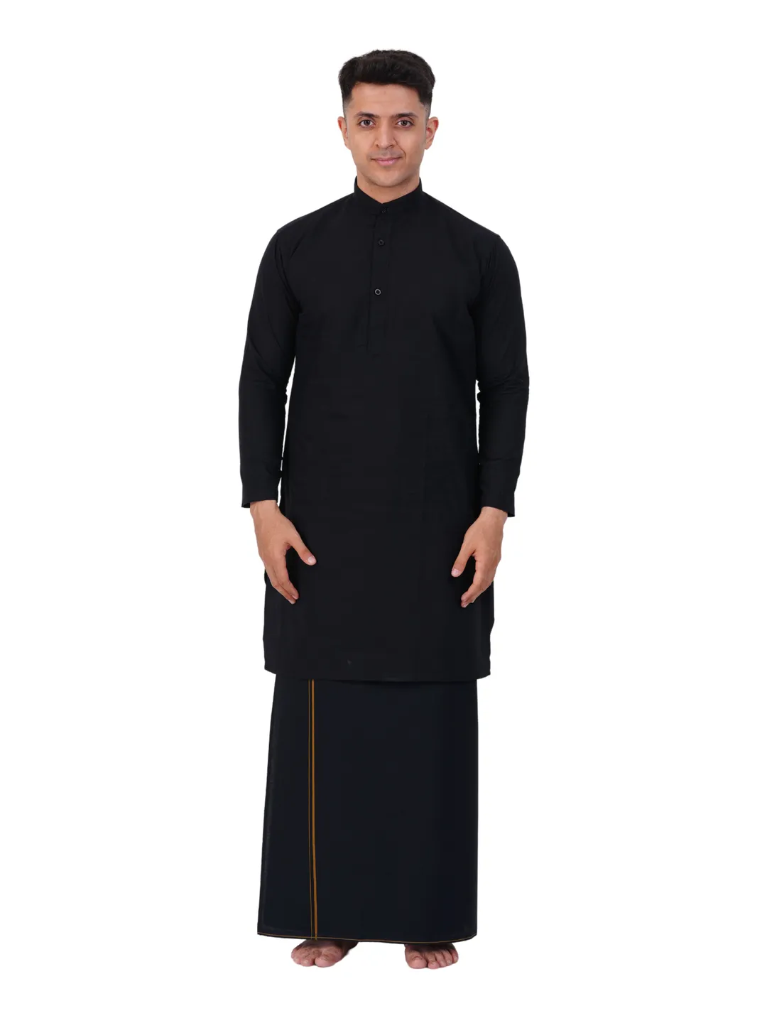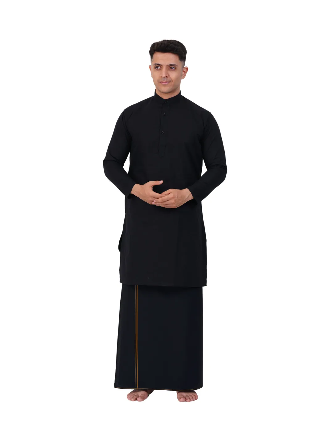 Aiyappa Collections Readymade Full Sleeve Black Colour kurta Shirt(Mandarin Coller) with Readymade Flexi Size Thin Border Black Dhoti (2 in 1) Set