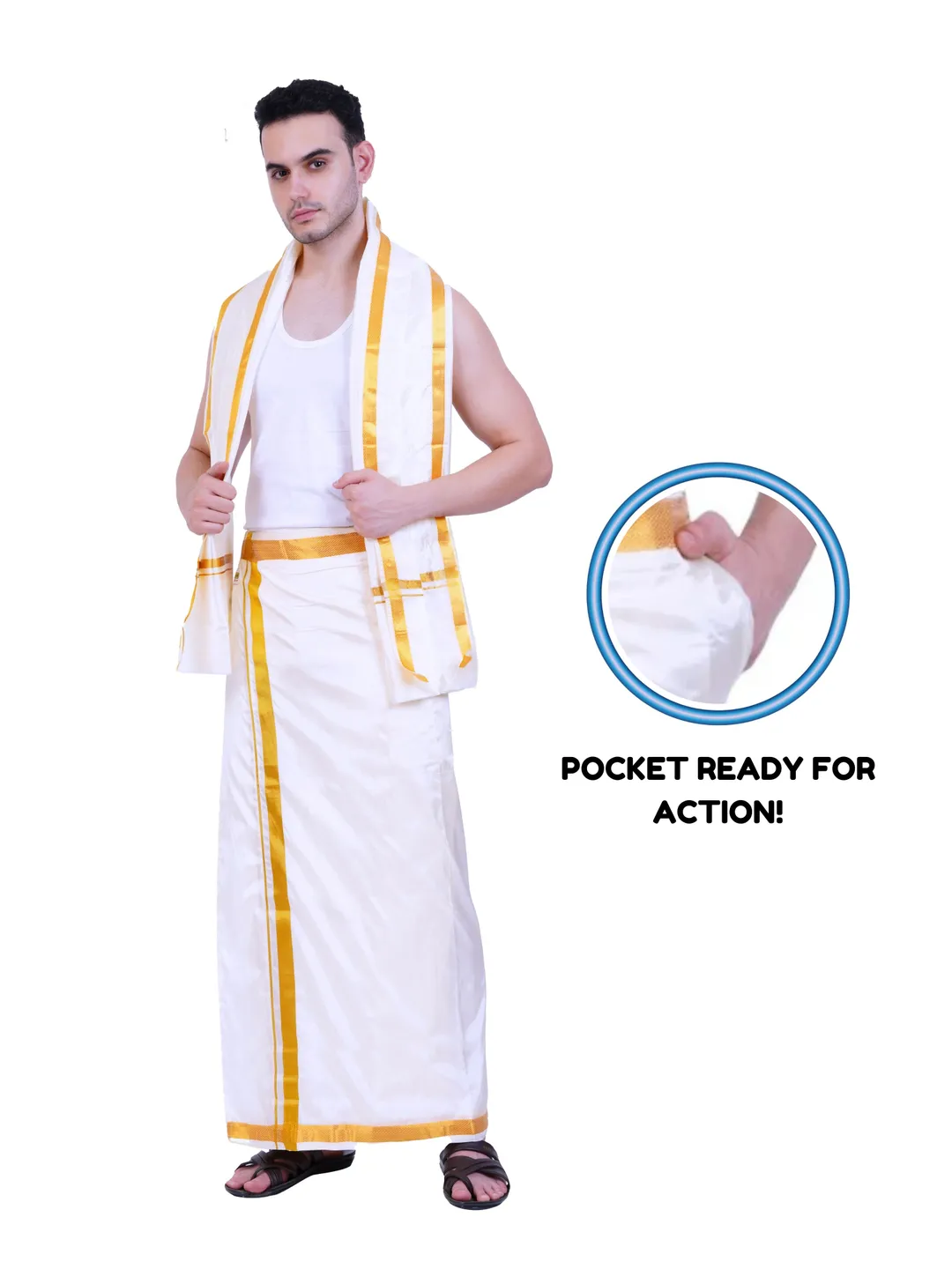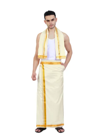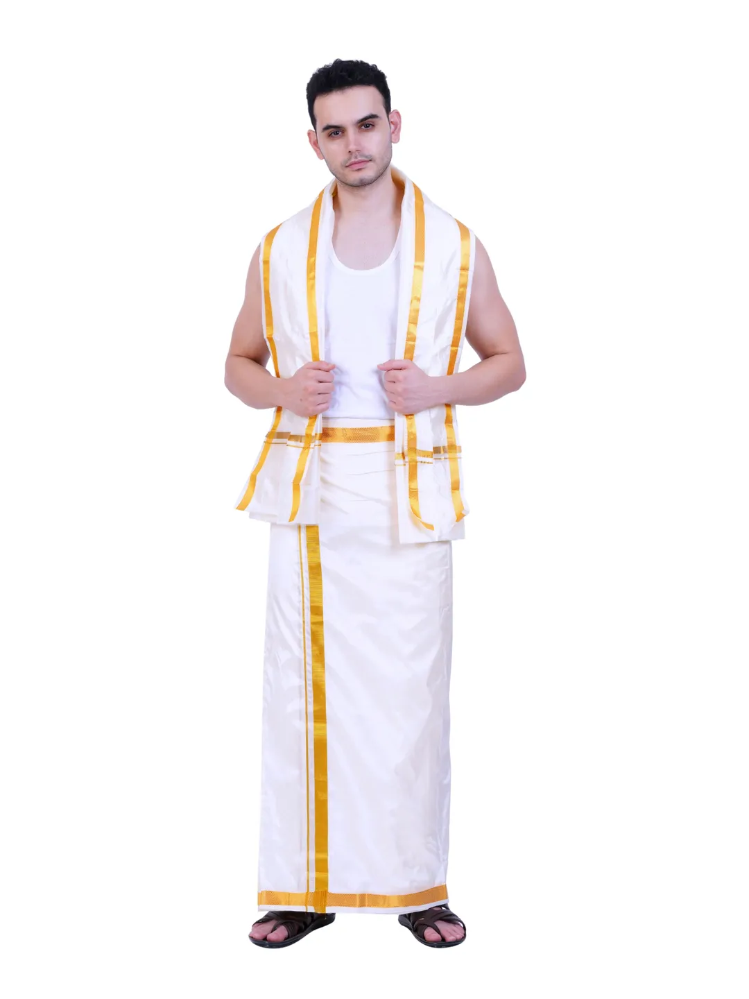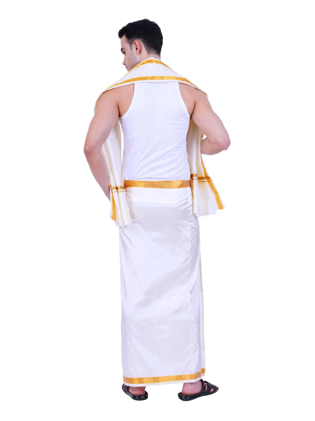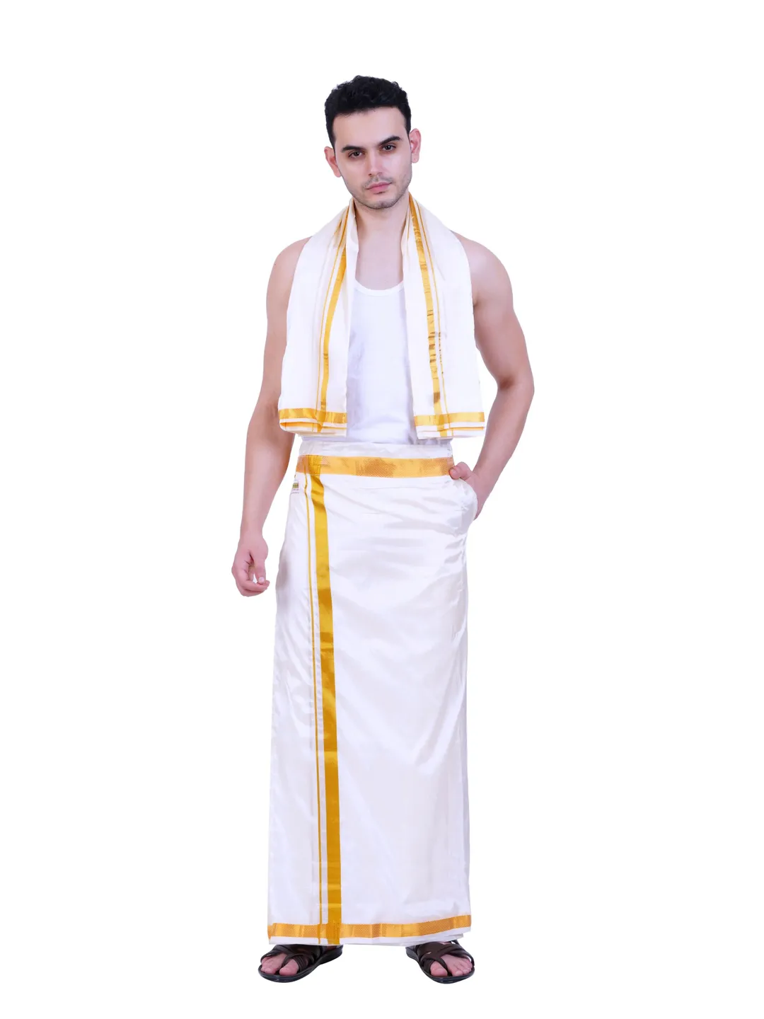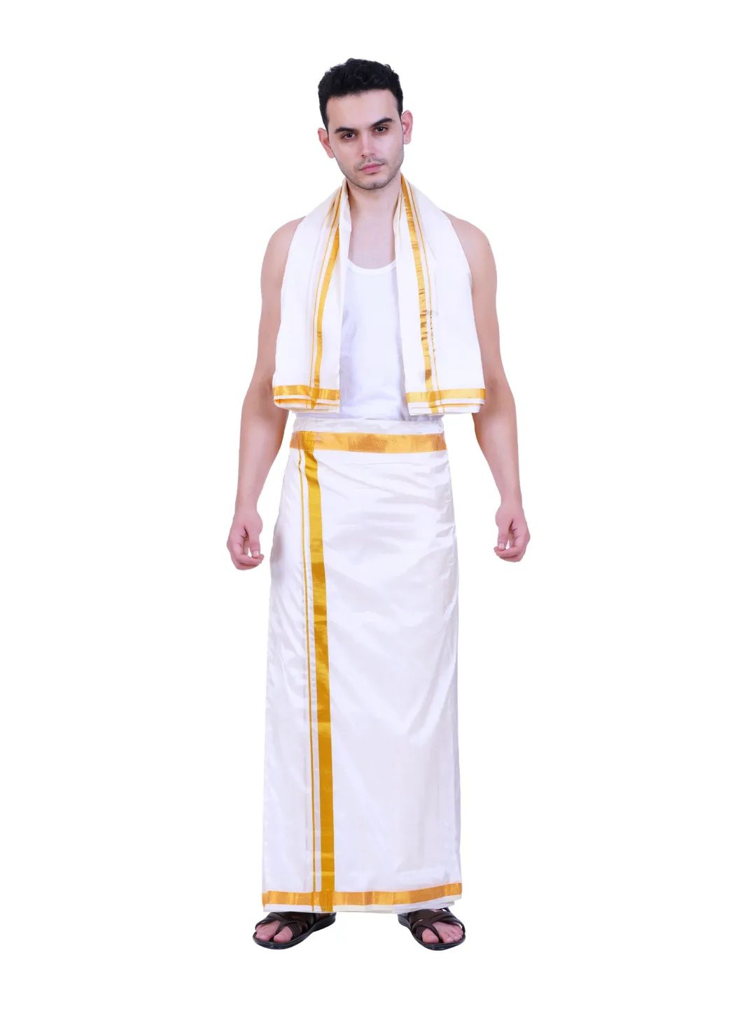 Art Silk Jari Border White Colour Readymade Double Dhoti with Towel