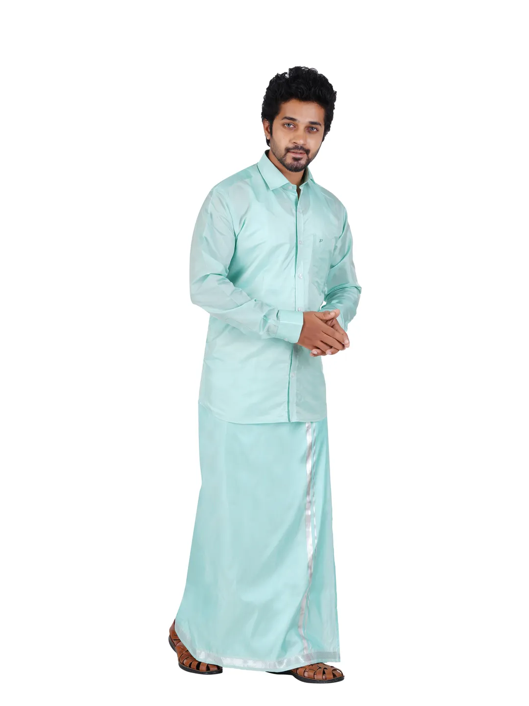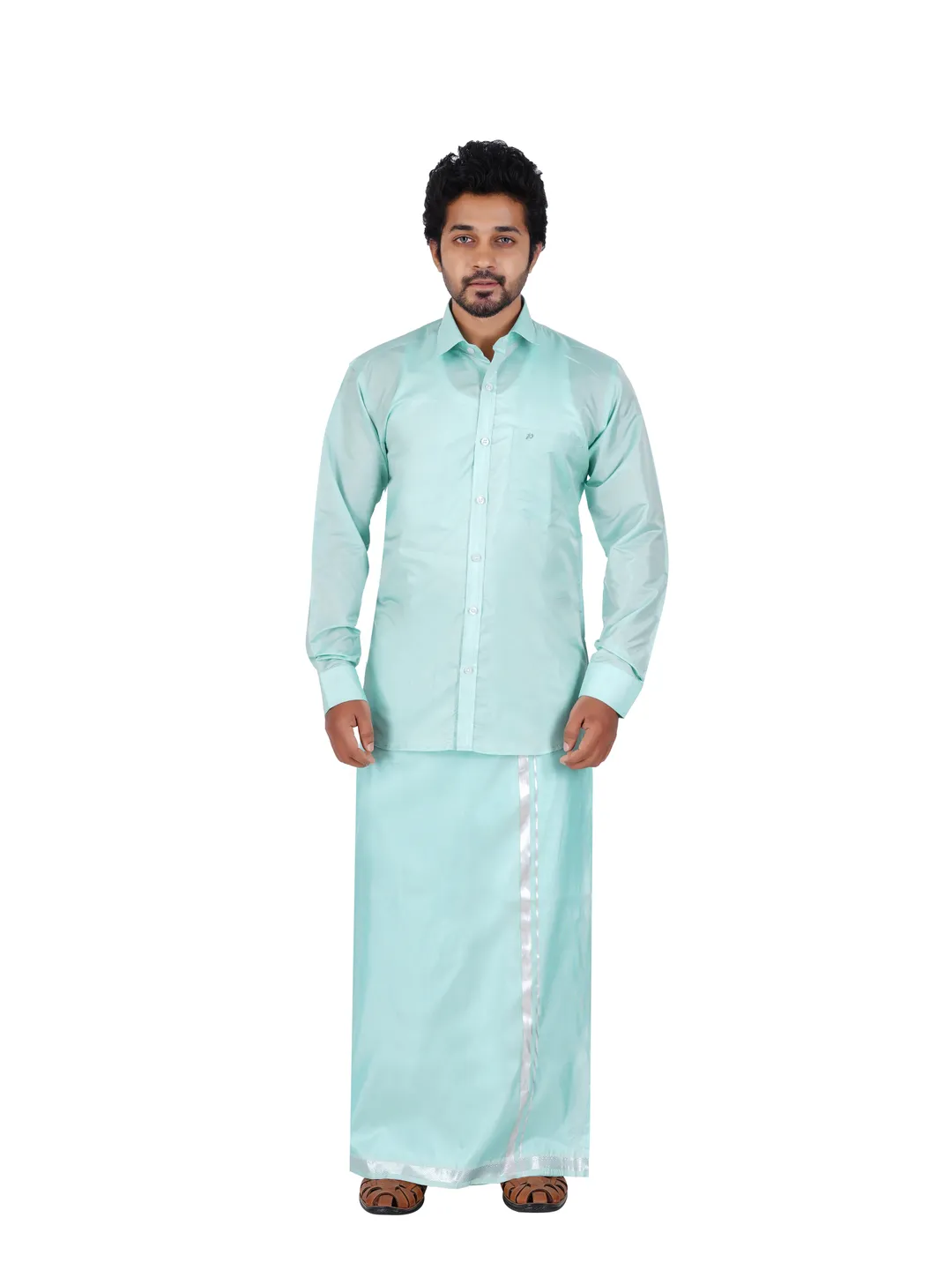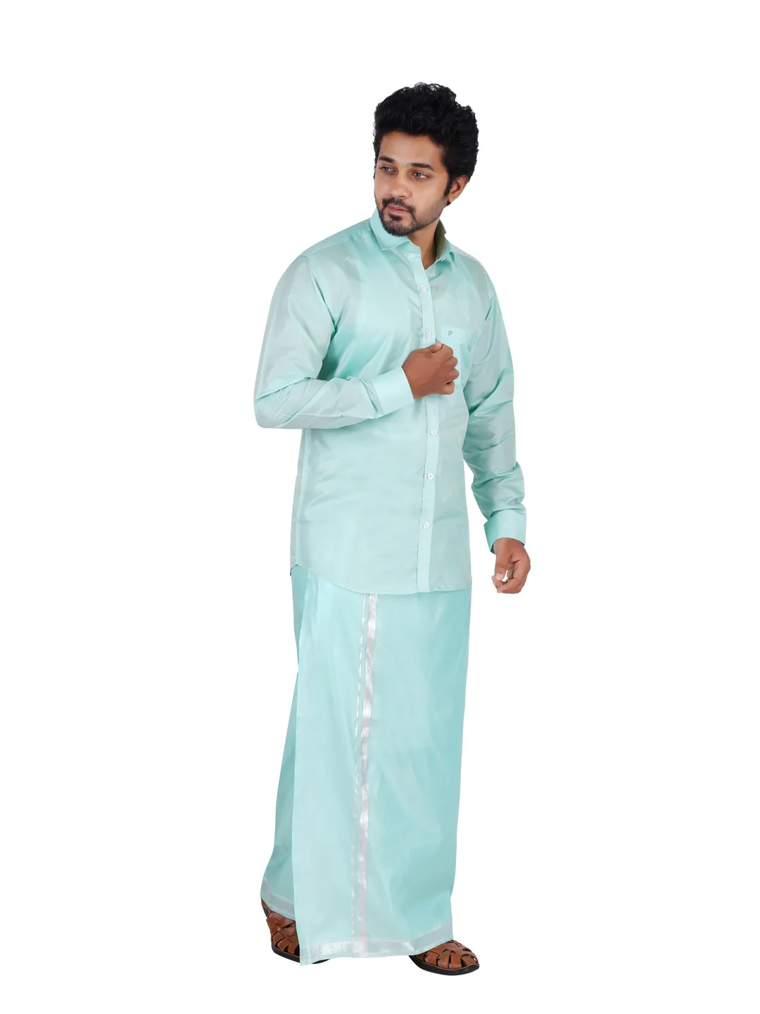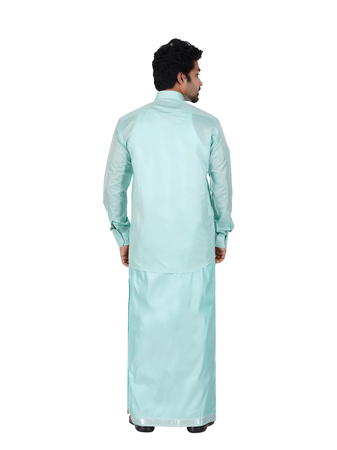 Asha Silk Wedding set 2 In 1 Neblue Colour (Readymade shirt With 3.60Meter Dhoti)