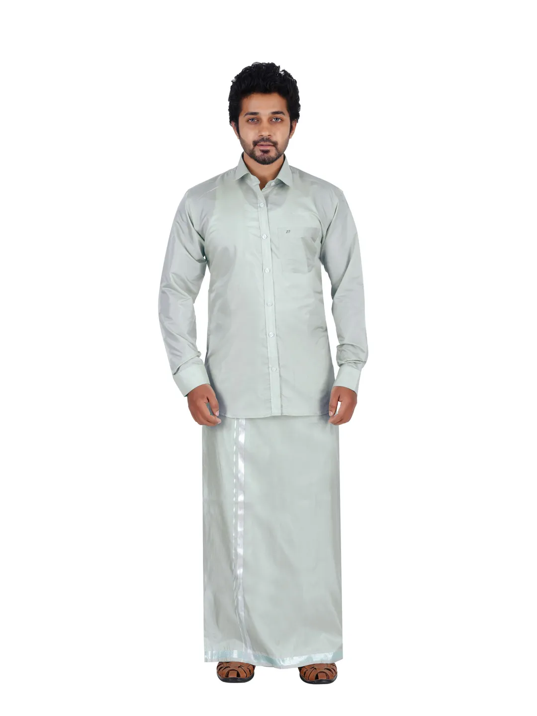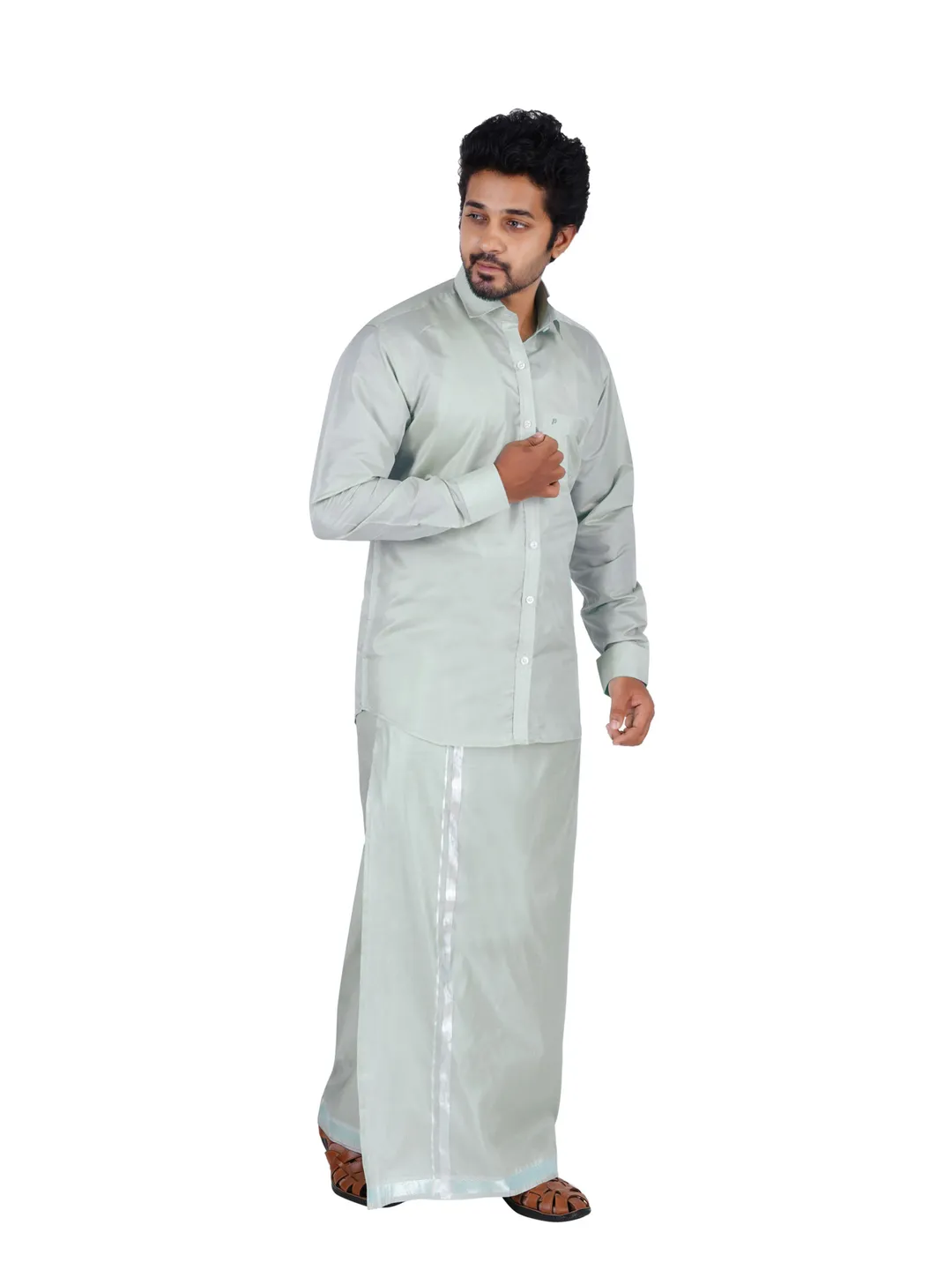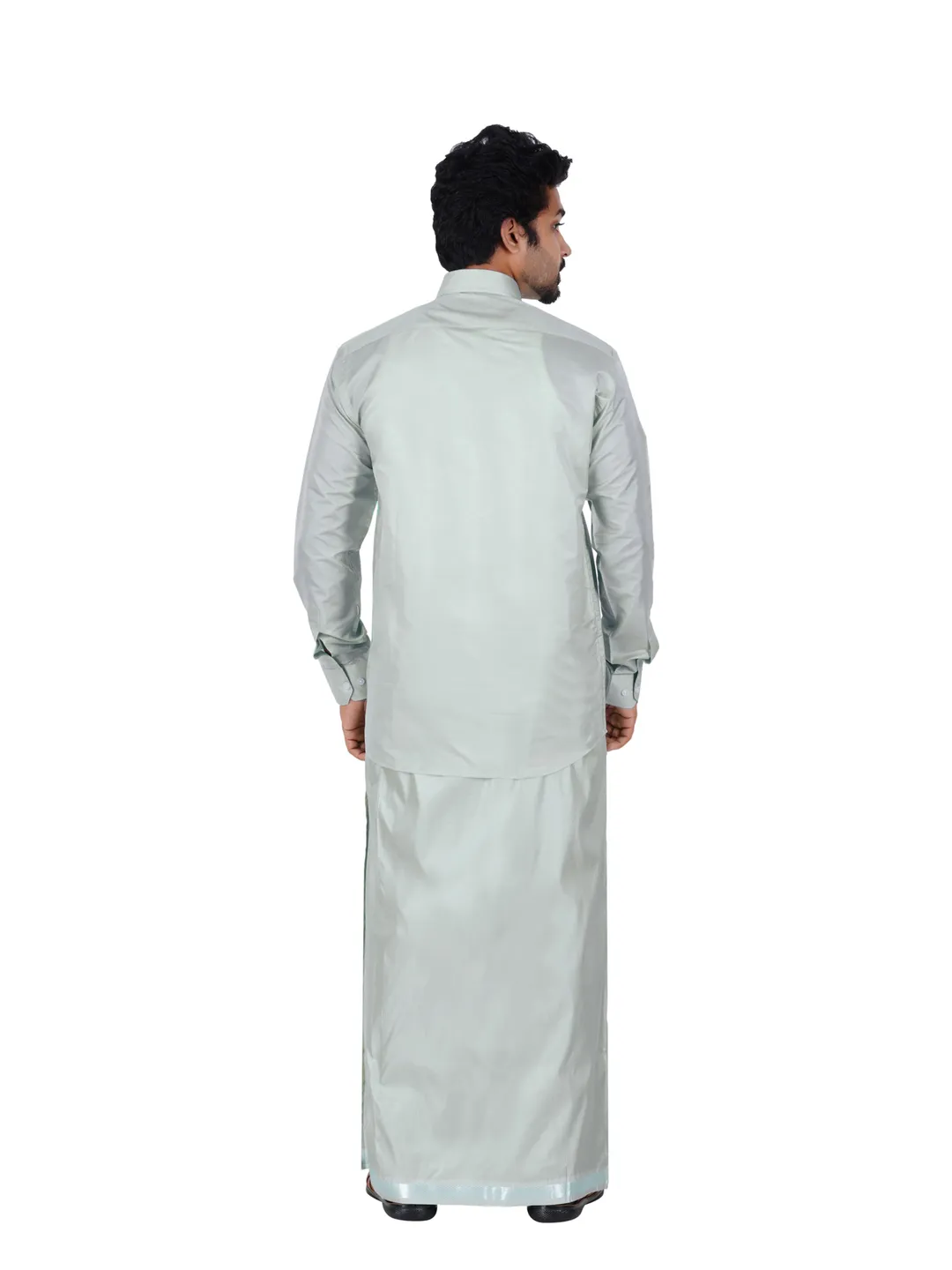 Asha Silk Wedding set 2 In 1 Silver Colour (Readymade shirt With 3.60Meter Dhoti)