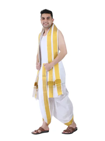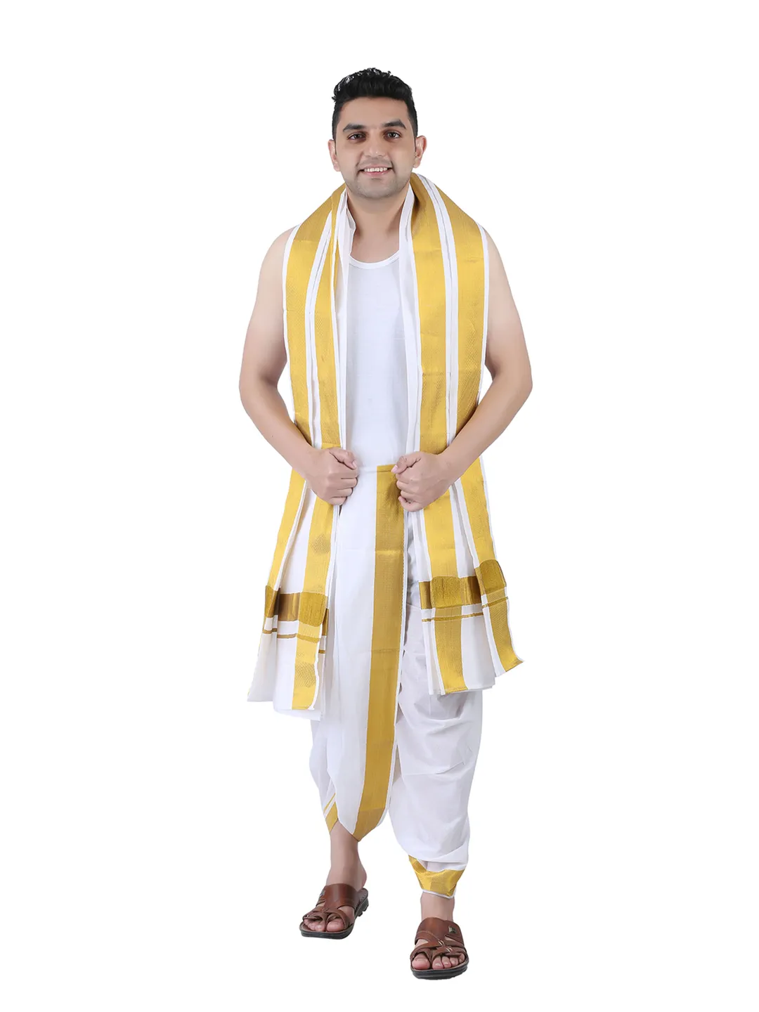 Cotton 9x5 White Colour Panchakacham With Towel set (Jari - 100k)