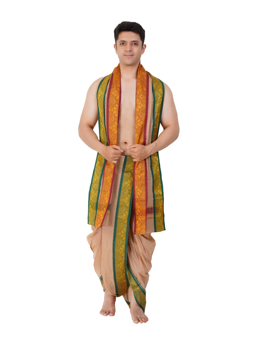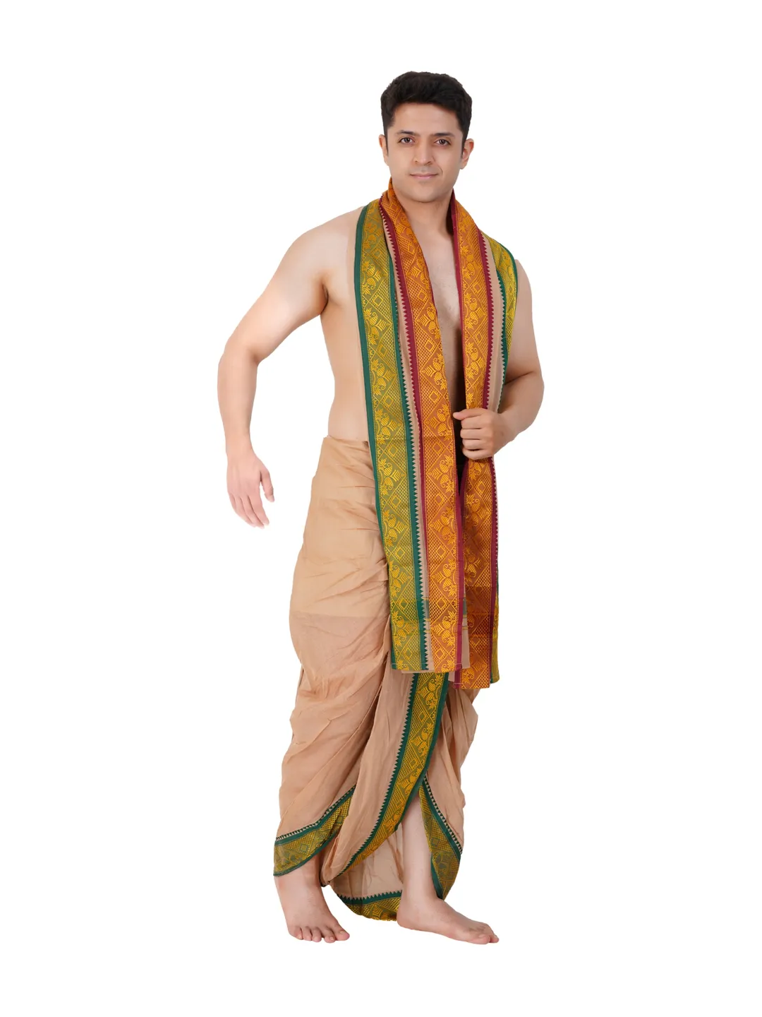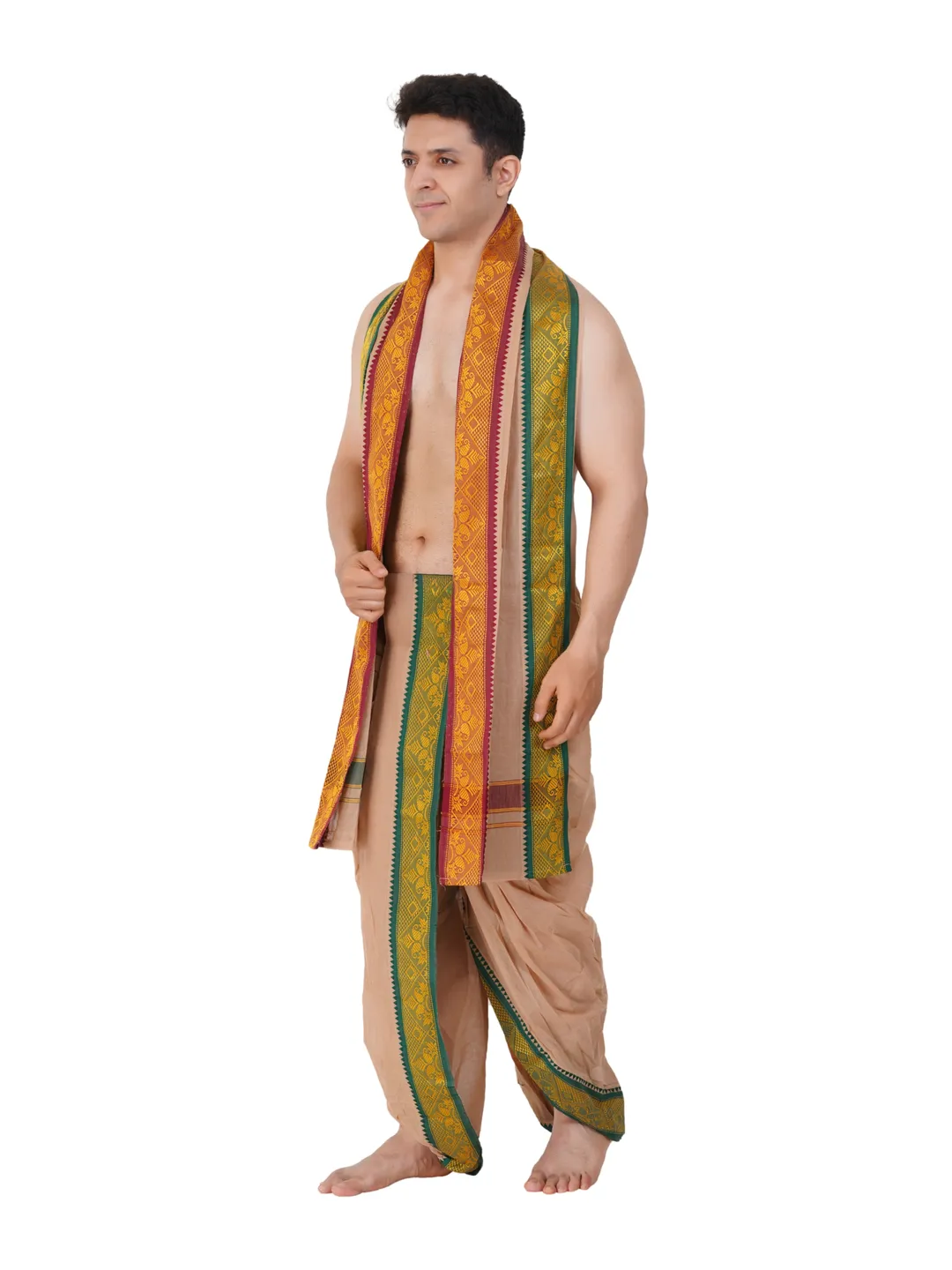 Cotton Biscut Kavi Colour 9x5 Panchakacham with Towel Set (3 inch)