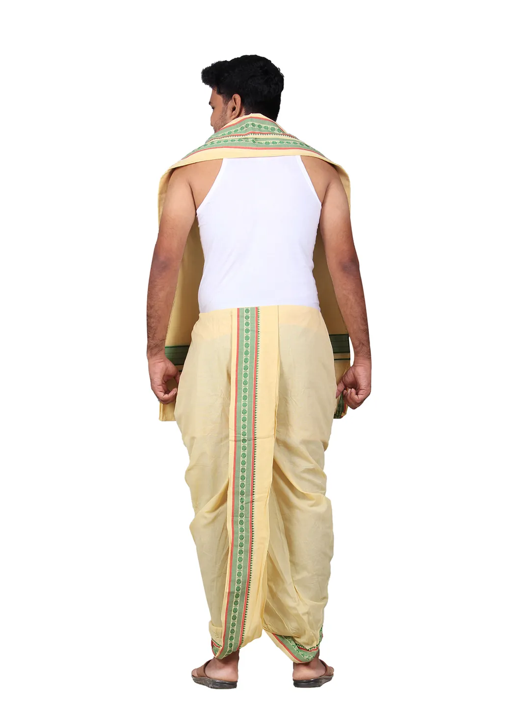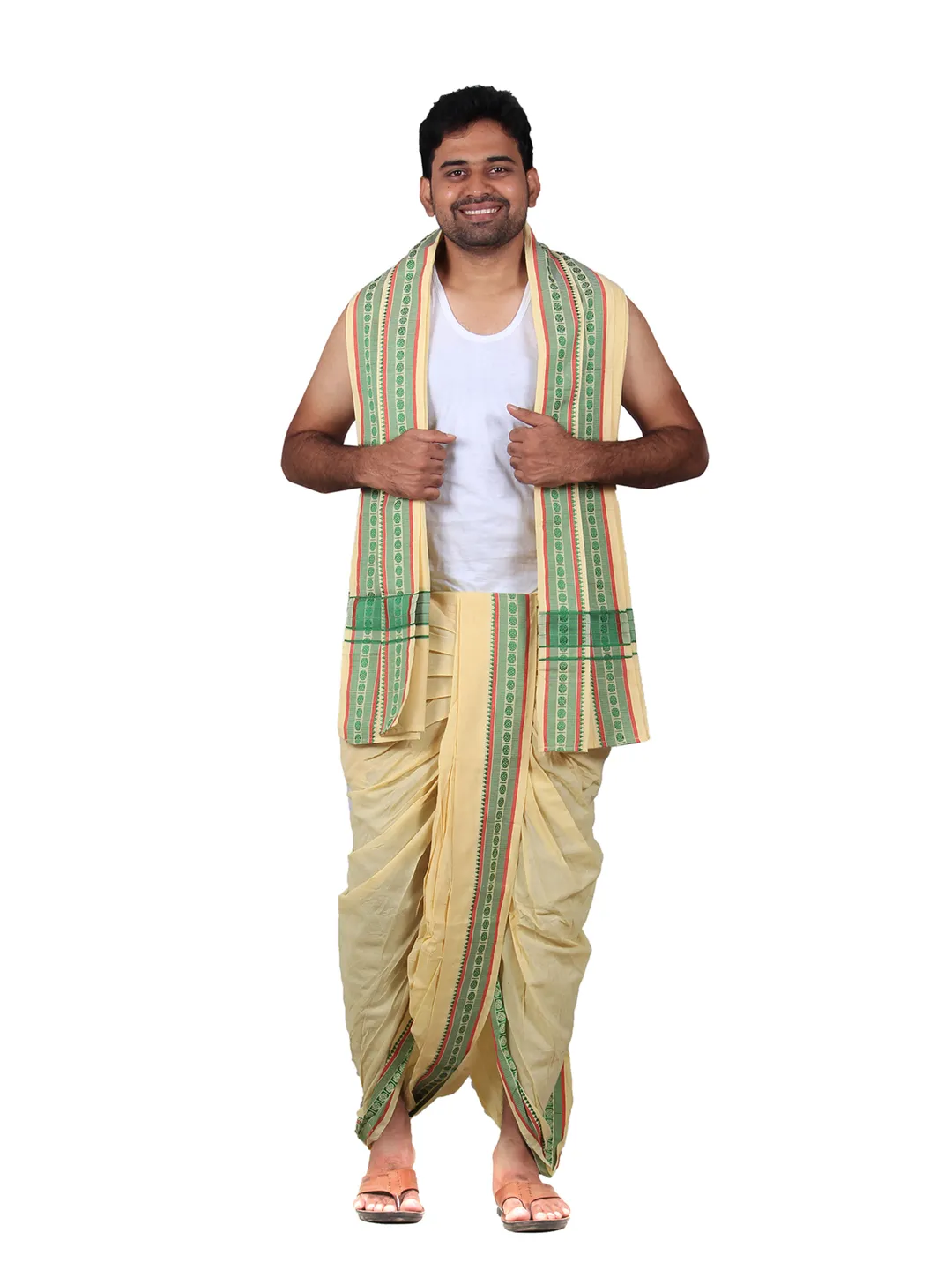 Product Details Prakasam Cotton Is the one of the leading online dhoti sale Brand in India. We offered premium quality cotton dhoties and shirtings. Here This product is panjakejam dhoti and towel set. its Double dhoti and a single towel attached togather. Prakasam Cotton Brand (9x5) 4.00 Meter colour Dhoti With 2.20 Meter Towel. Its Looks very attract to others. A perfect wear for temple & party.