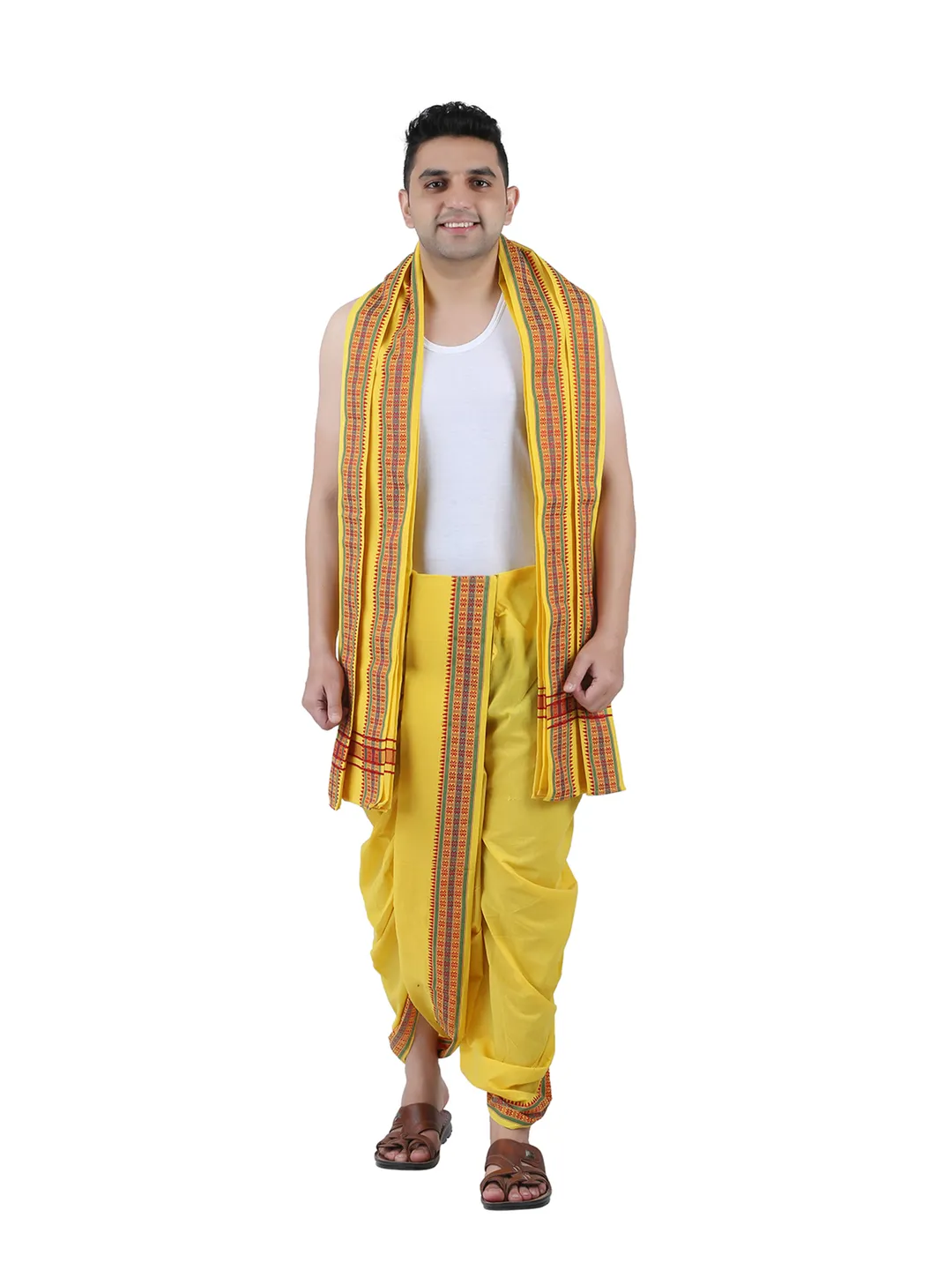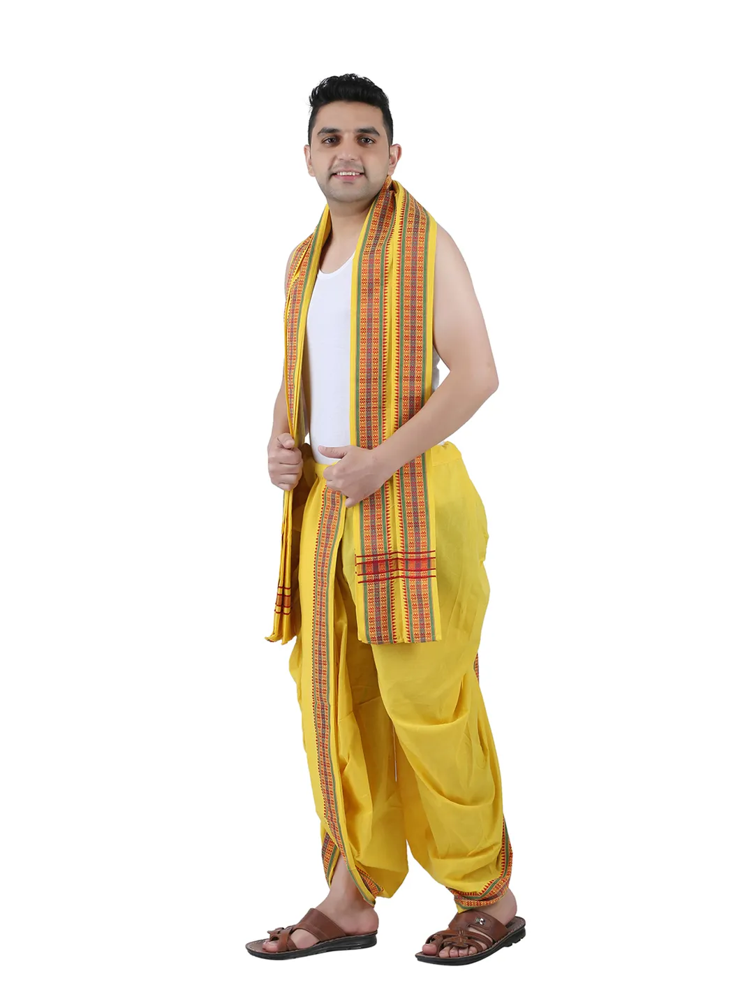 Product Details Prakasam Cotton Is the one of the leading online dhoti sale Brand in India. We offered premium quality cotton dhoties and shirtings. Here This product is panjakejam dhoti and towel set. its Double dhoti and a single towel attached togather. Prakasam Cotton Brand (9x5) 4.00 Meter colour Dhoti With 2.20 Meter Towel. Its Looks very attract to others. A perfect wear for temple & party.