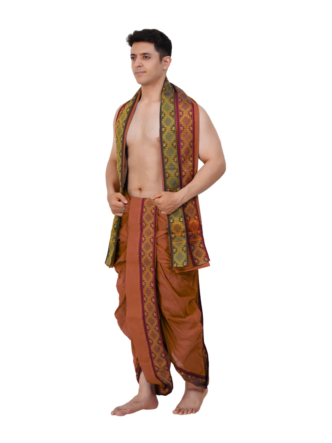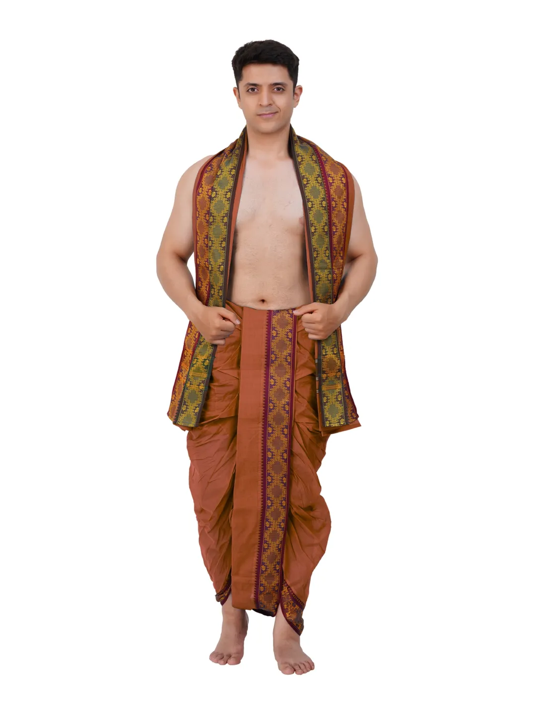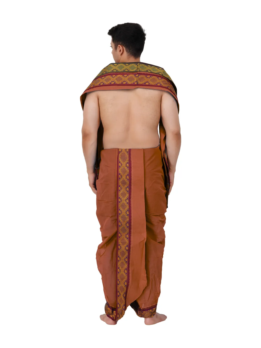Cotton Dark Kavi Colour 9x5 Panchakacham with Towel Set (3 inch)