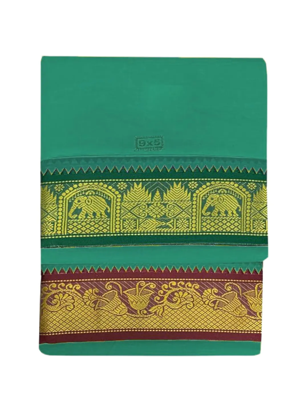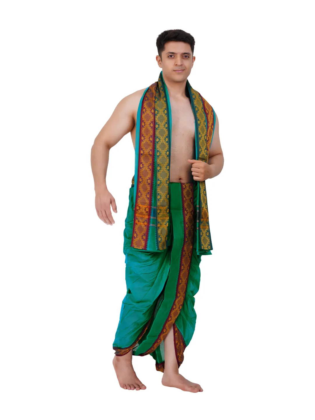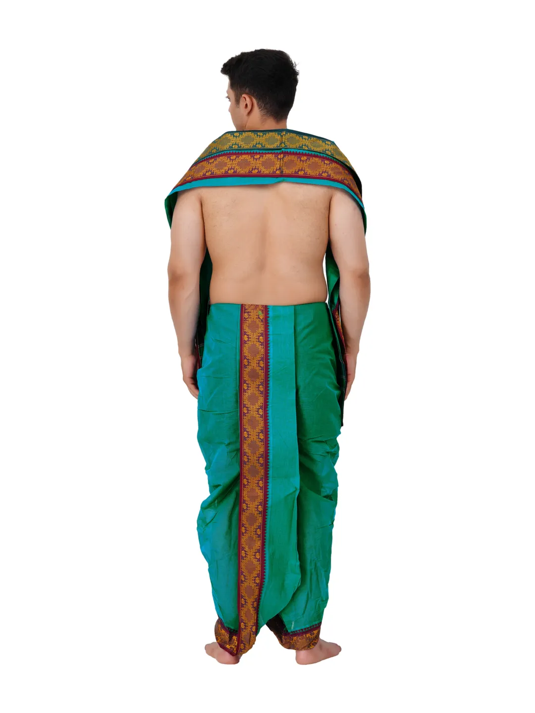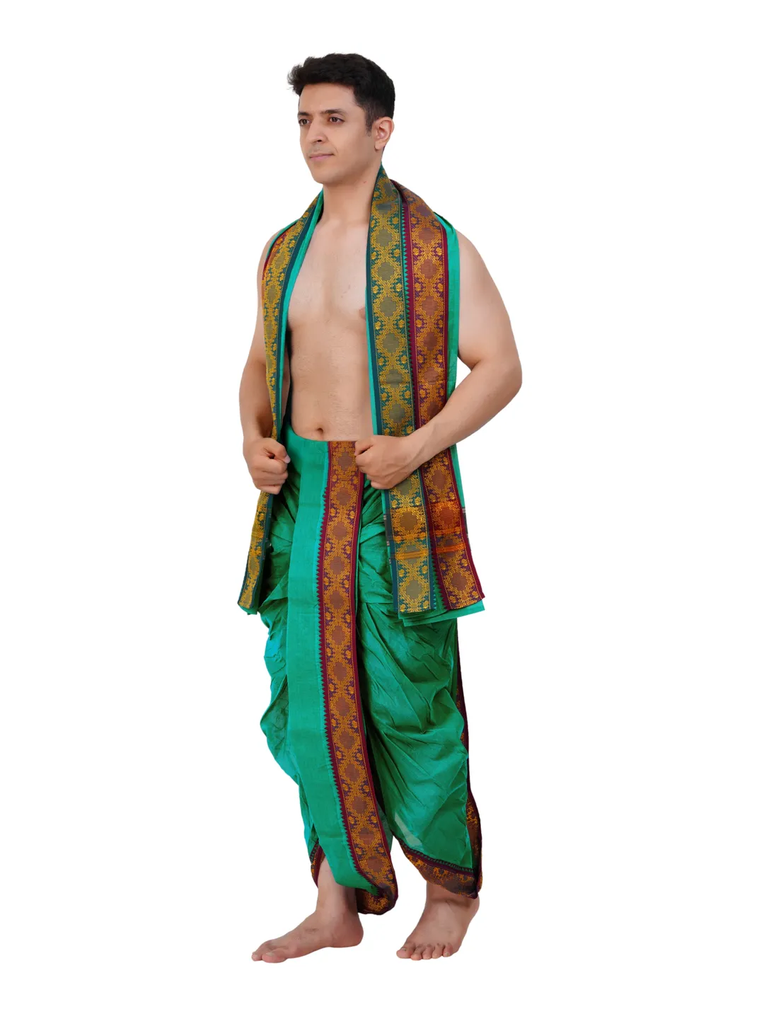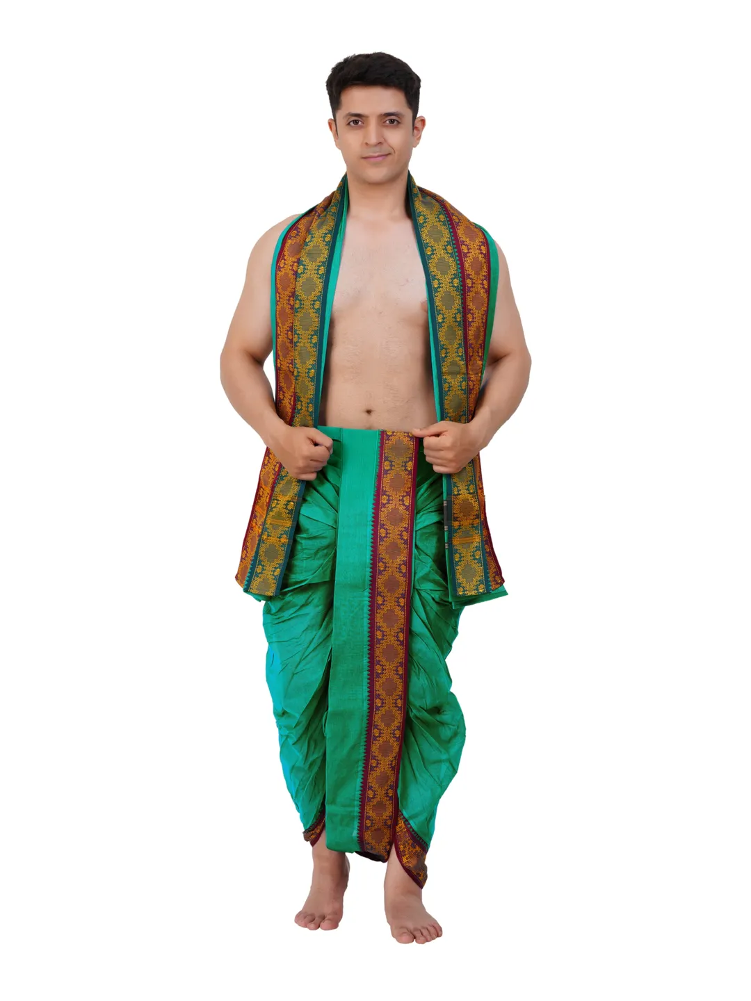 Cotton Green Colour 9x5 Panchakacham with Towel Set (3 inch)