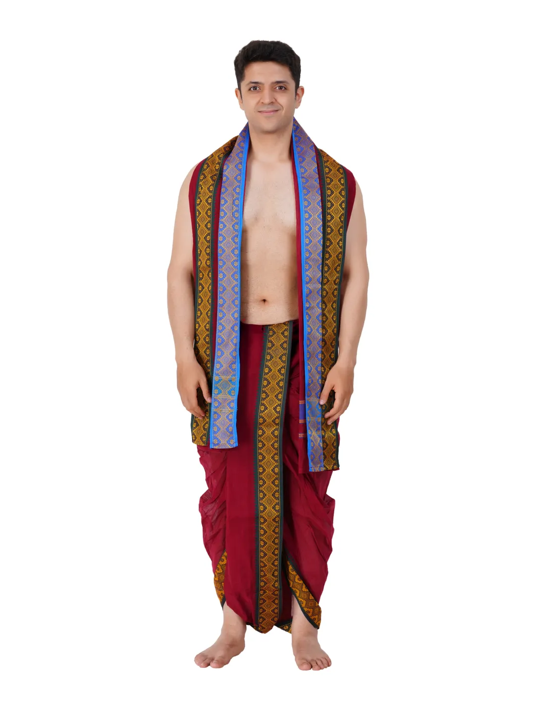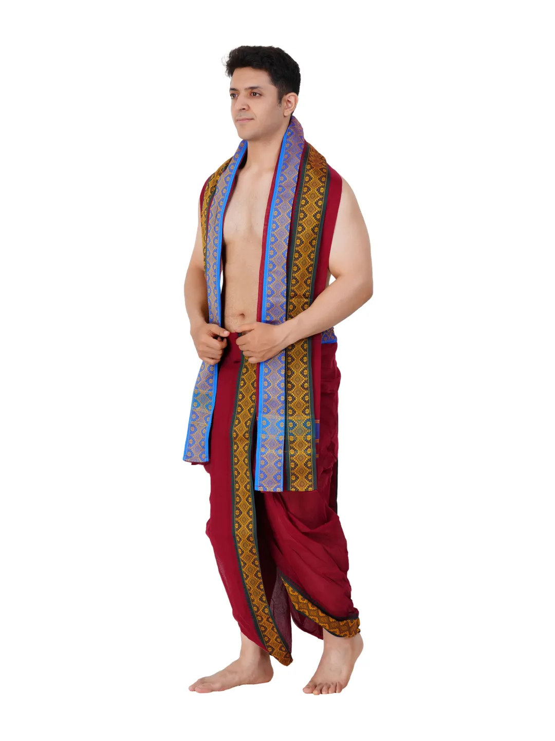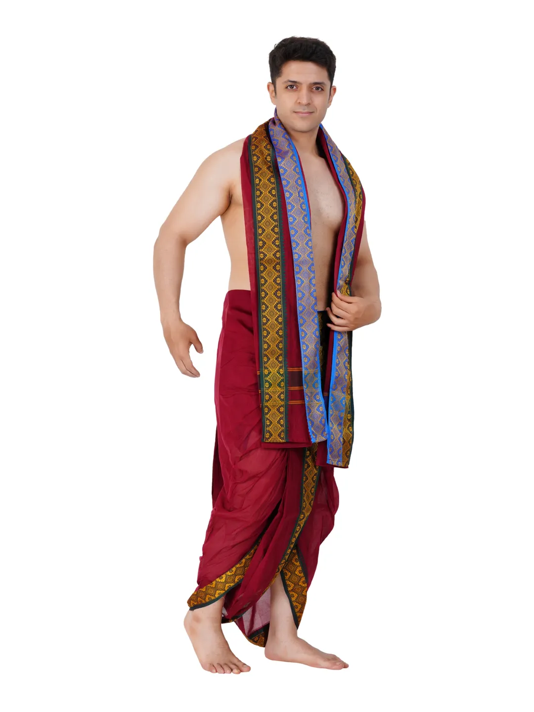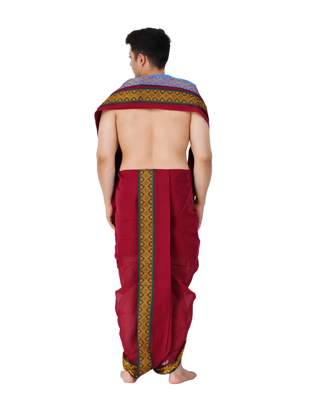Cotton Maroon Colour 9x5 Panchakacham with Towel Set (3 inch)