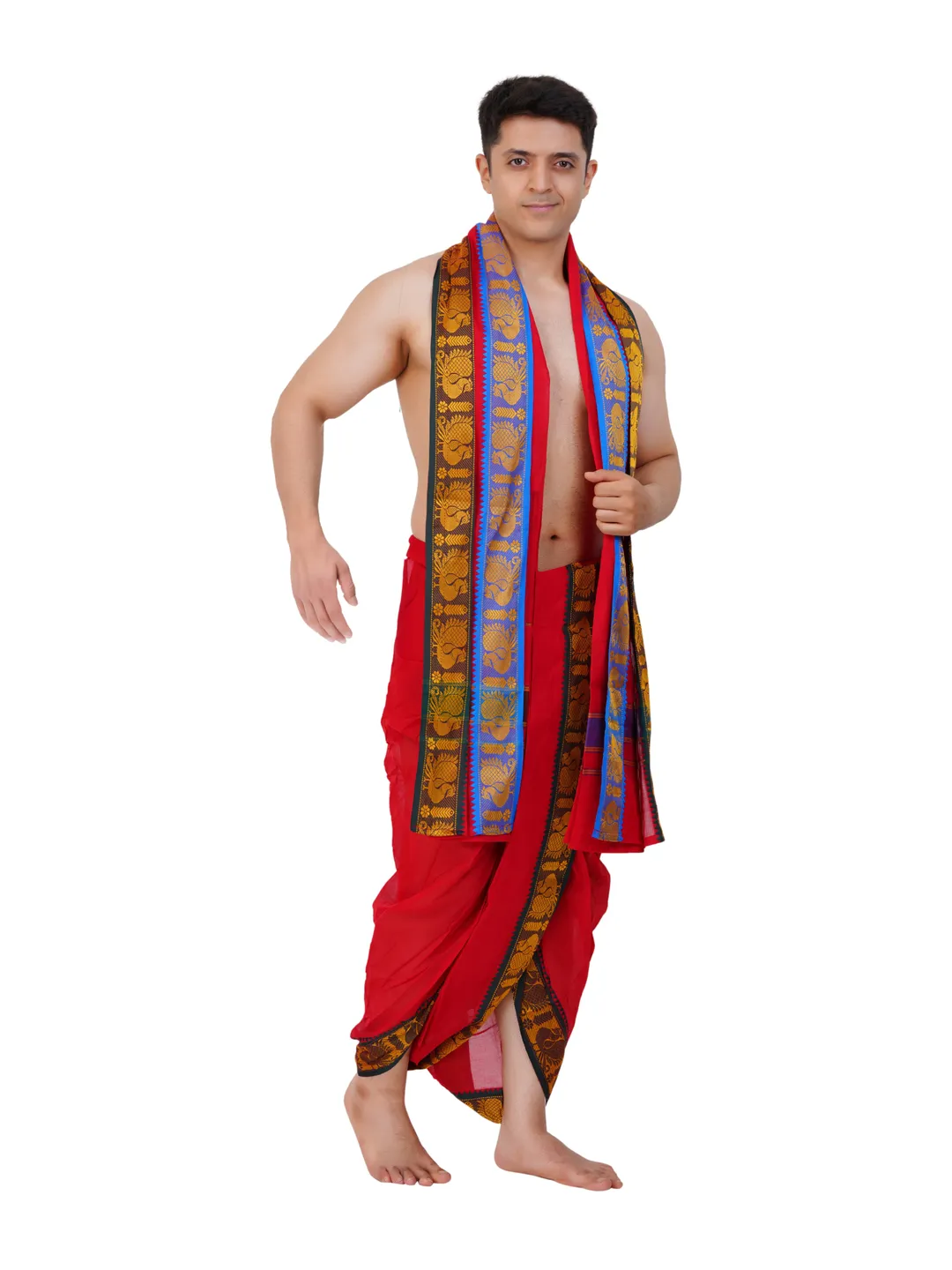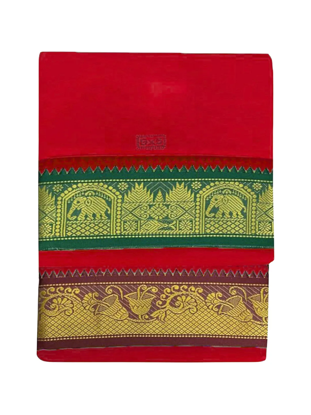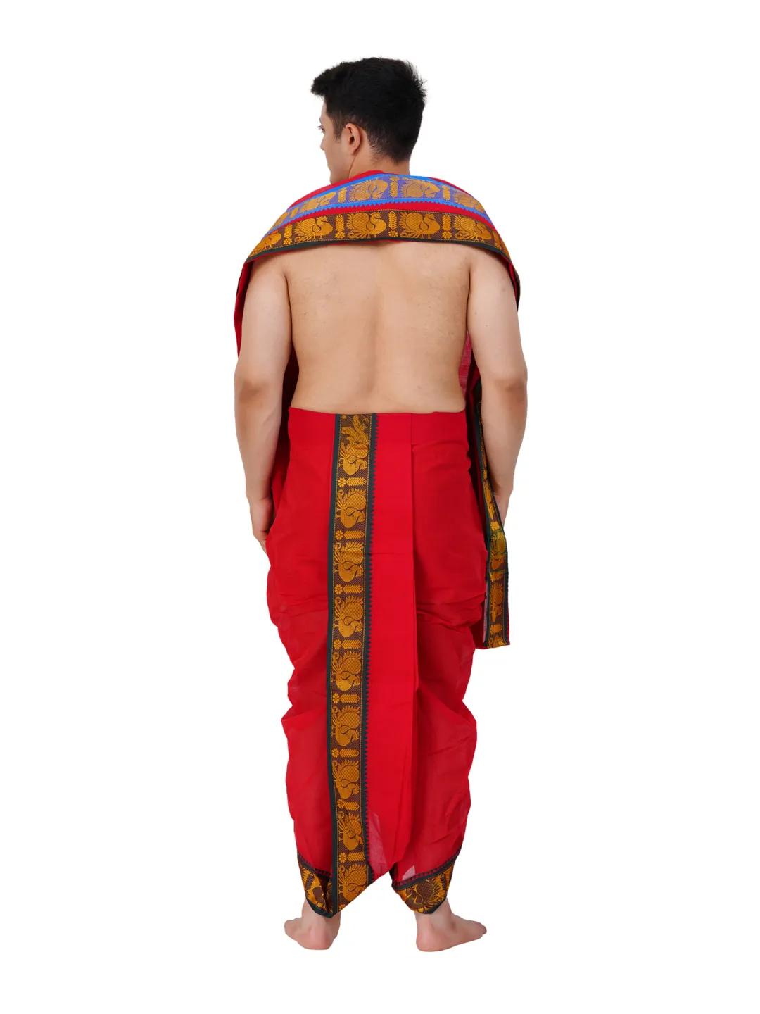 Cotton Red Colour 9x5 Panchakacham with Towel Set (3 inch)