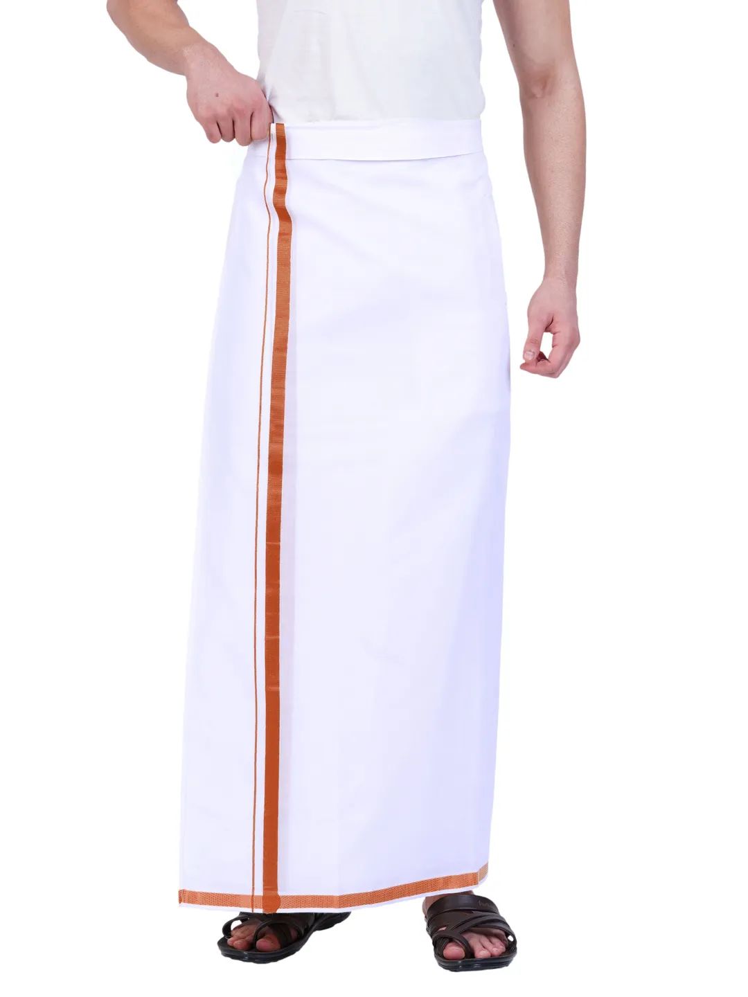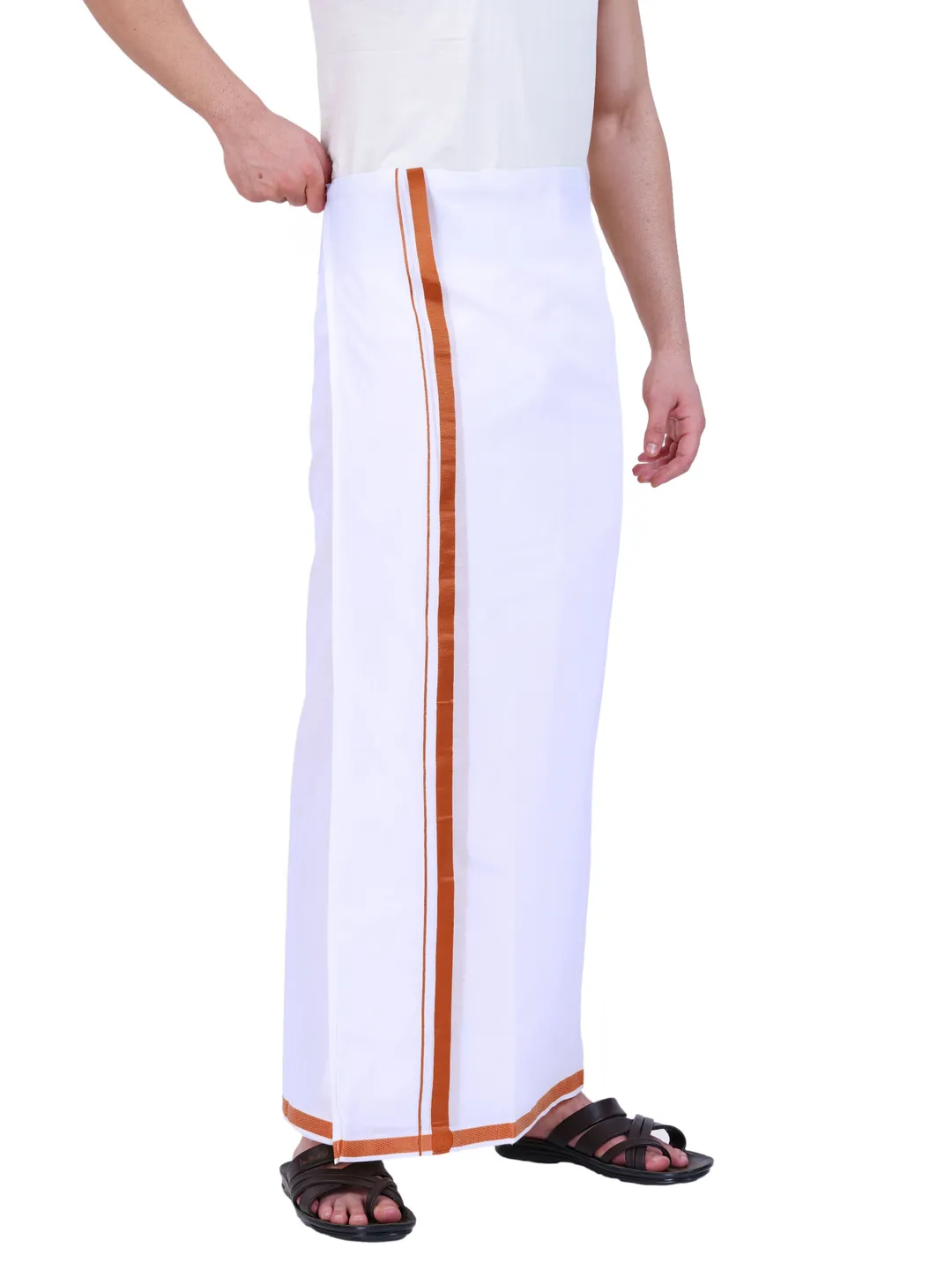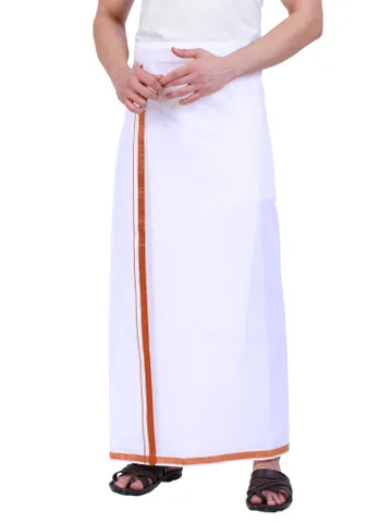 Product Details This Fine Quality Jari Cotton is looking very attract and very much suitable for wedding, all types of functions, temple wear dhoti.It's Double Dhoti with 3/4 Inch Jari Border