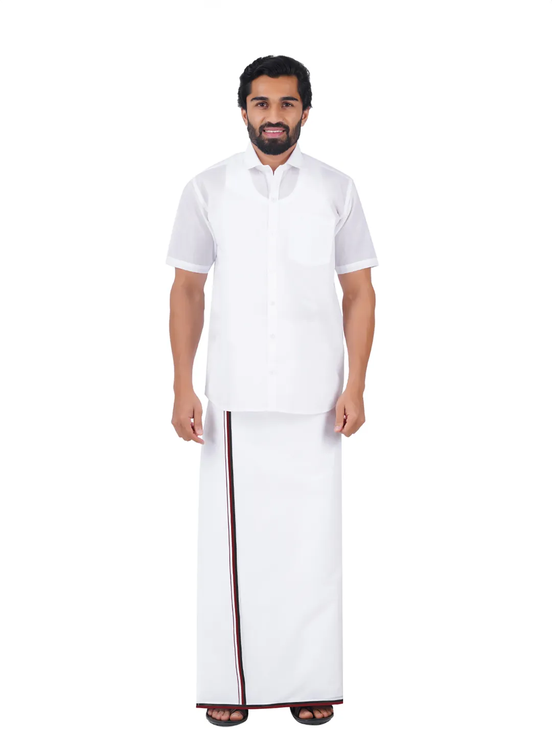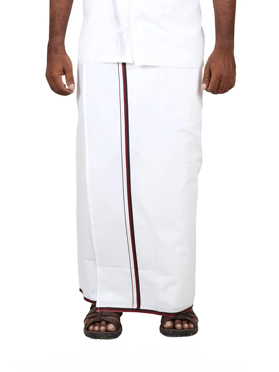 Product Details This Prakasam Cotton Men's White Colour Political Party Dhoti is a symbol of elegance and tradition. Crafted with fine quality materials, it exudes sophistication and charm. The dhoti's dimensions of 1.28 meters in length and 2.00 meters in width ensure a comfortable fit for any occasion. Whether worn at a political gathering or a celebratory event, this dhoti is sure to make a statement with its classic white color and impeccable craftsmanship. Step out in style and showcase your unique sense of fashion with this timeless piece.