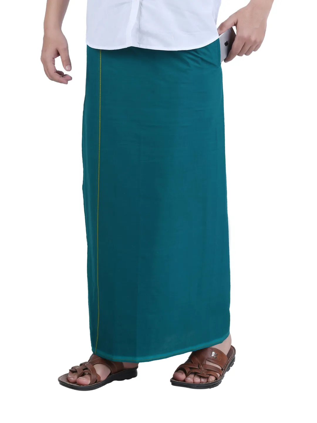Flexi Readymade Roja Single Green Dhoti with kambi kara border