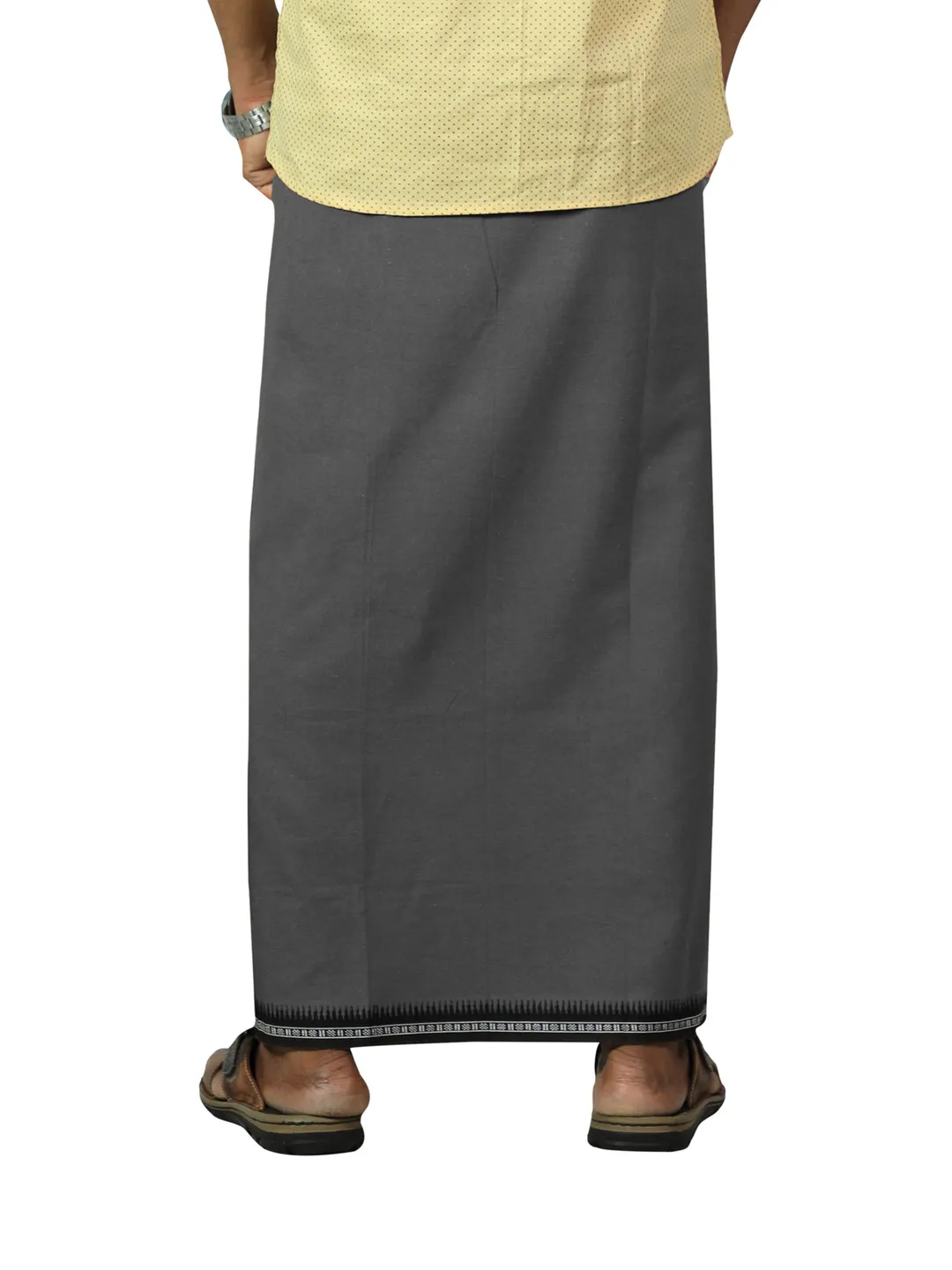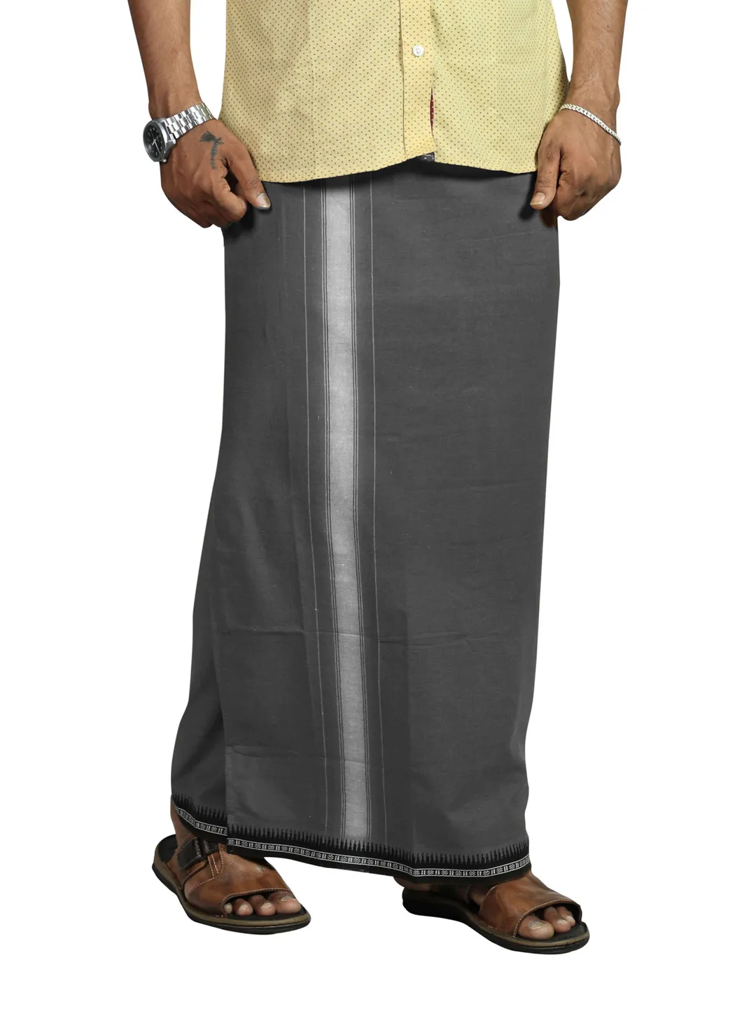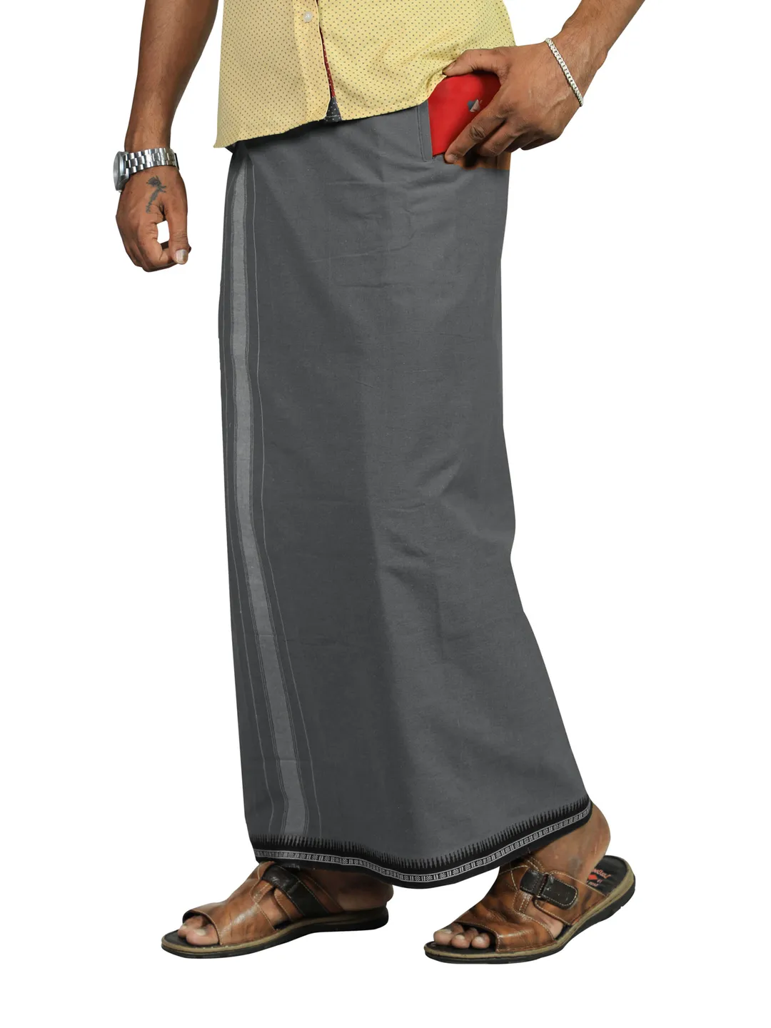 Flexi Size Readymade Thalapathi border Premium Single Pocket Grey Dhoti