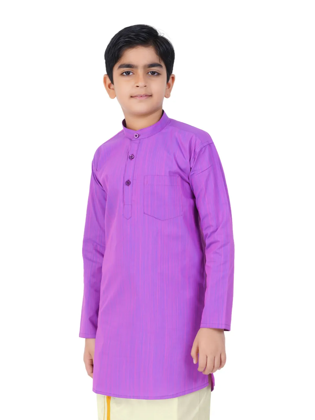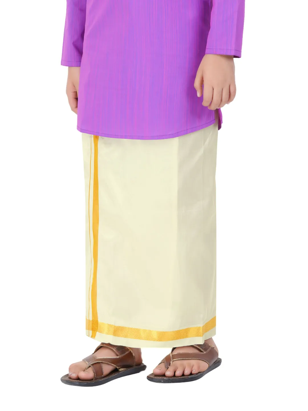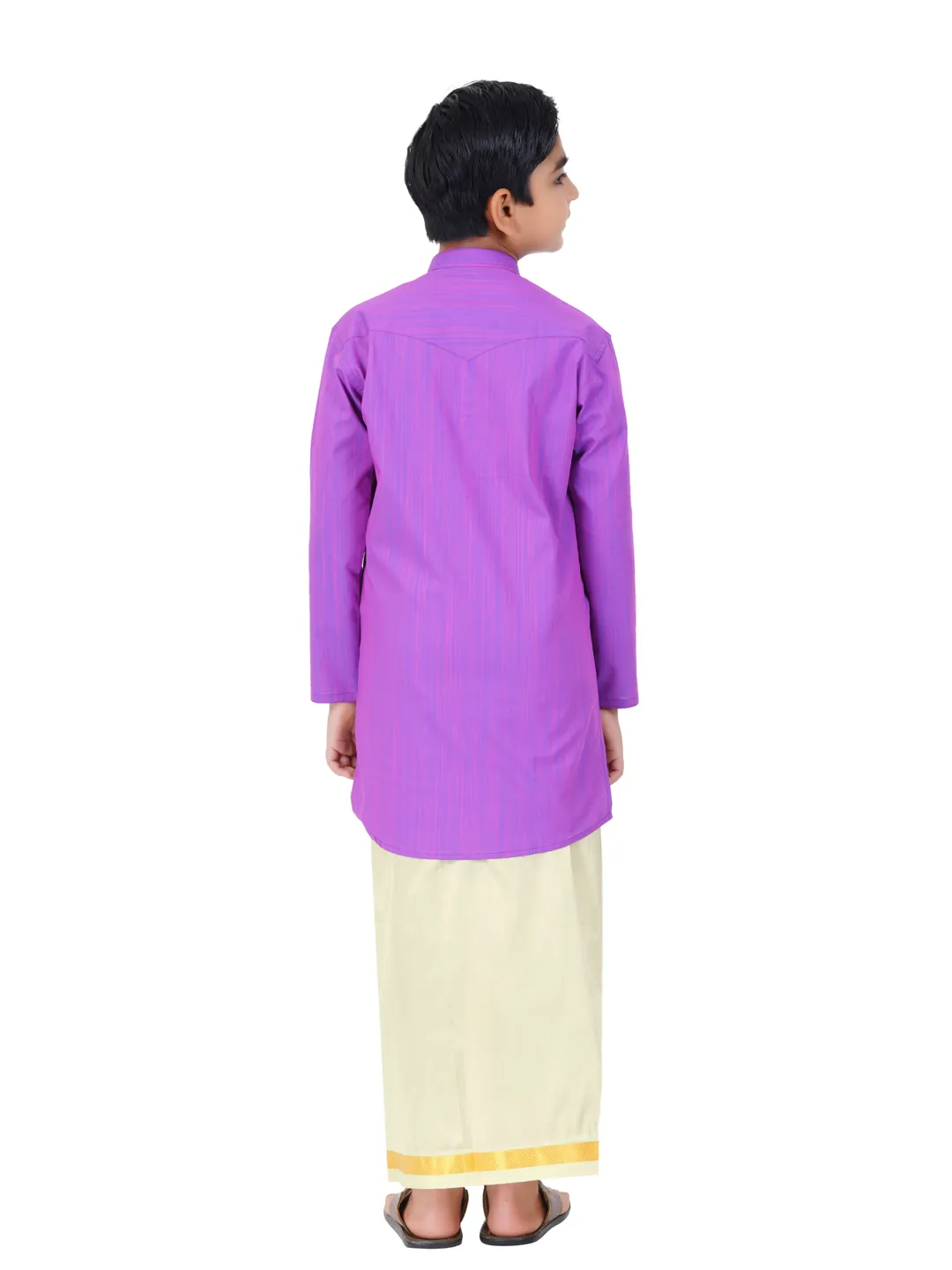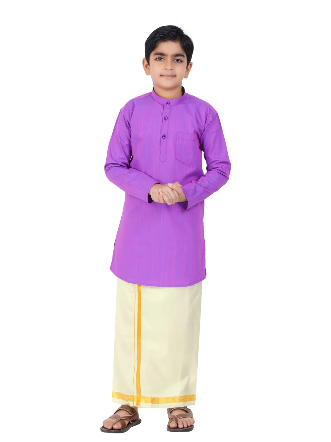 Kids Cotton Readymade Lavender Colour Kurta & Jari Border Welcro Dhoti Set