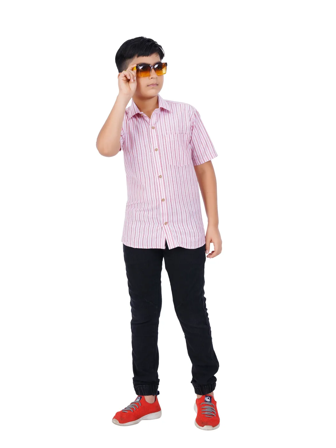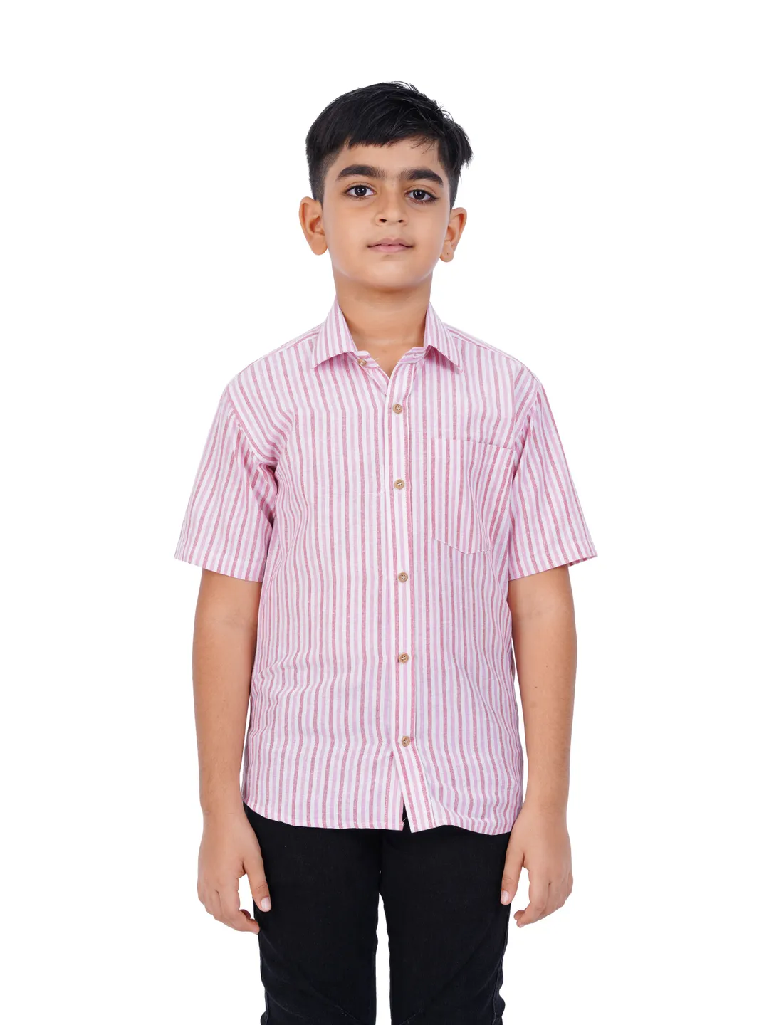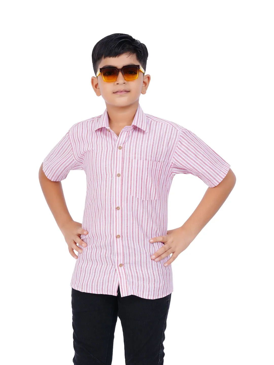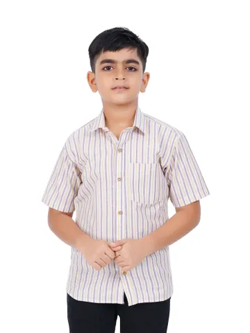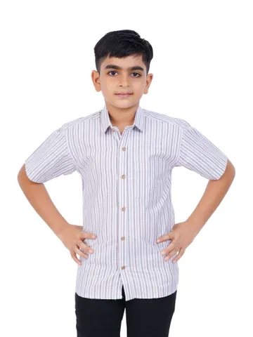Our collection includes a half-sleeve striped shirt with a collar, designed to be paired effortlessly with formal trousers or stylish denim for a polished appearance. This versatile garment is appropriate for a variety of occasions. Crafted from high-quality materials, it ensures a soft touch and maximum comfort throughout the day. Elevate your child's wardrobe with these fashionable essentials.