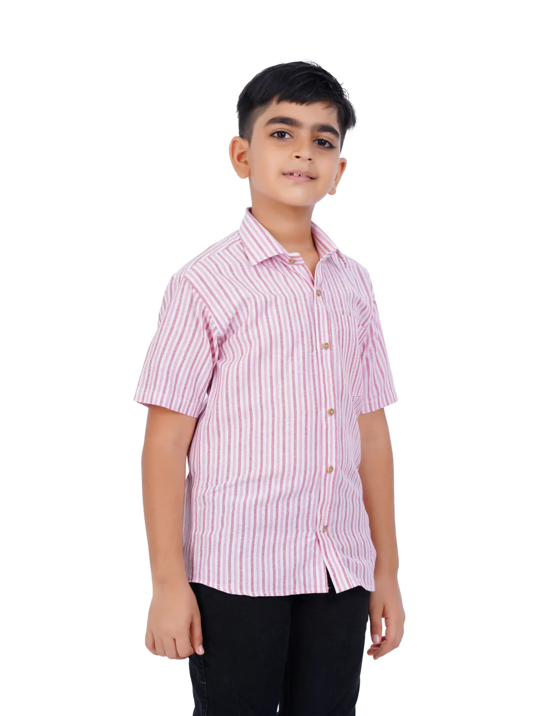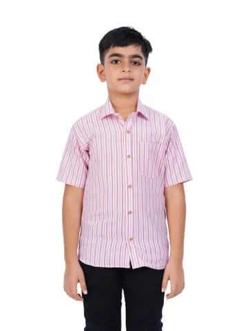 Kids Cotton Readymade Pink Dark Pink Stripped Half Sleeve Shirt