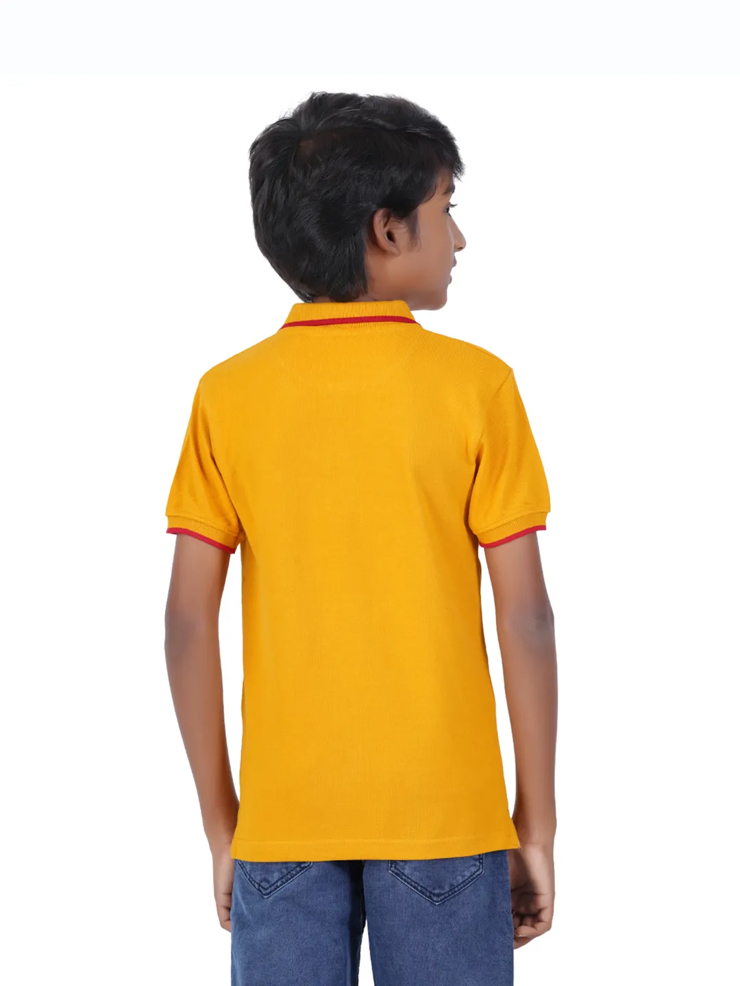 Kids Solid Pure Cotton Mastard Colour Polo T-shirt