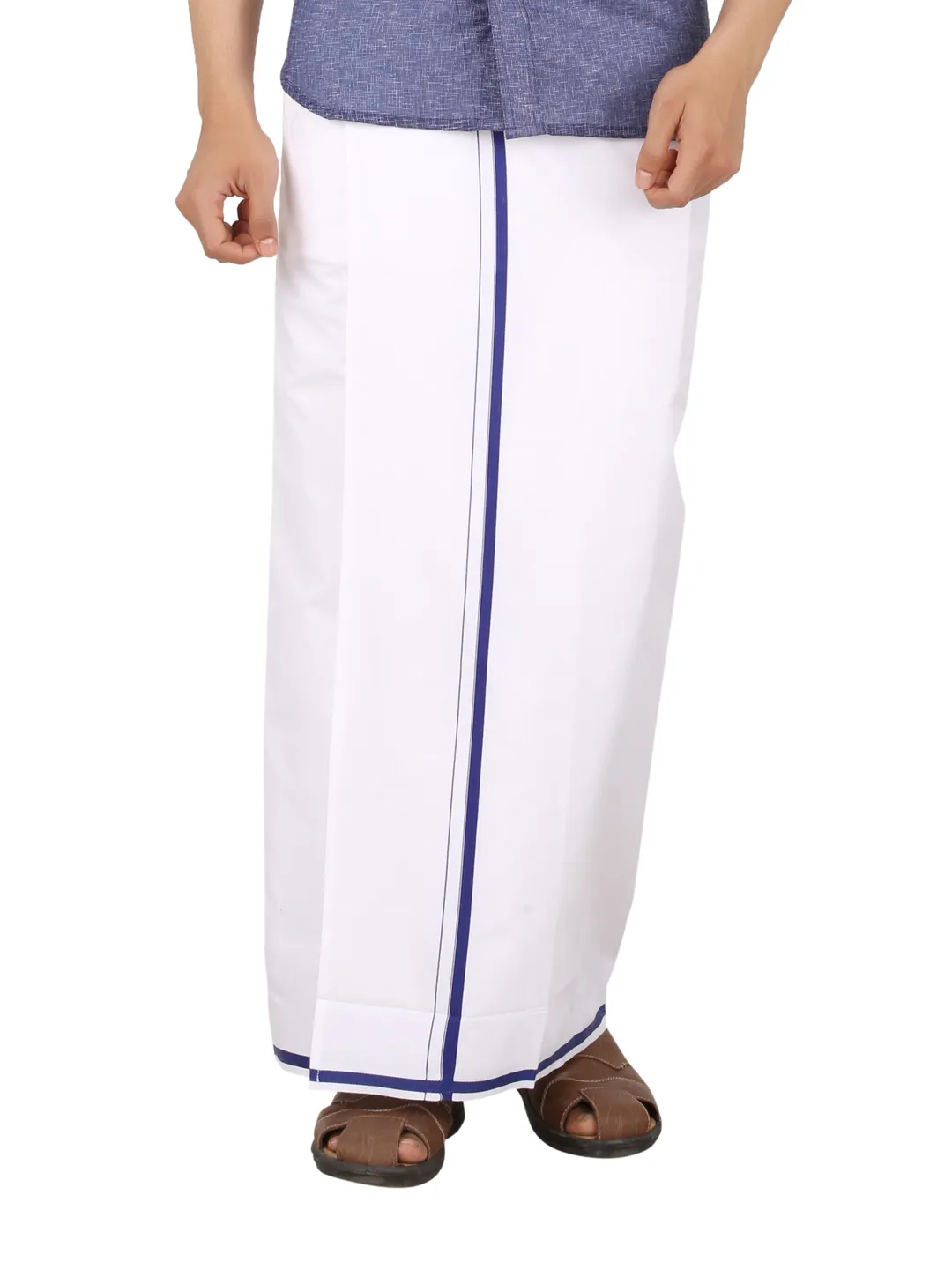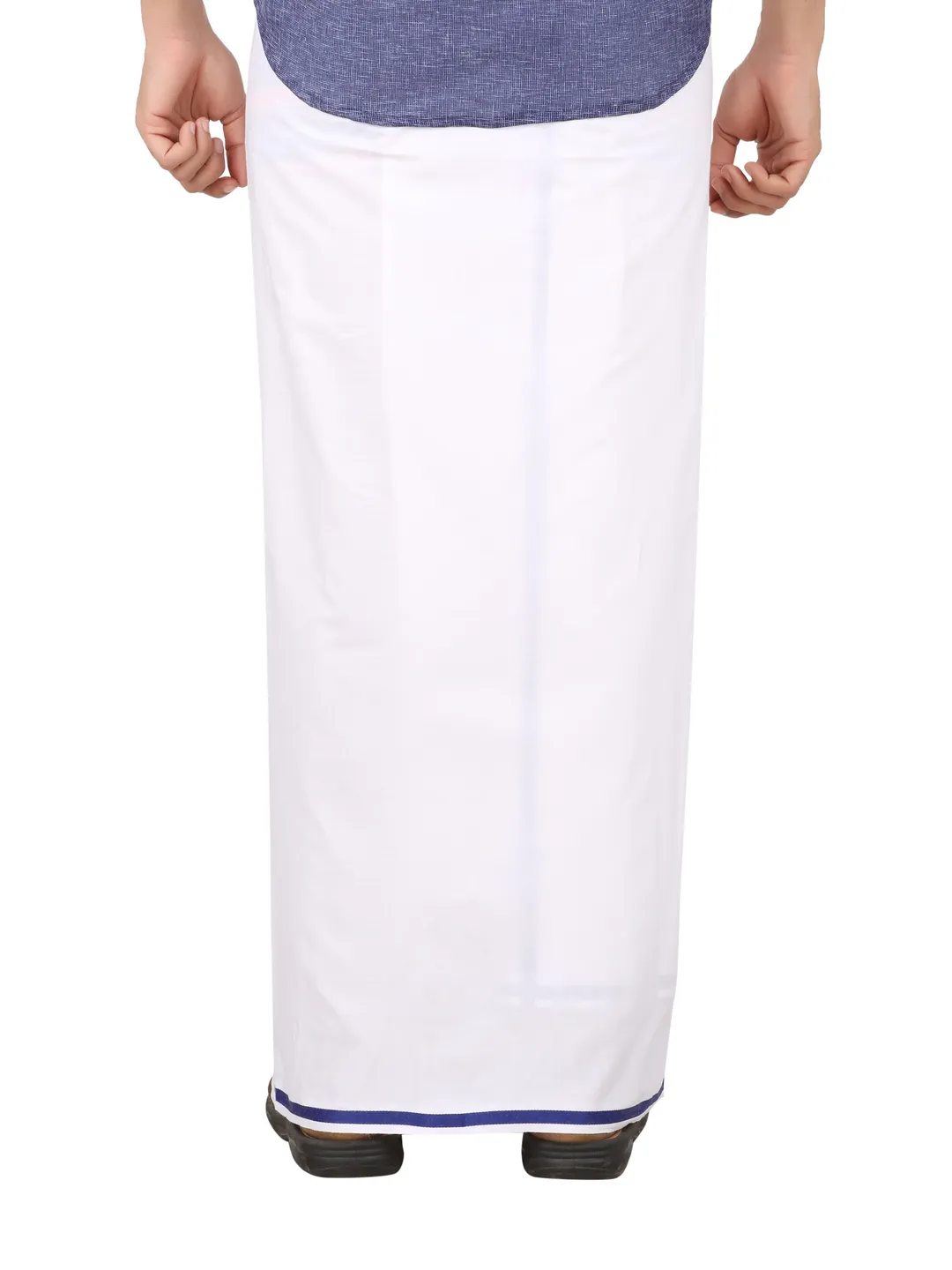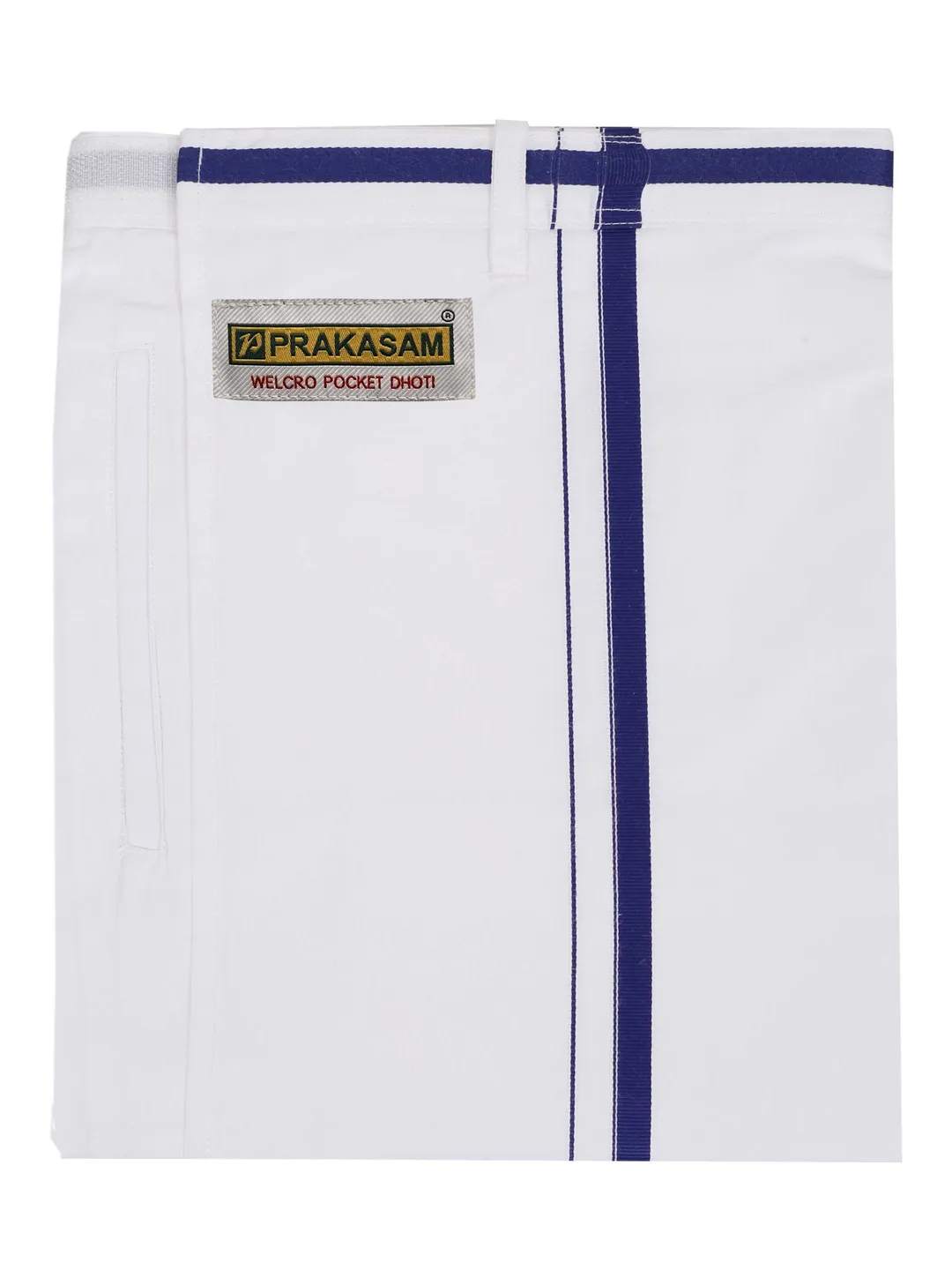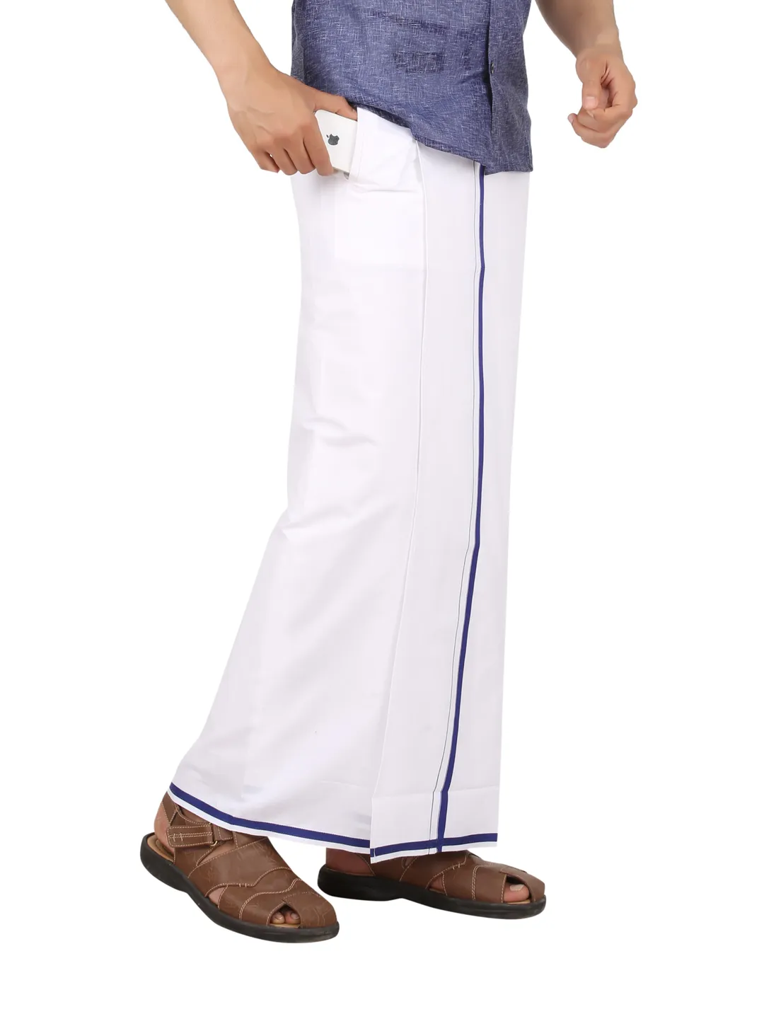 Men's Cotton White Readymade Pocket Dhoti with Navy Colour Border
