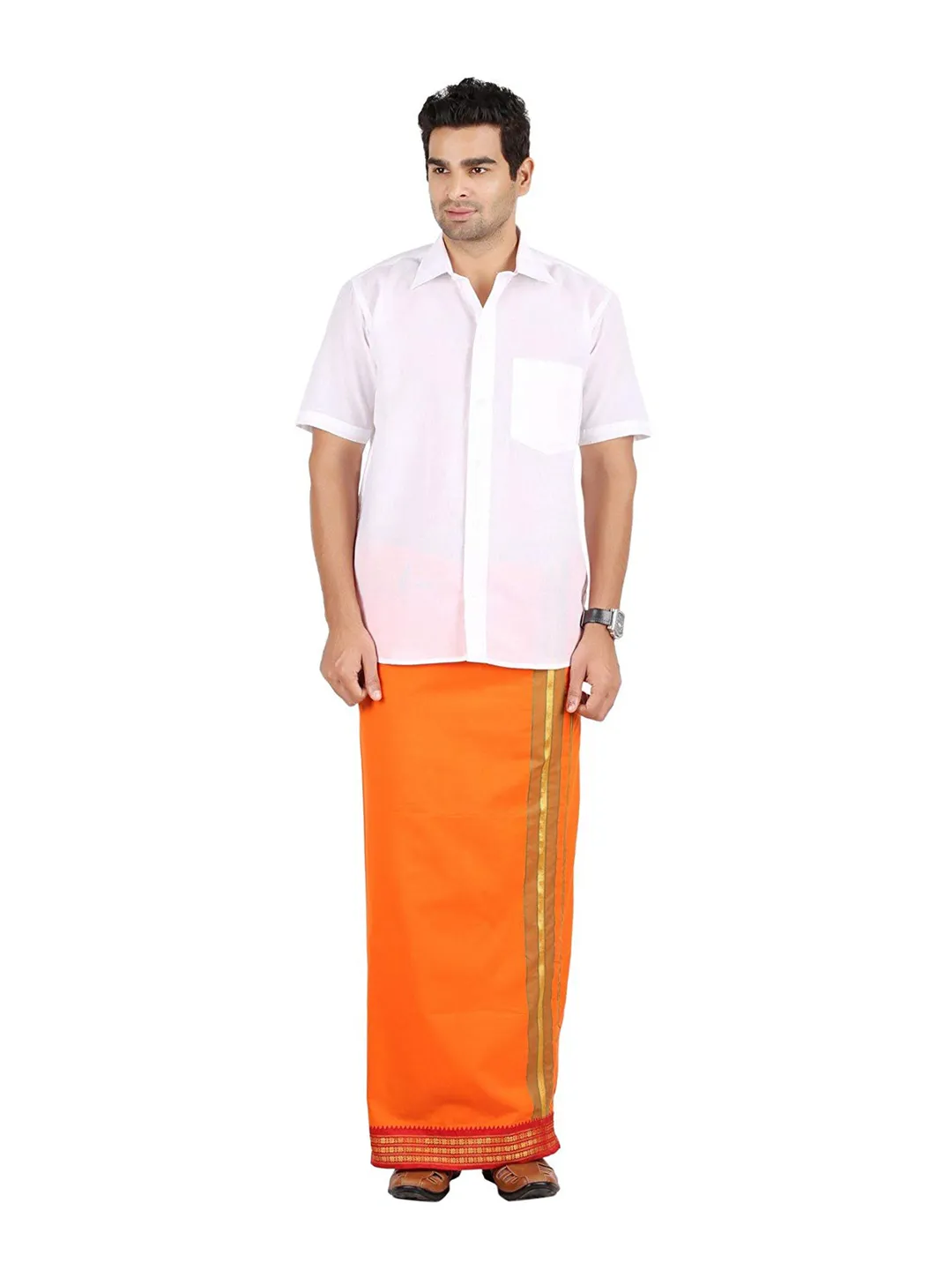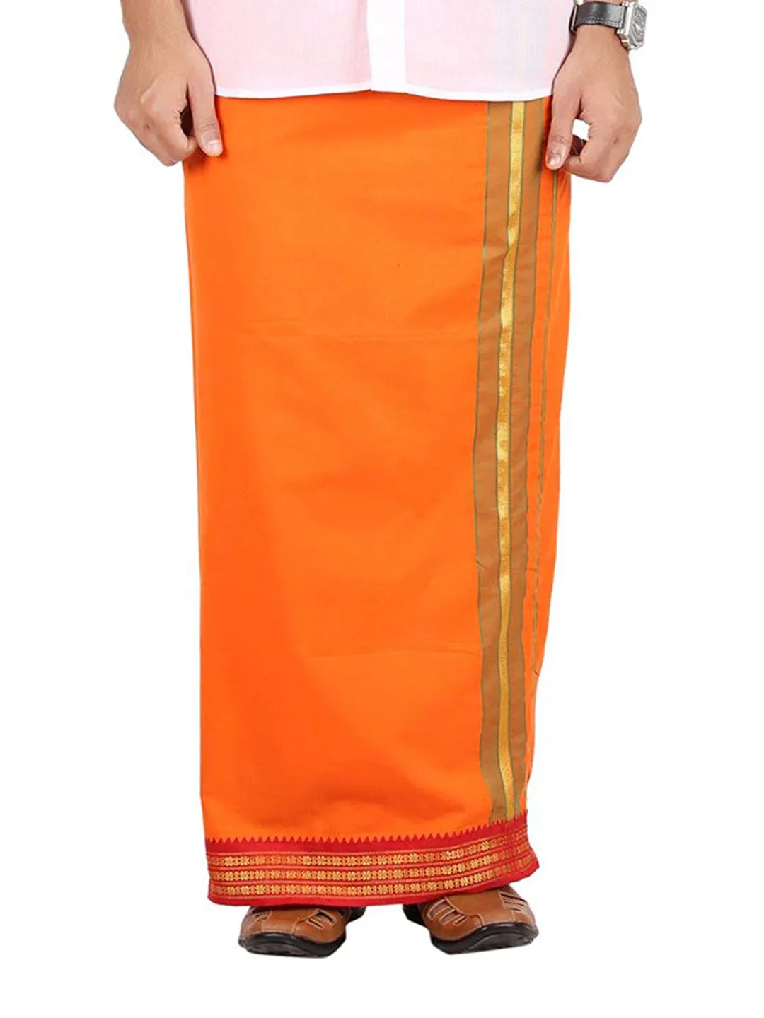 Men's RM Fancy Orange Colour Dhoti with Big Border