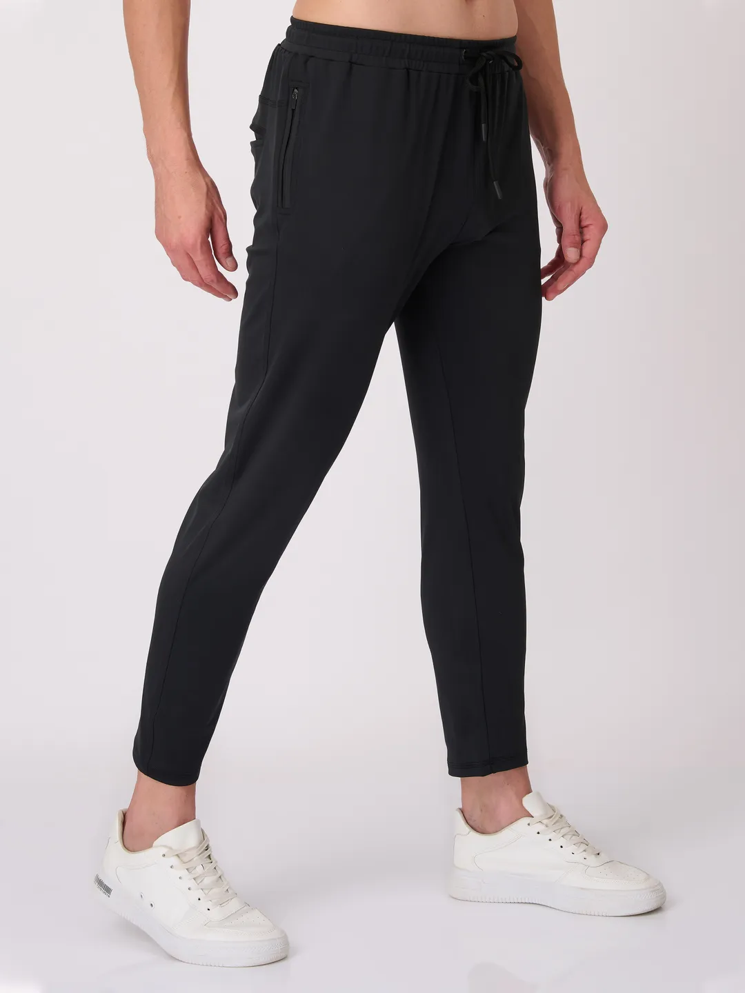 Men's Slim fit Black Trackpant with Zipper Pockets