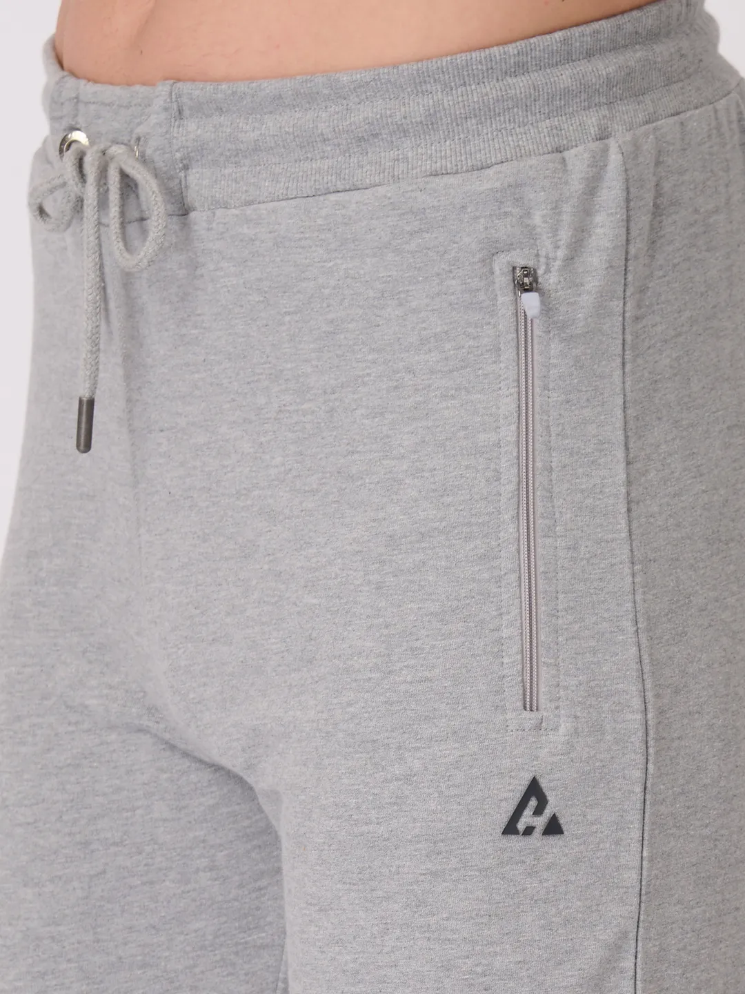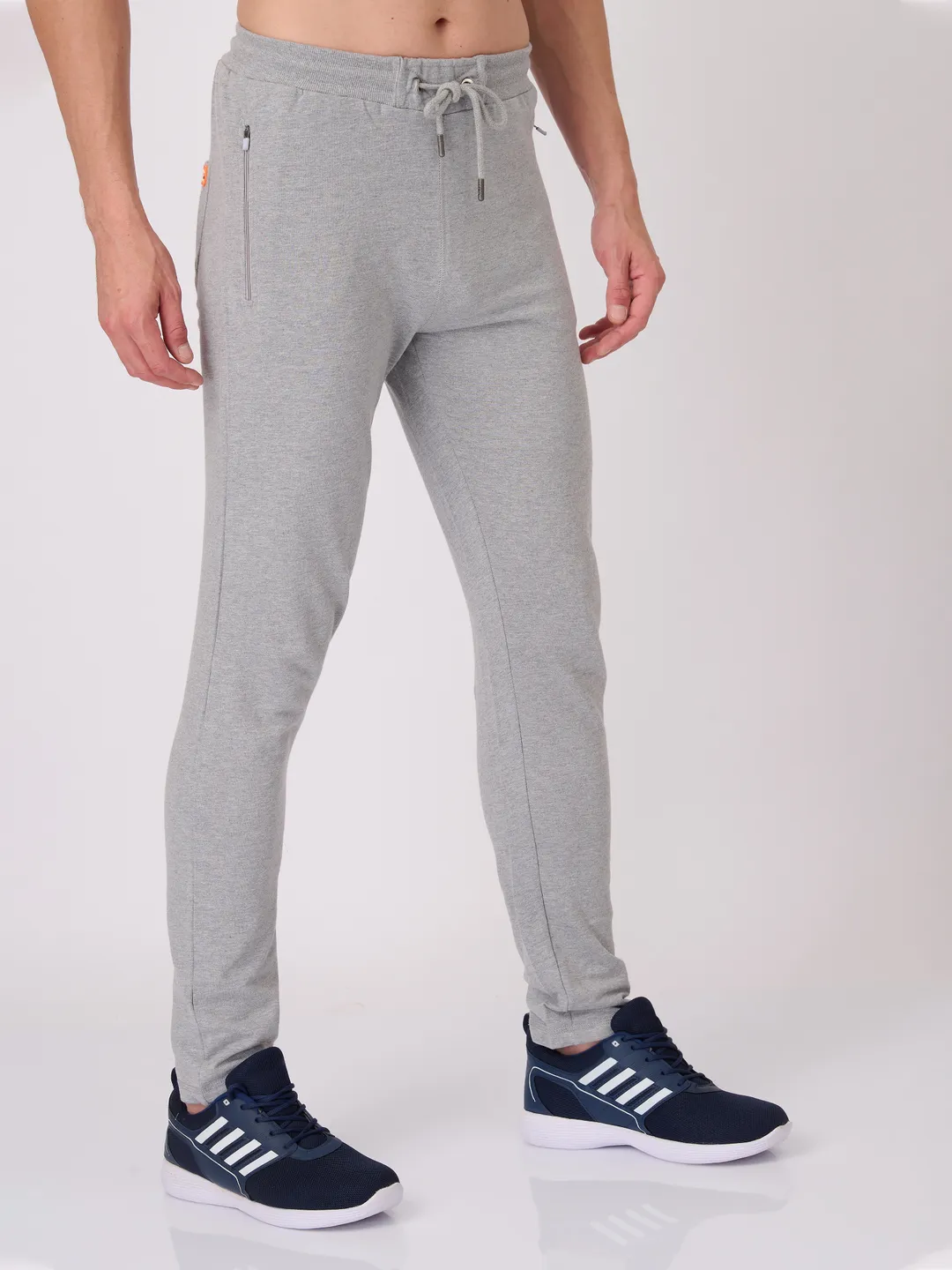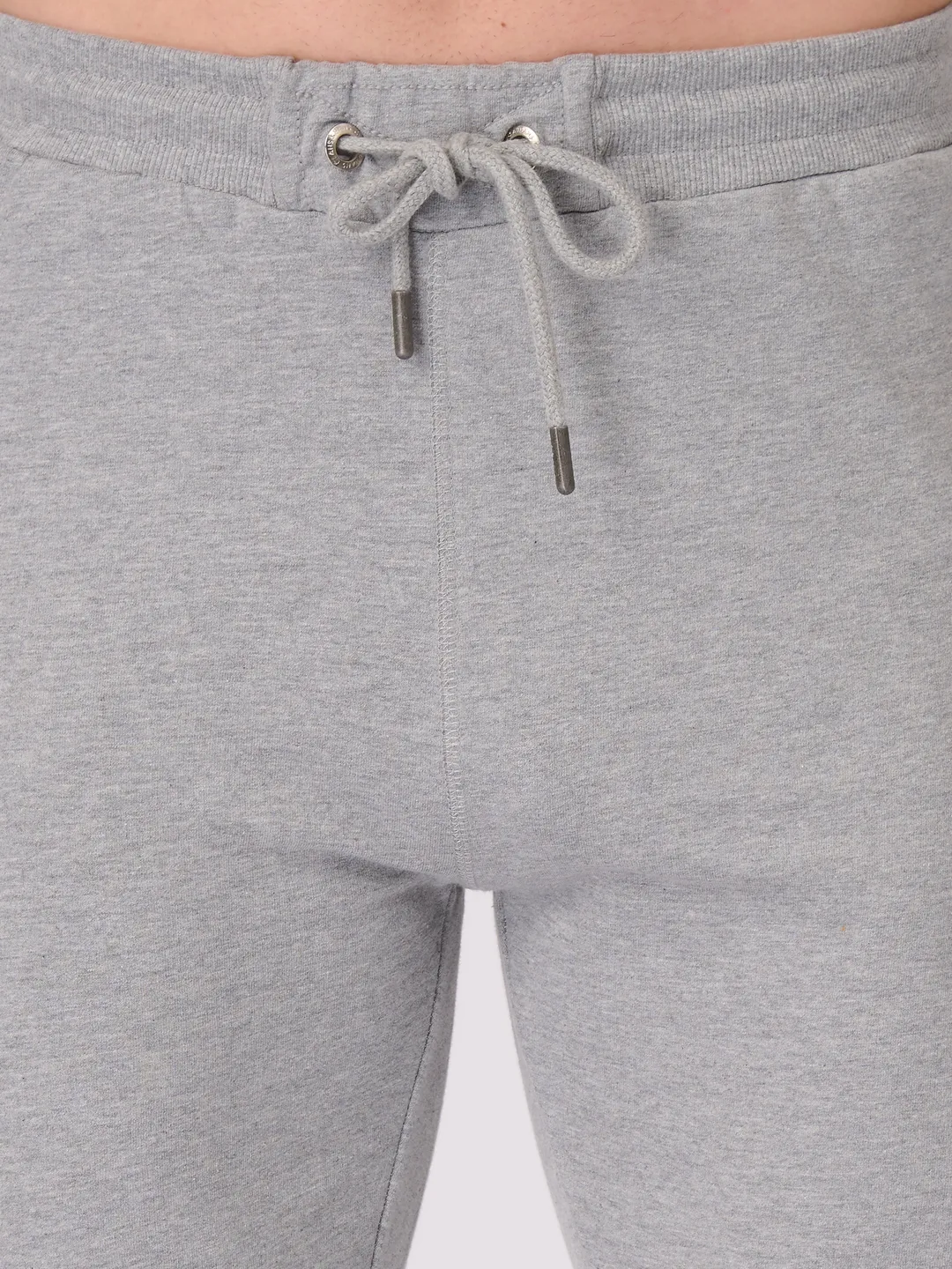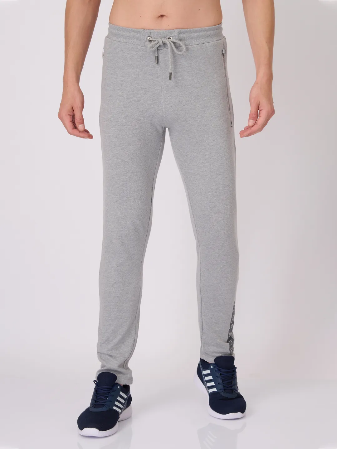 Men's Super Combed Cotton Rich Slim Fit Printed Grey Melange Trackpant with Zipper Pockets