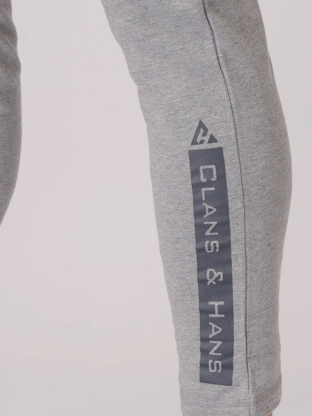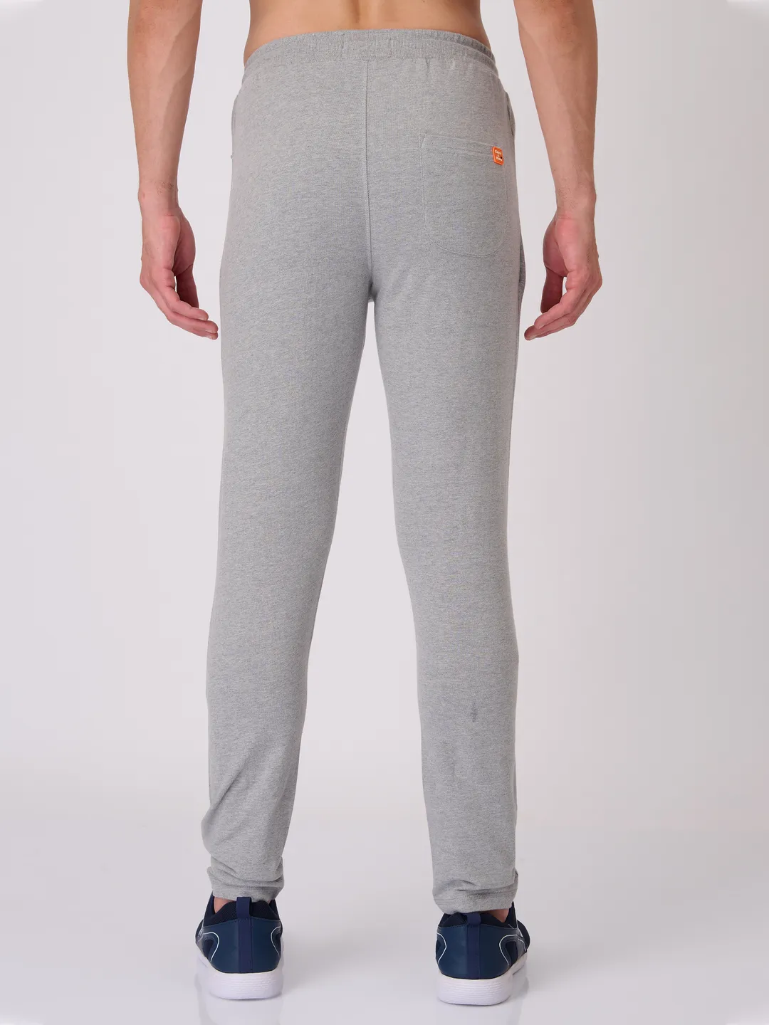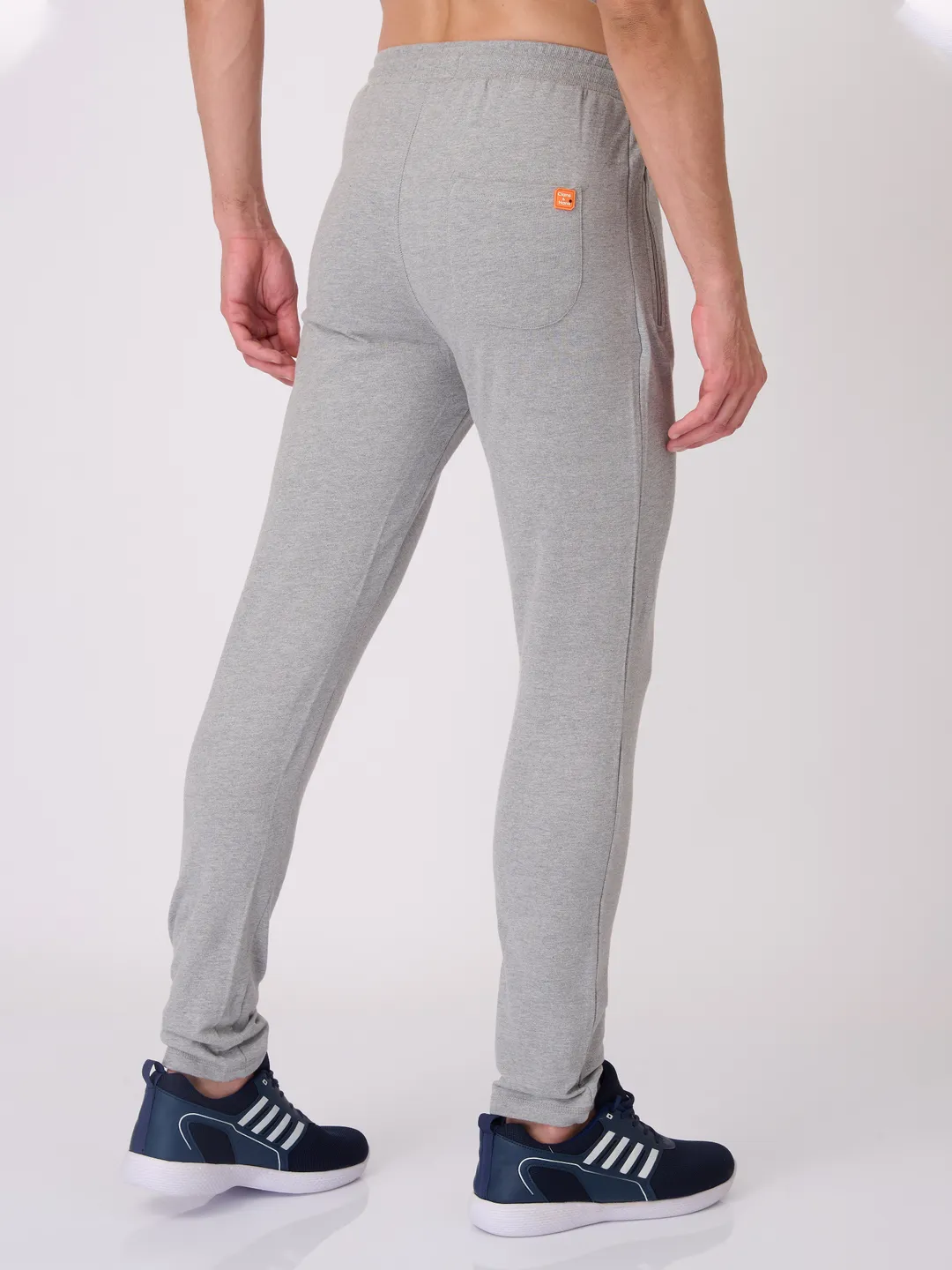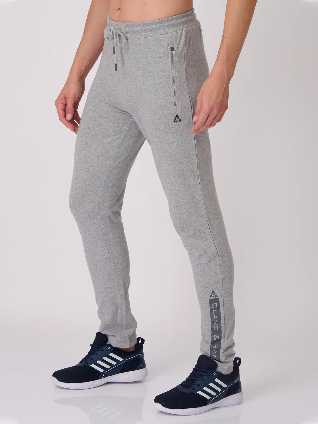 Men's Super Combed Cotton Rich Slim Fit Printed Grey Melange Trackpant with Zipper Pockets