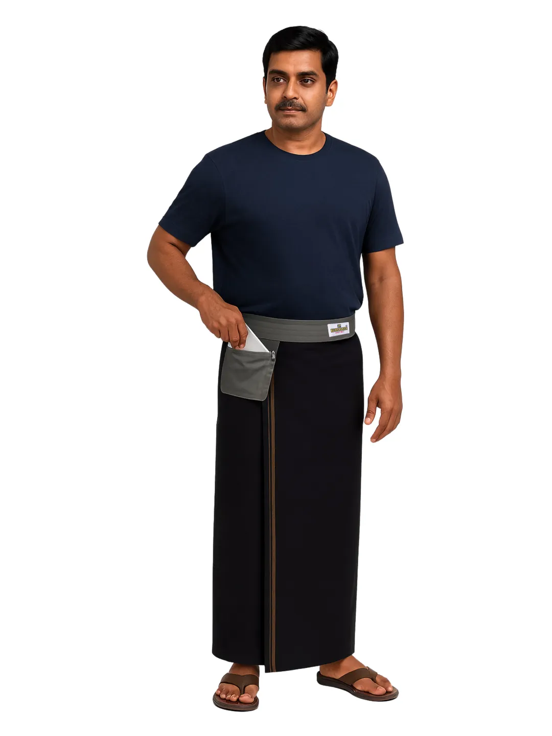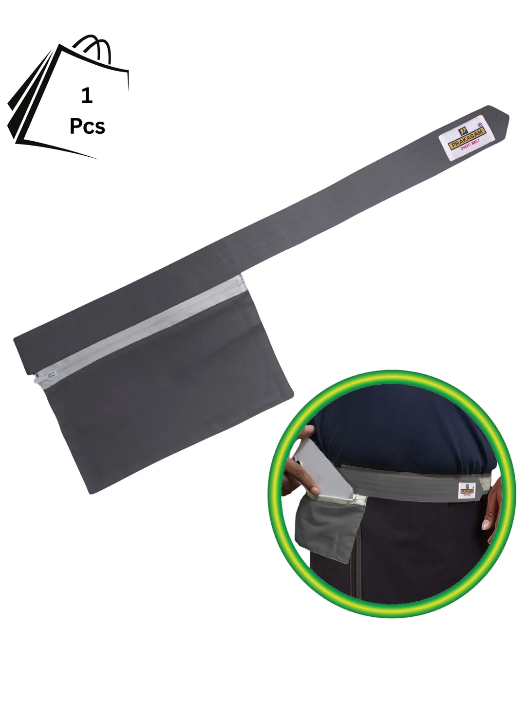 This dhoti belt seamlessly blends style and comfort, featuring an innovative Snazzy Grip that ensures a secure fit for your dhoti. It includes a pouch designed to hold money, coins, small items, or a mobile phone. The pouch can be easily closed with a zipper for added convenience.Cotton canvas fabric featuring Welcro for secure attachment using a hook and loop mechanism.Universal Fit with welcro Closure ? Adjustable design with strong hook & loop (welcro) fastening for a secure hold across various waist sizes.