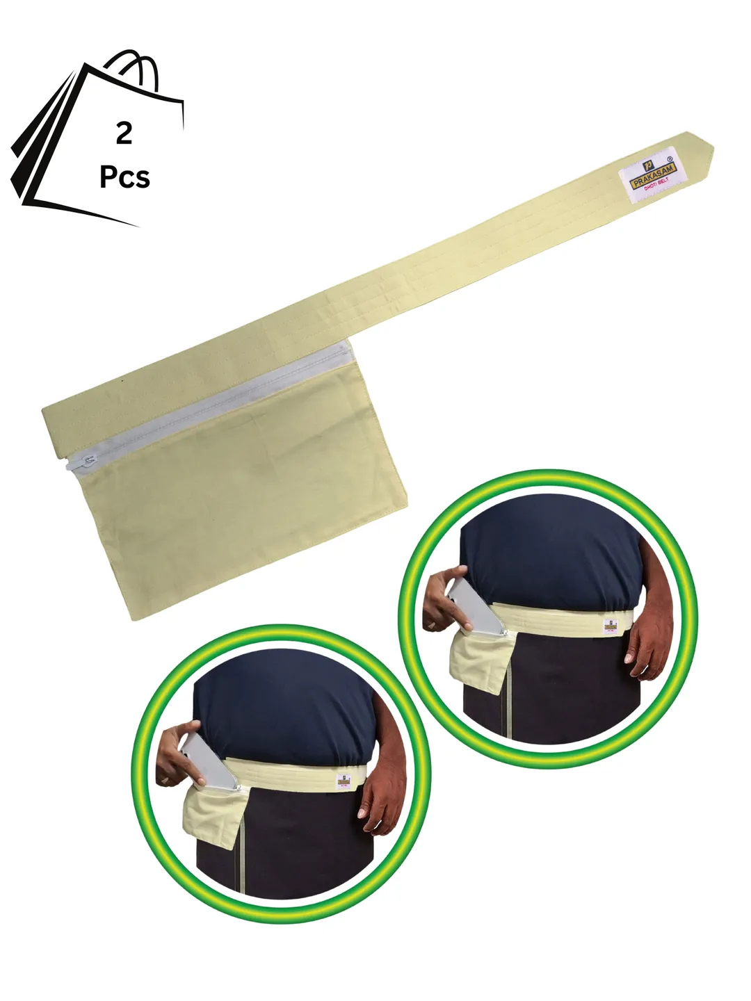 Mens Cotton Cream Colour Canvas Dhoti Belt with Zip Pouch (Pack of 2)