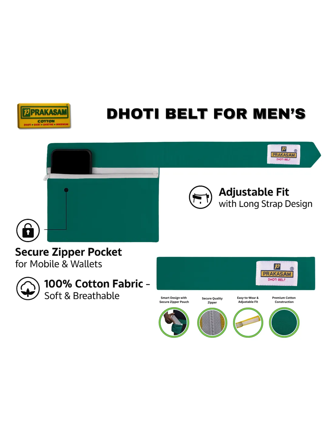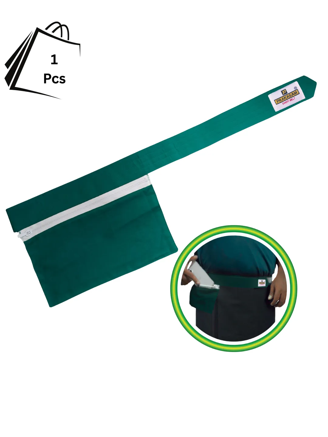 Mens Cotton Green Colour Canvas Dhoti Belt with Zip Pouch (Pack of 1)