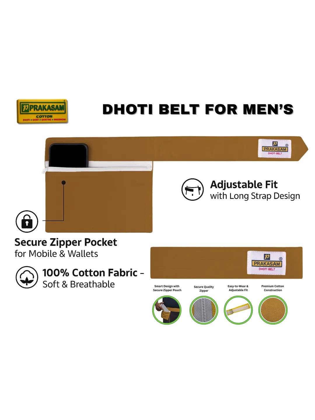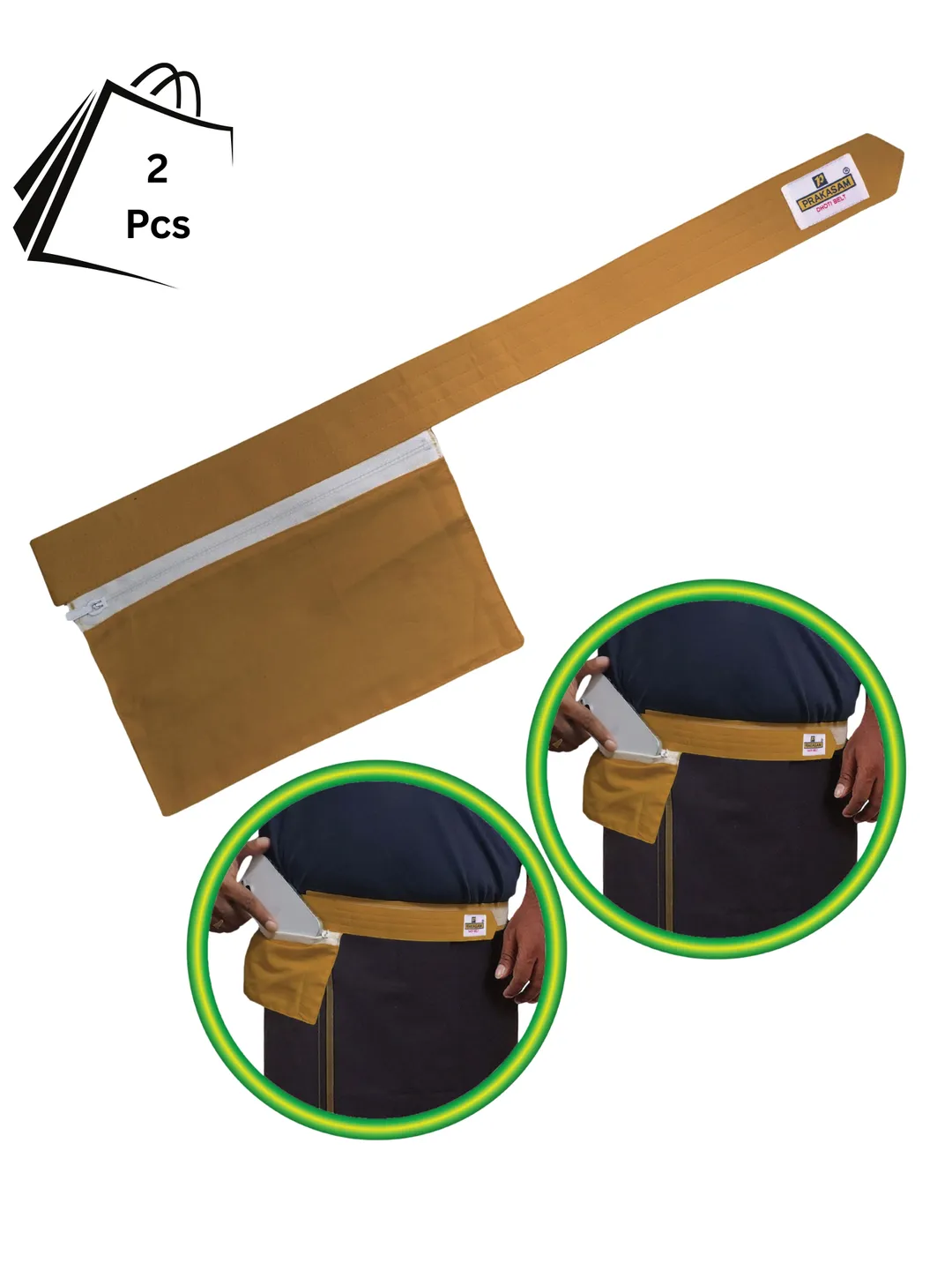Mens Cotton Kakki Colour Canvas Dhoti Belt with Zip Pouch (Pack of 2)