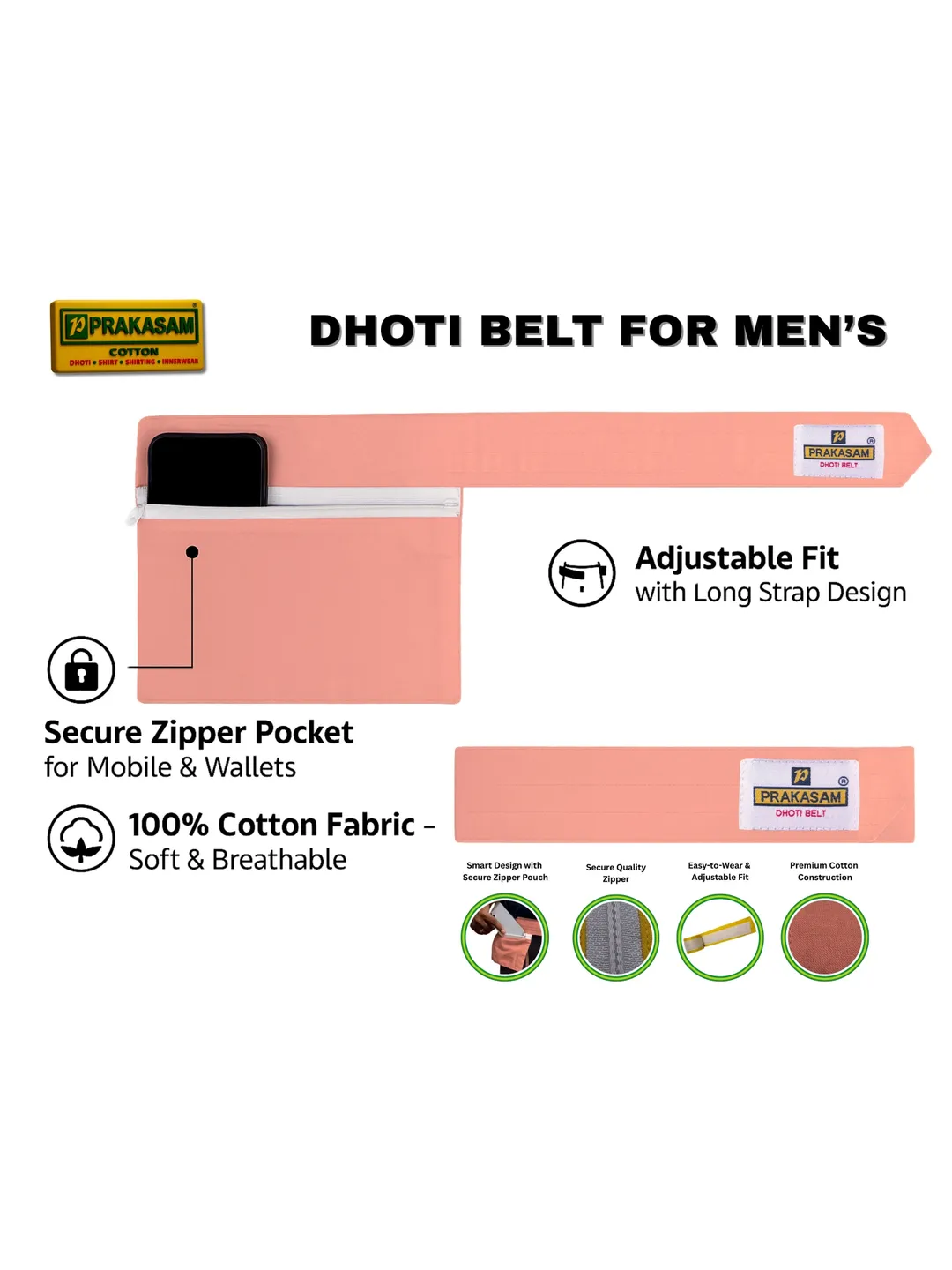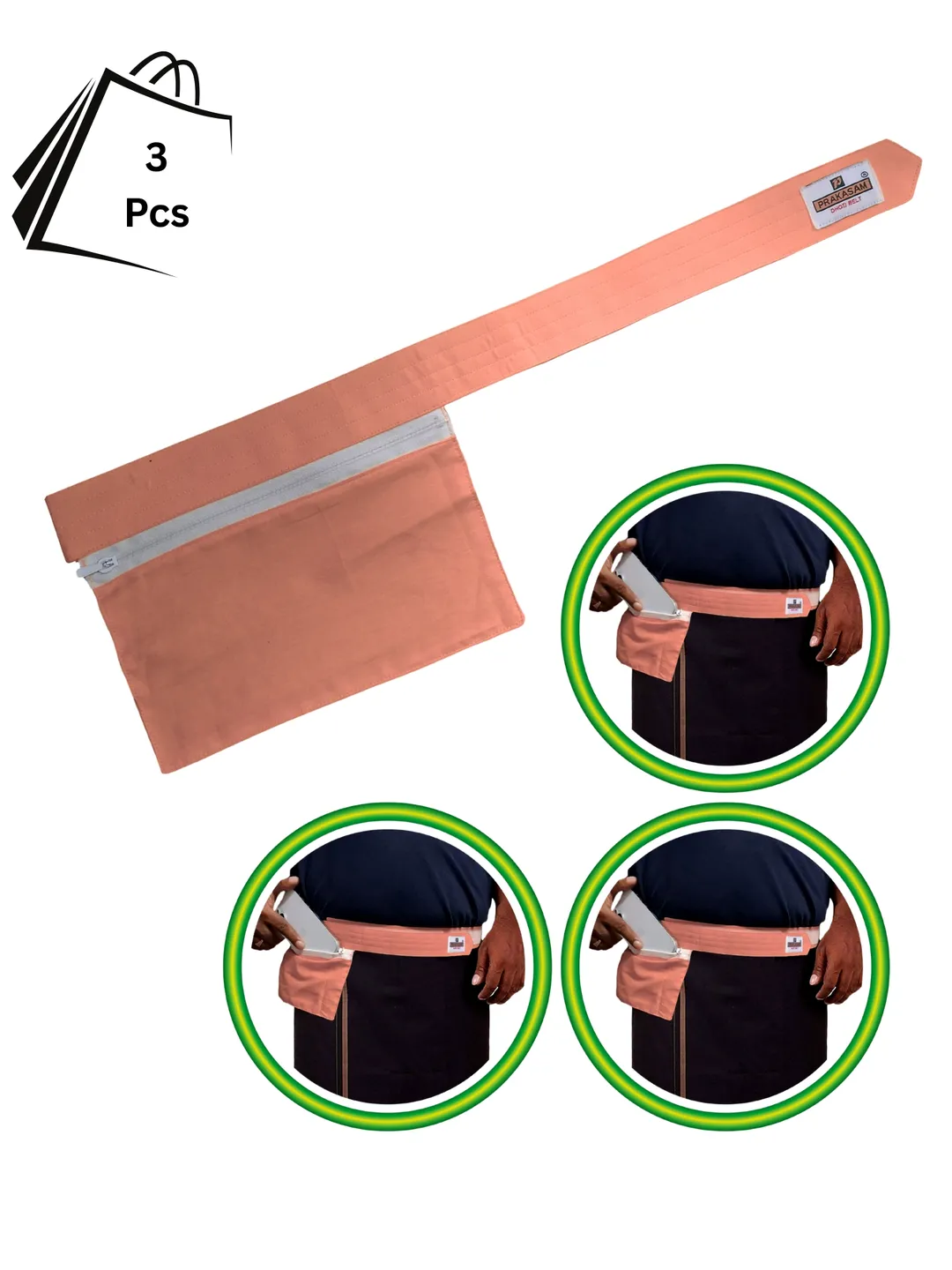 Mens Cotton Light Kavi Colour Canvas Dhoti Belt with Zip Pouch (Pack of 3)