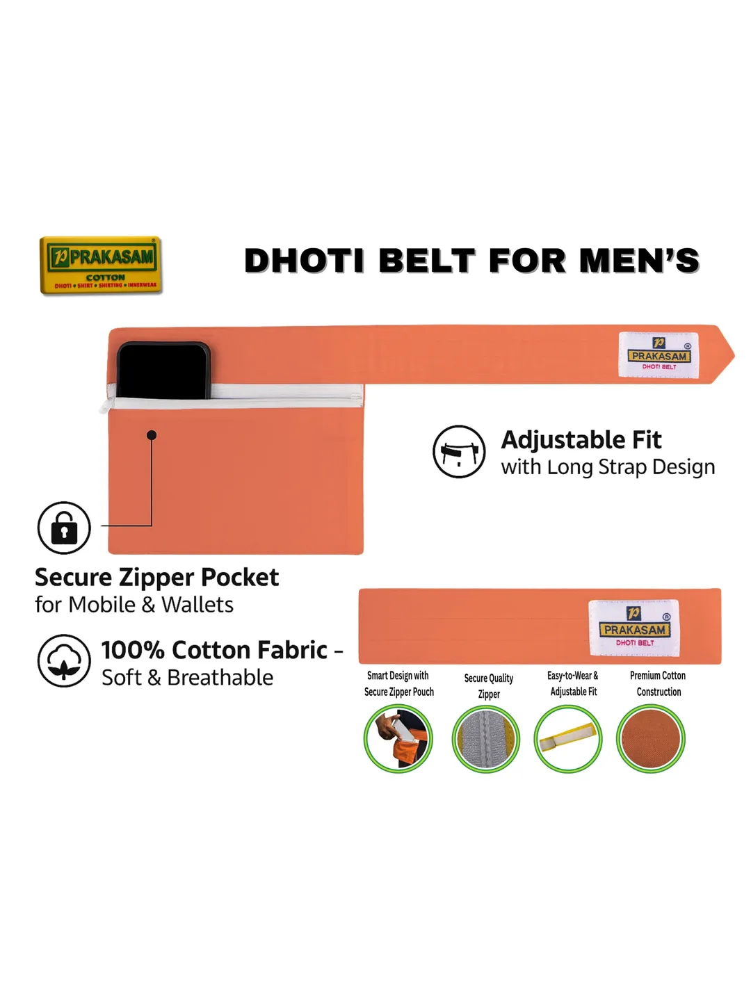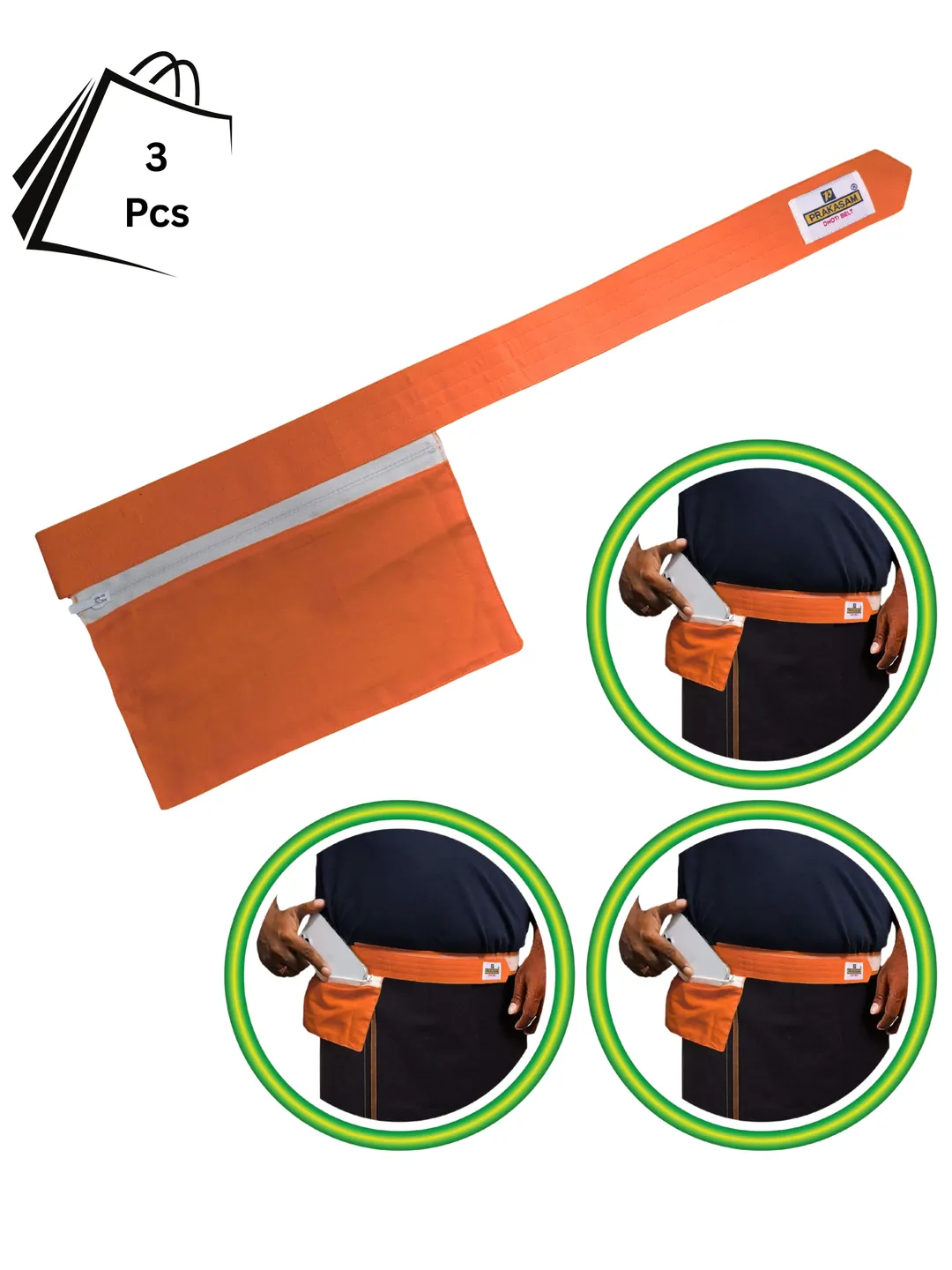 Mens Cotton Medium Kavi Colour Canvas Dhoti Belt with Zip Pouch (Pack of 3)