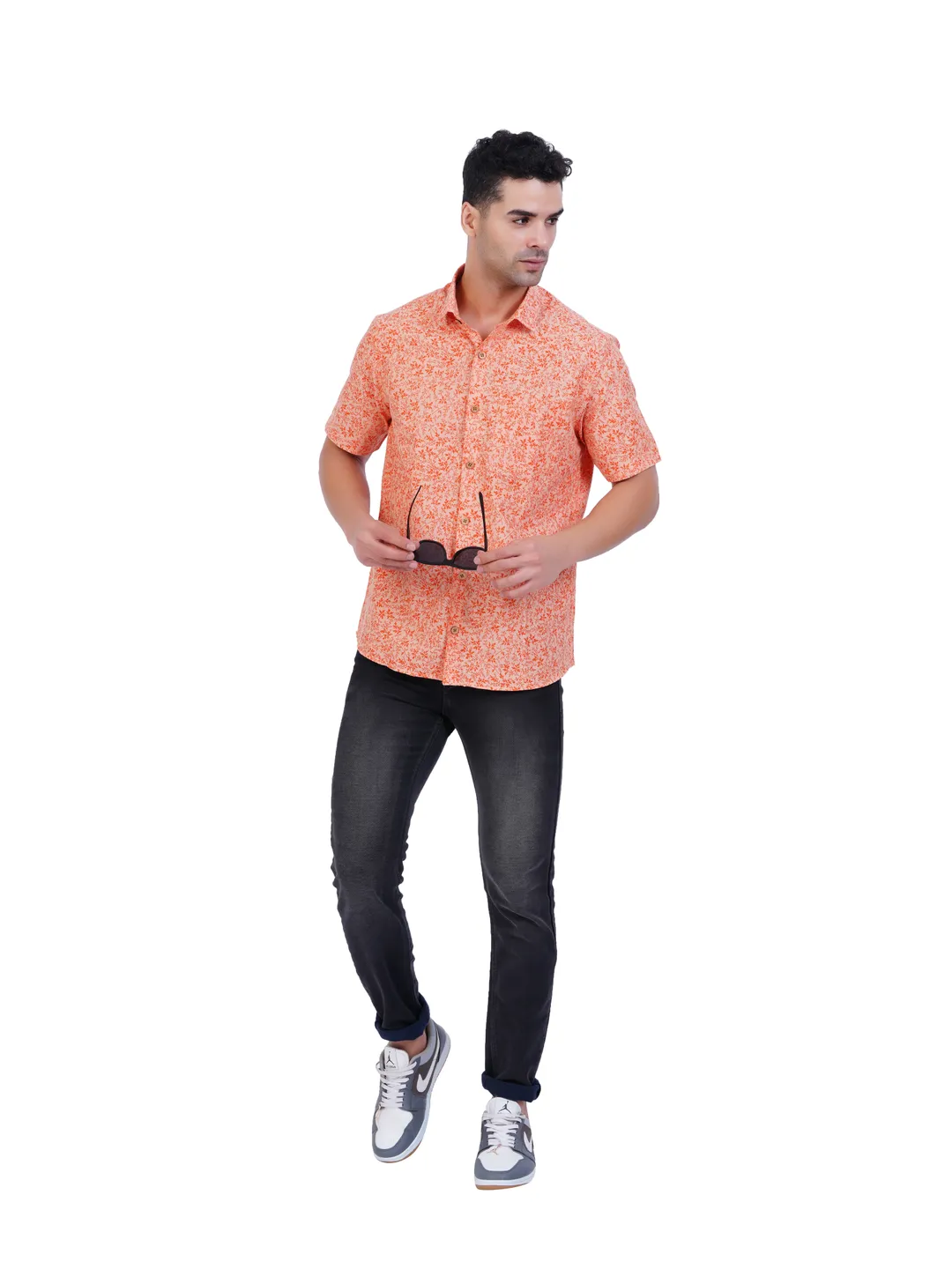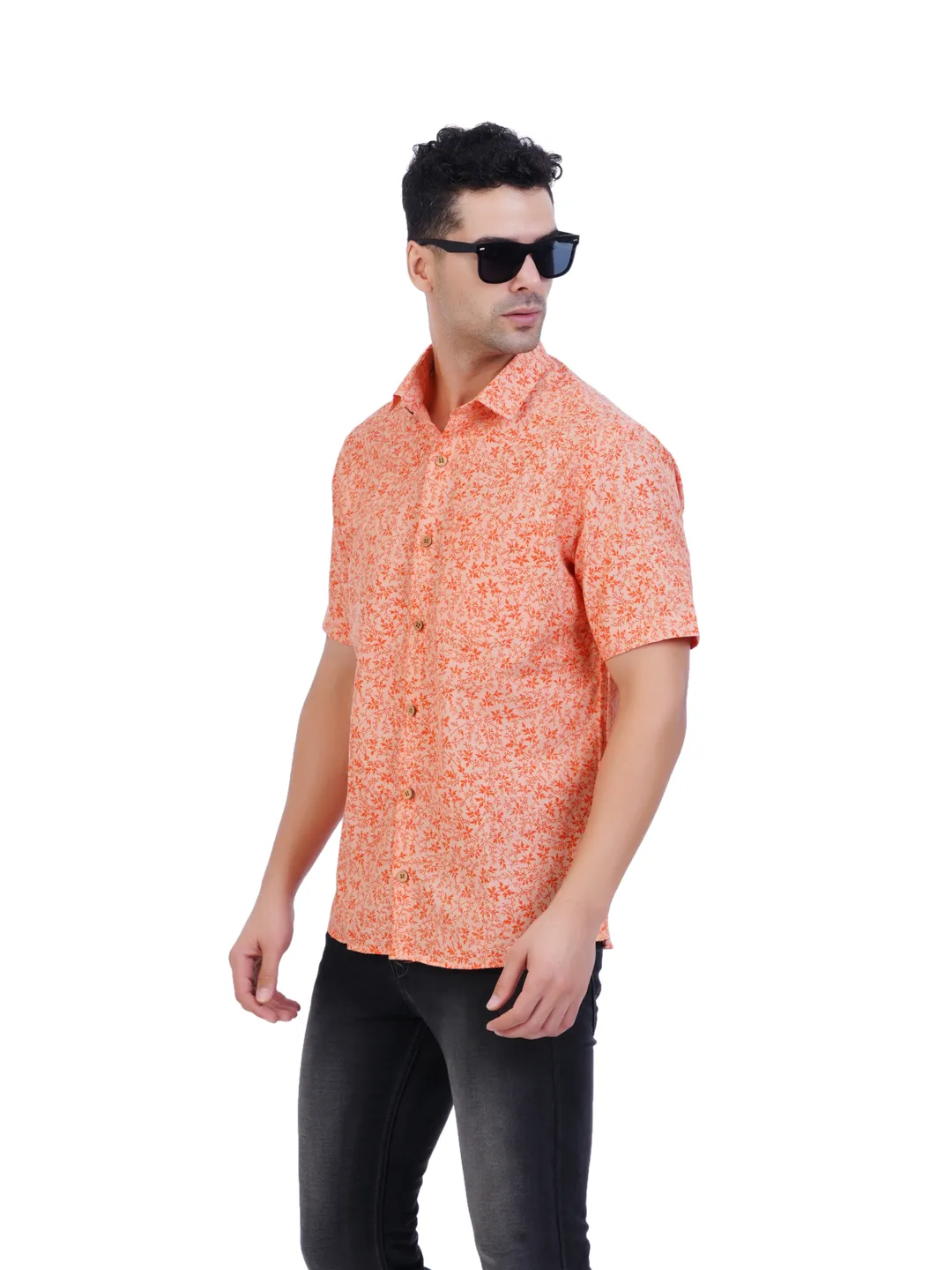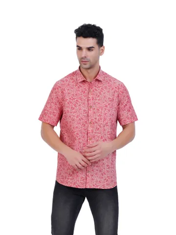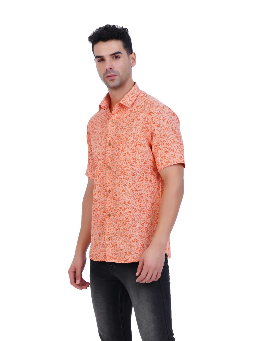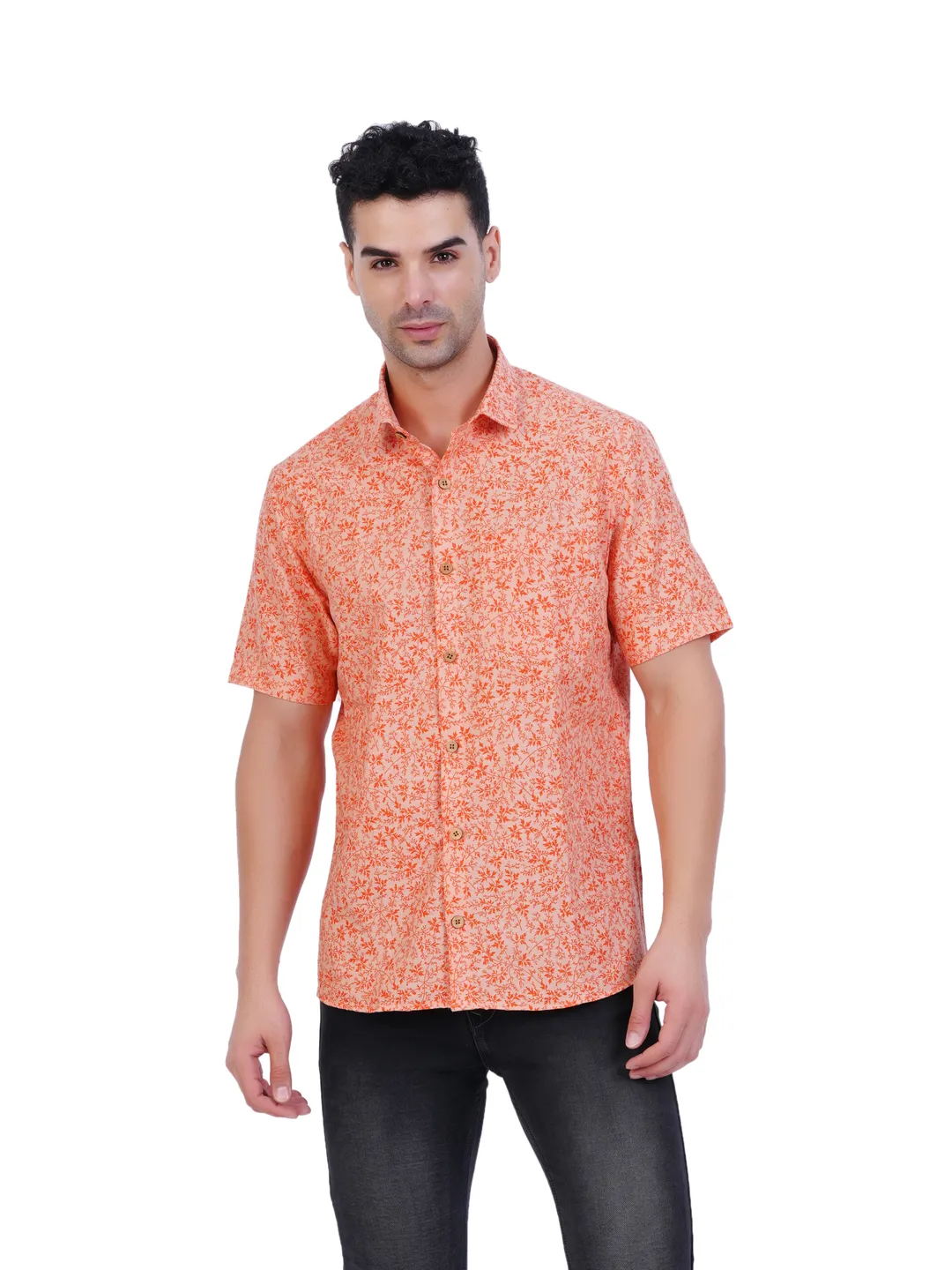 Mens Printed(Leaf) Orange Colour Half Hand Shirt