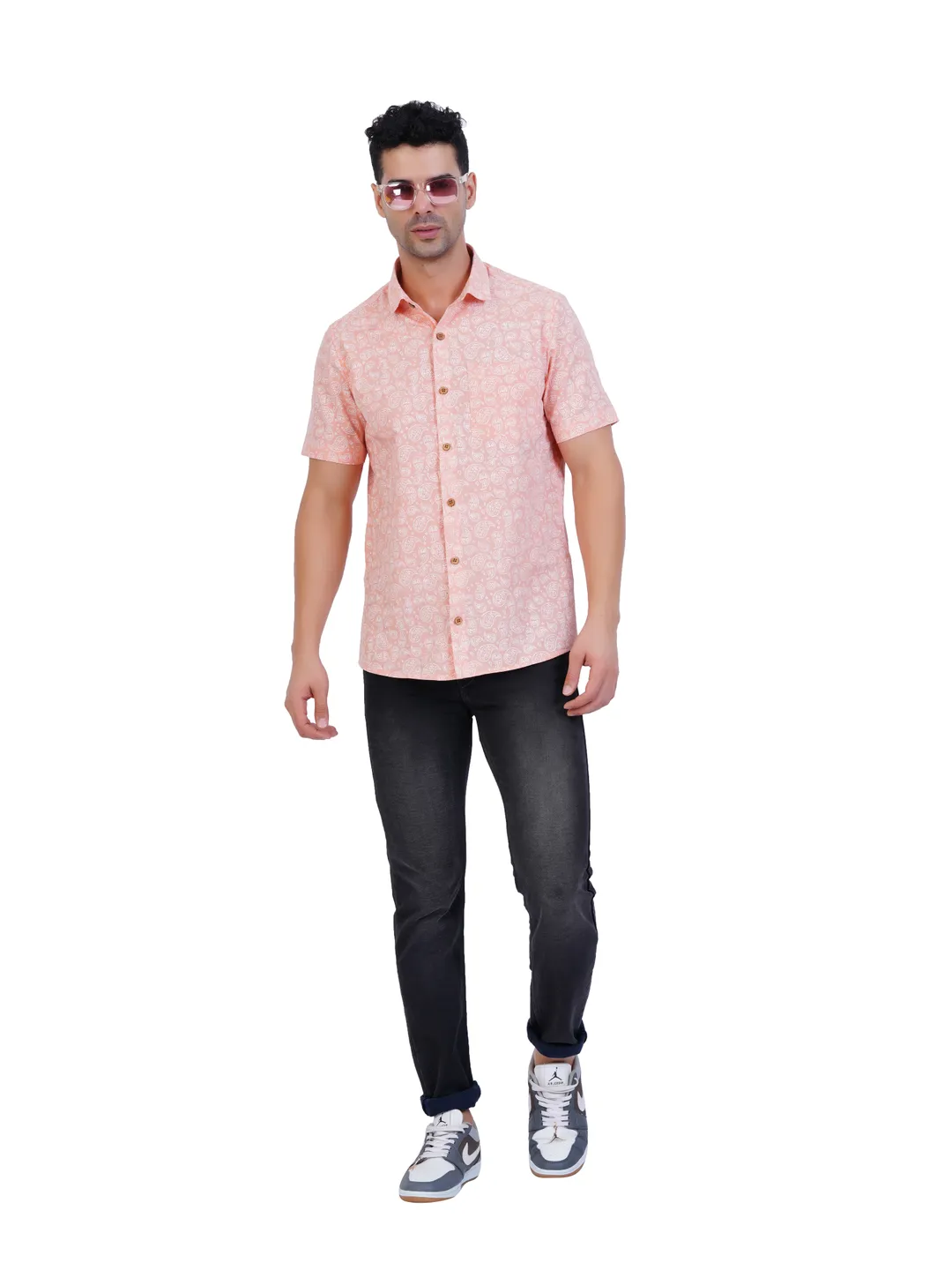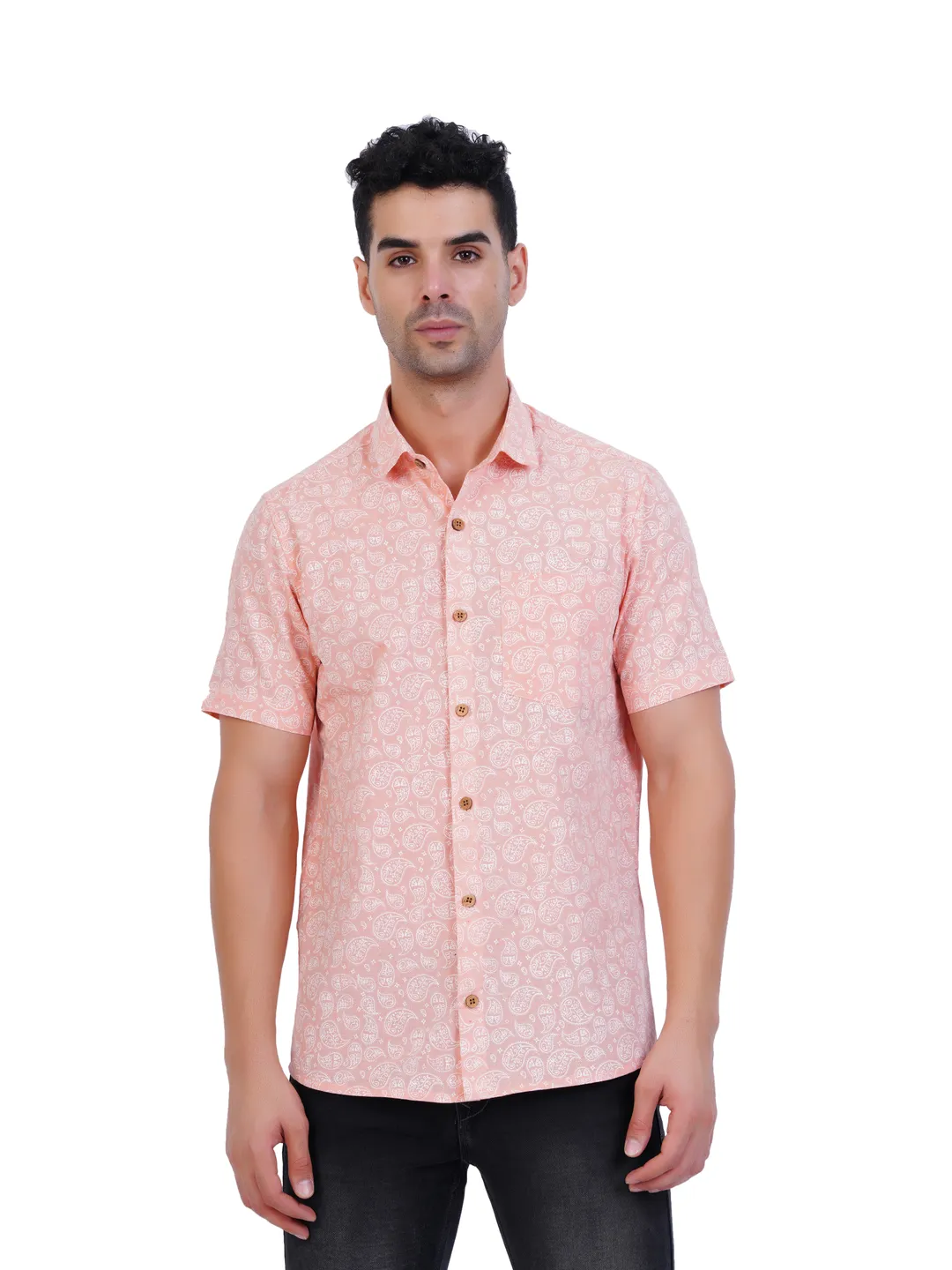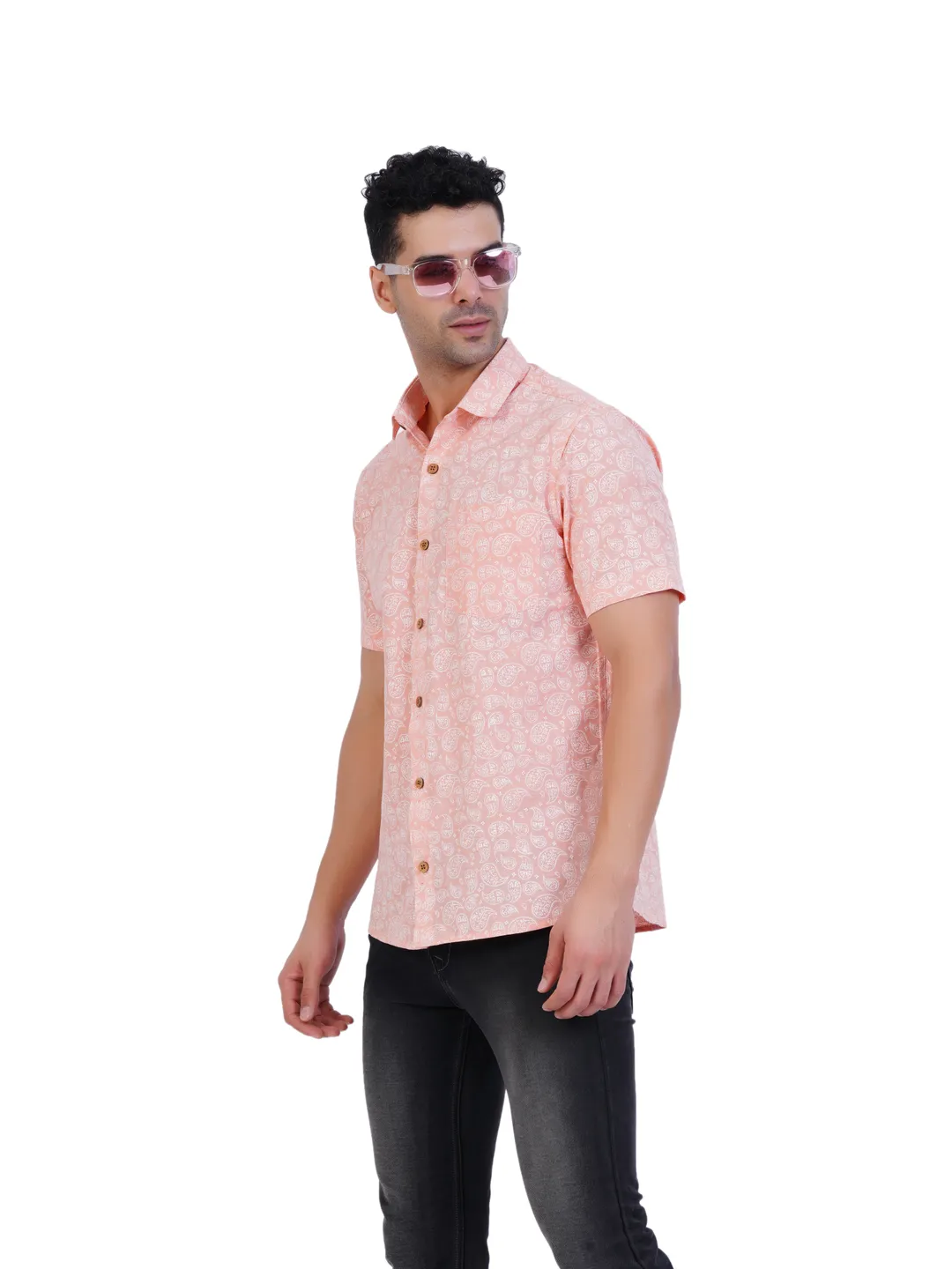 Product Details Printed slim-fit shirts with half sleeves and curved hems create a stylish look when combined with well-coordinated trousers. This ensemble is perfect for casual occasions, featuring subtle designs and vibrant colors that elevate your overall appearance.