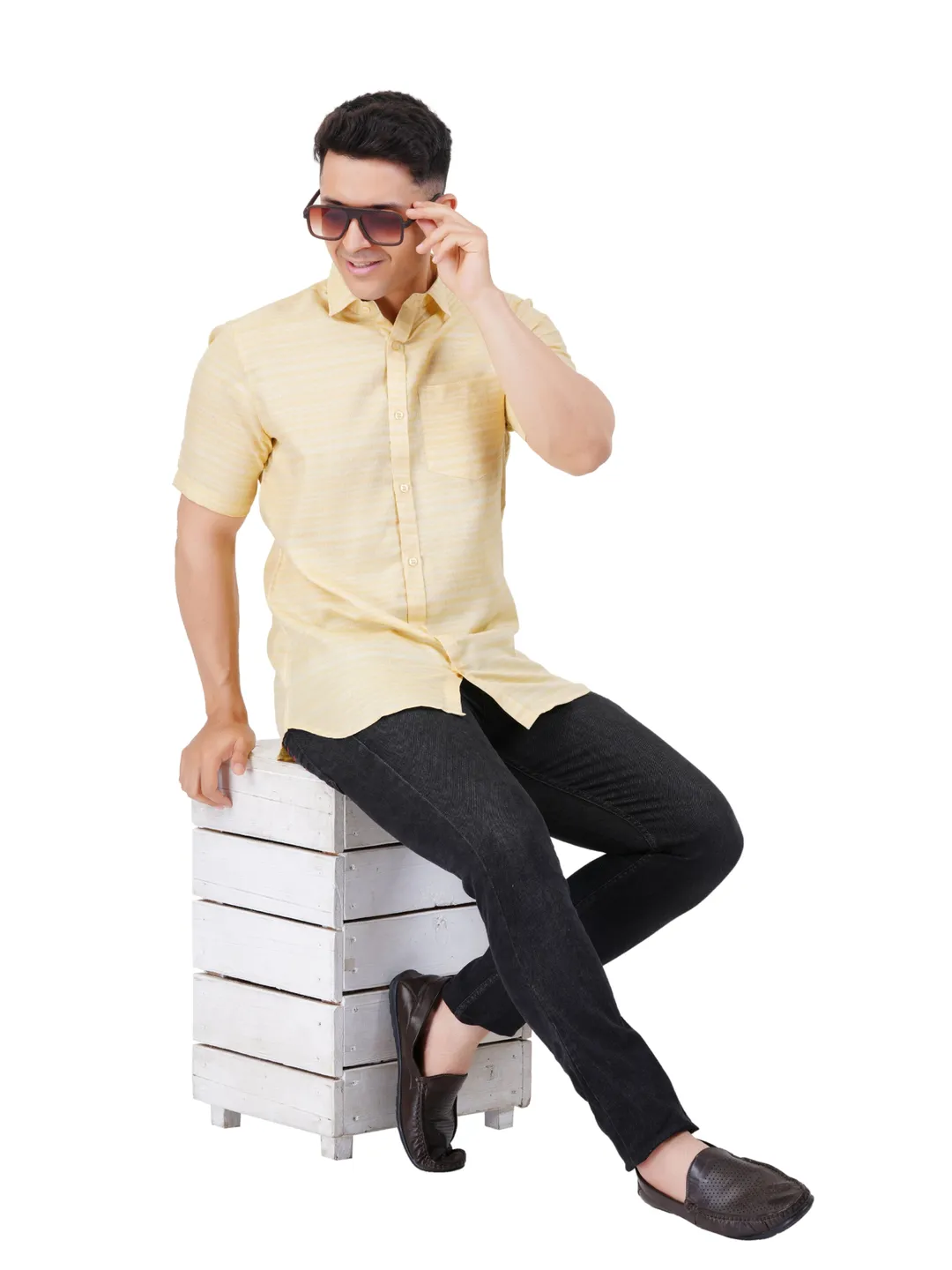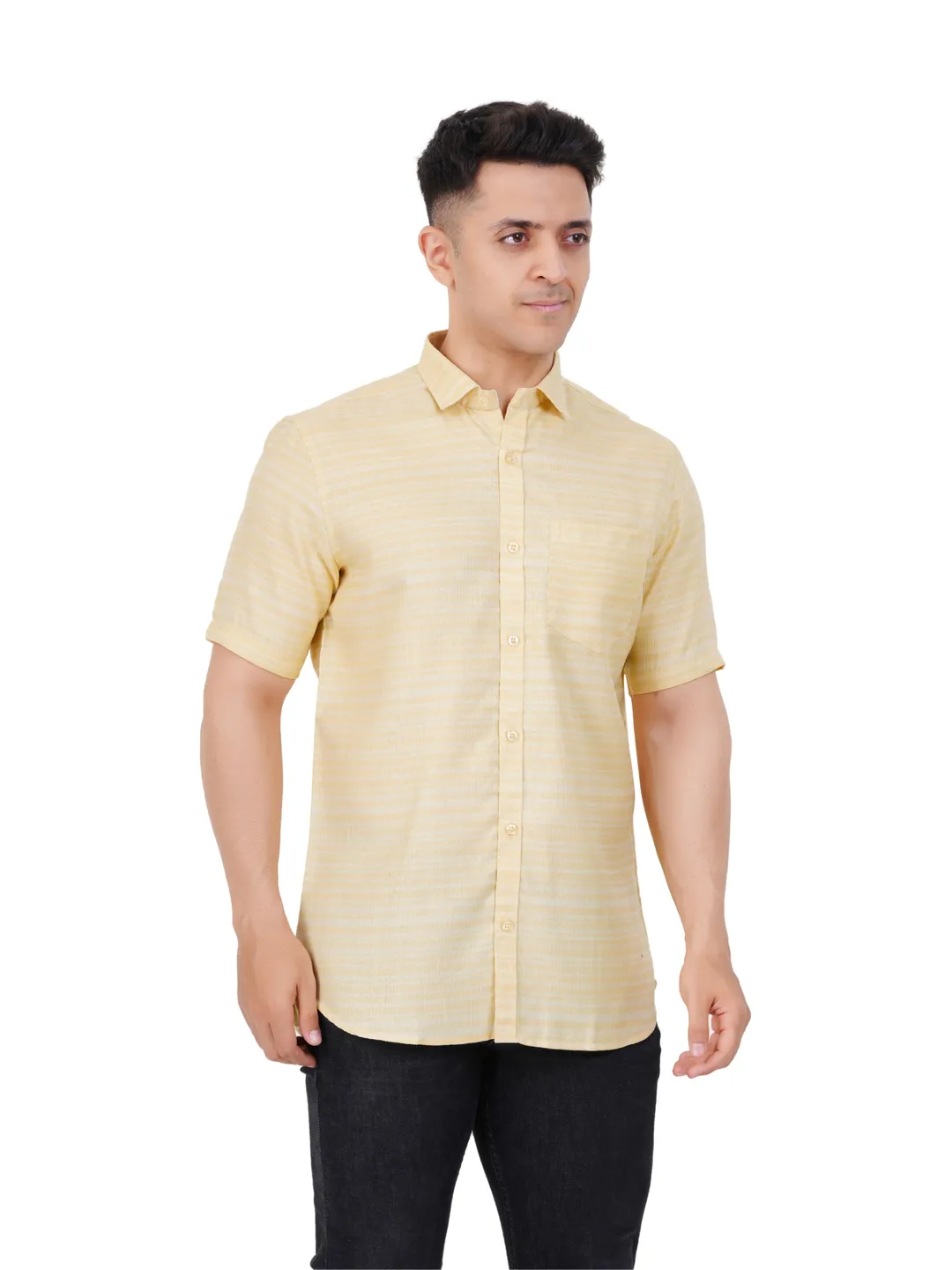 This classic wardrobe staple, the Self Design Multi Colour Half Sleeve Shirt for mens, combines style and versatility seamlessly. Crafted from high-quality Poly Cotton, breathable fabric, it guarantees comfort all day long. The shirt features a tailored fit that flatters all body types, making it ideal for both formal events and casual gatherings. You can pair it with a dhoti for a refined look, or choose pants or jeans for a more laid-back vibe. Its timeless design offers countless styling options, ensuring you always look your best.The perfect match for white dhotis also!