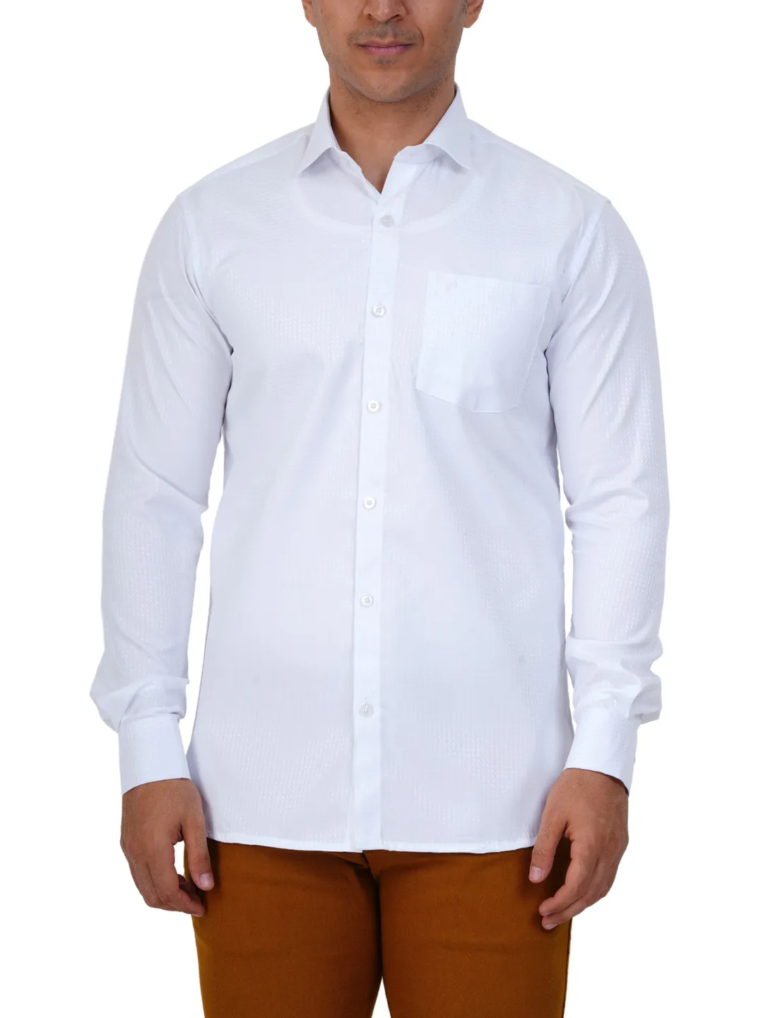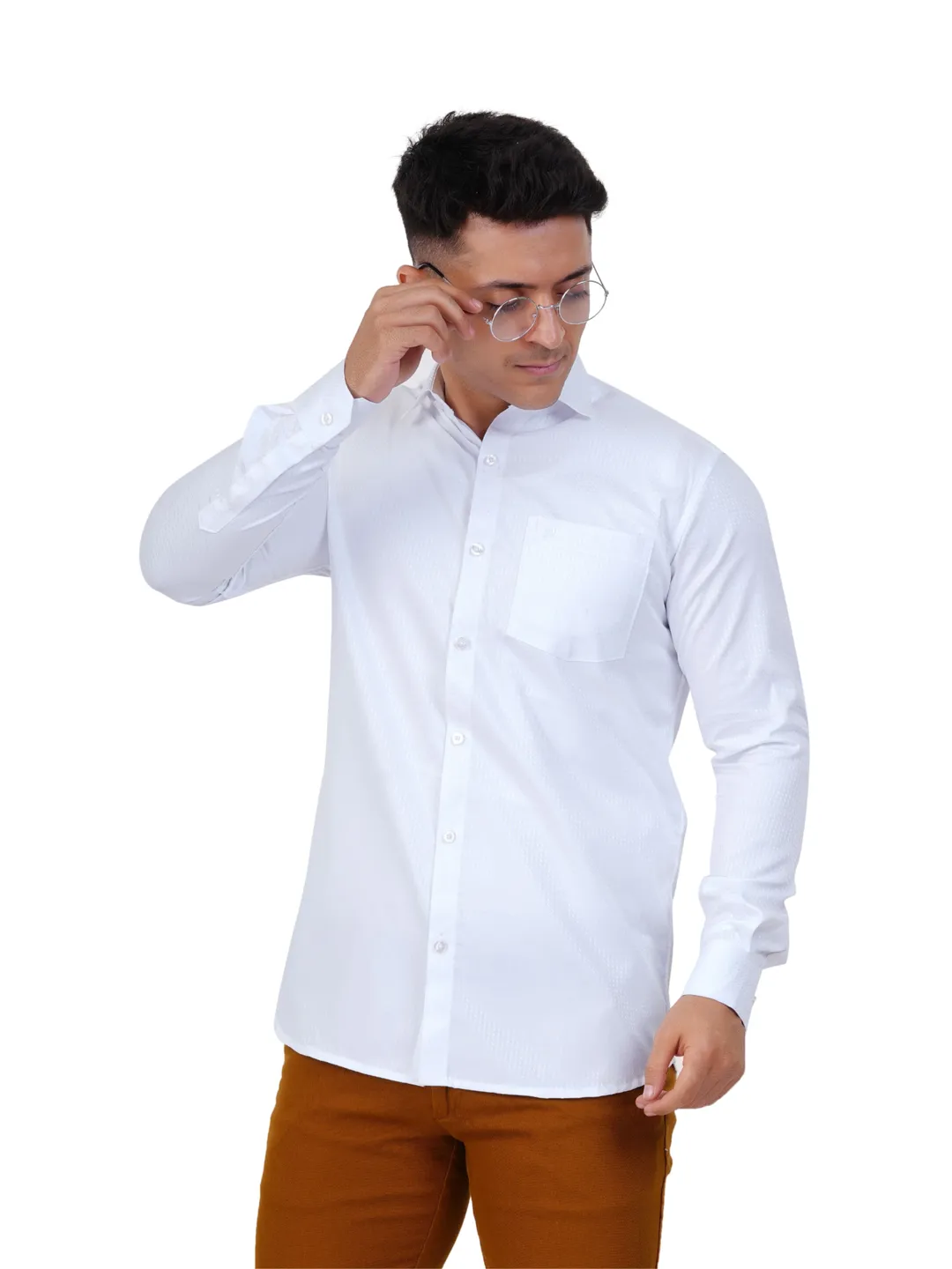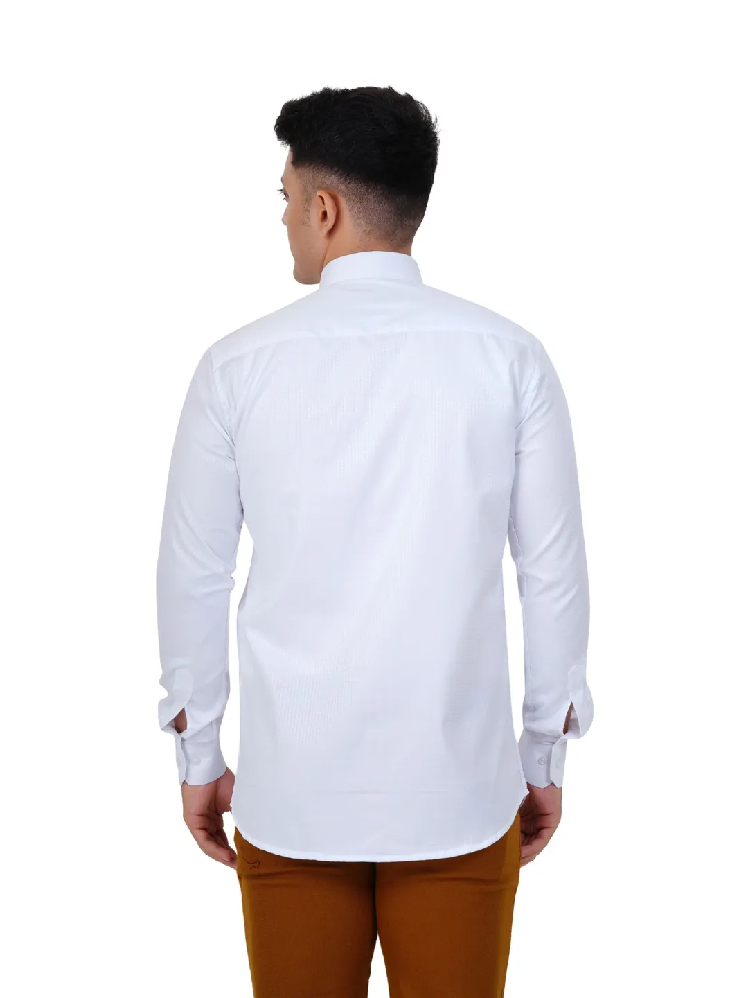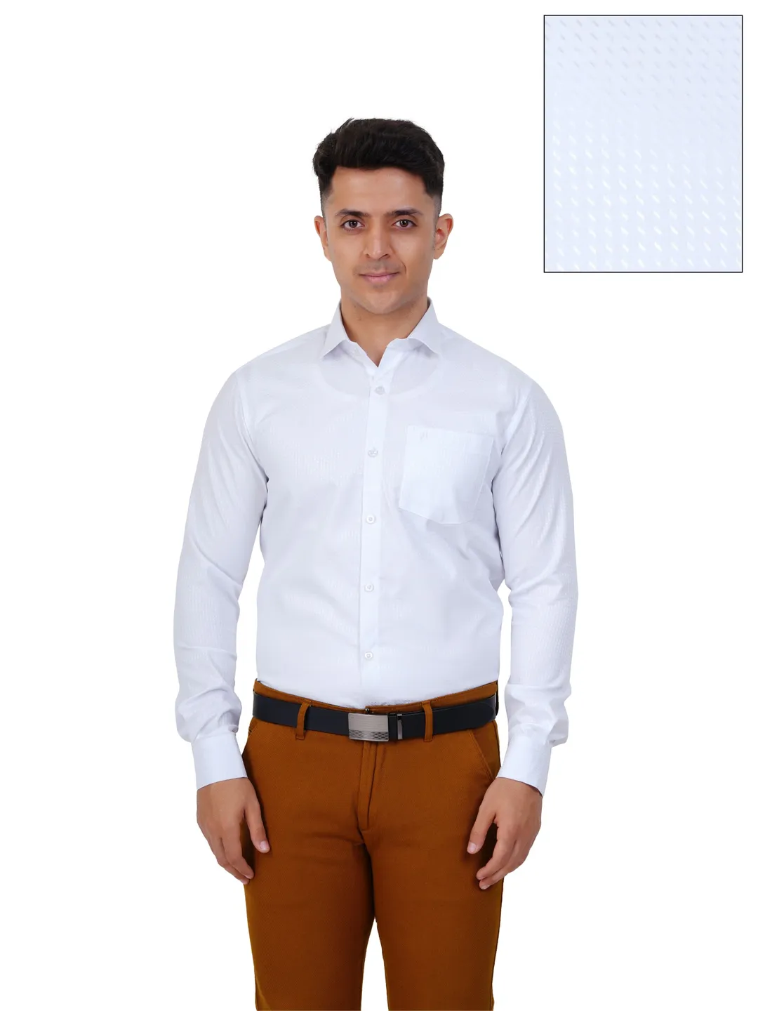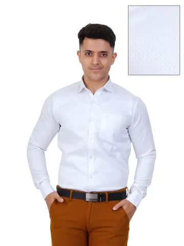 Mens Self Design Poly Cotton Moon Light White Full Sleeve Shirt(JAQ-02F)
