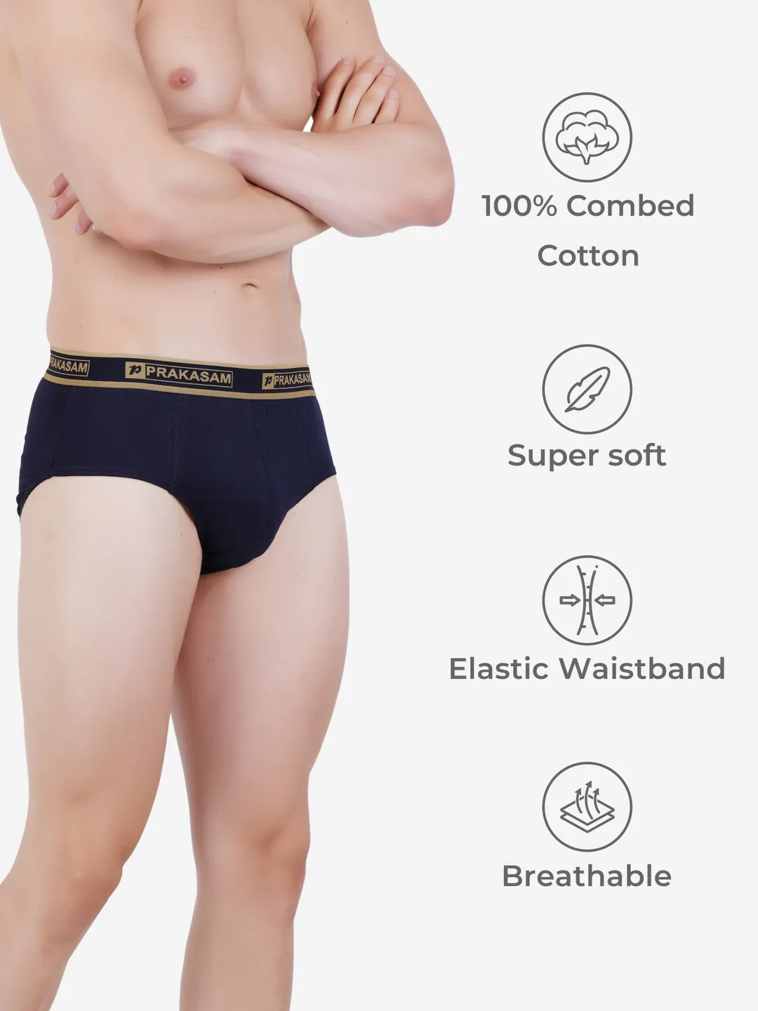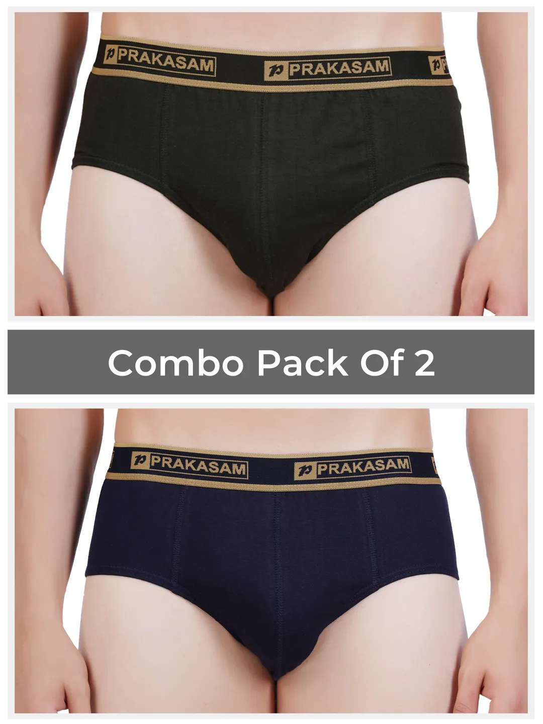 Prakasam Cotton -Buggi Mens 100% Pure Combed Cotton Outer Elastic Brief (Pack of 2)