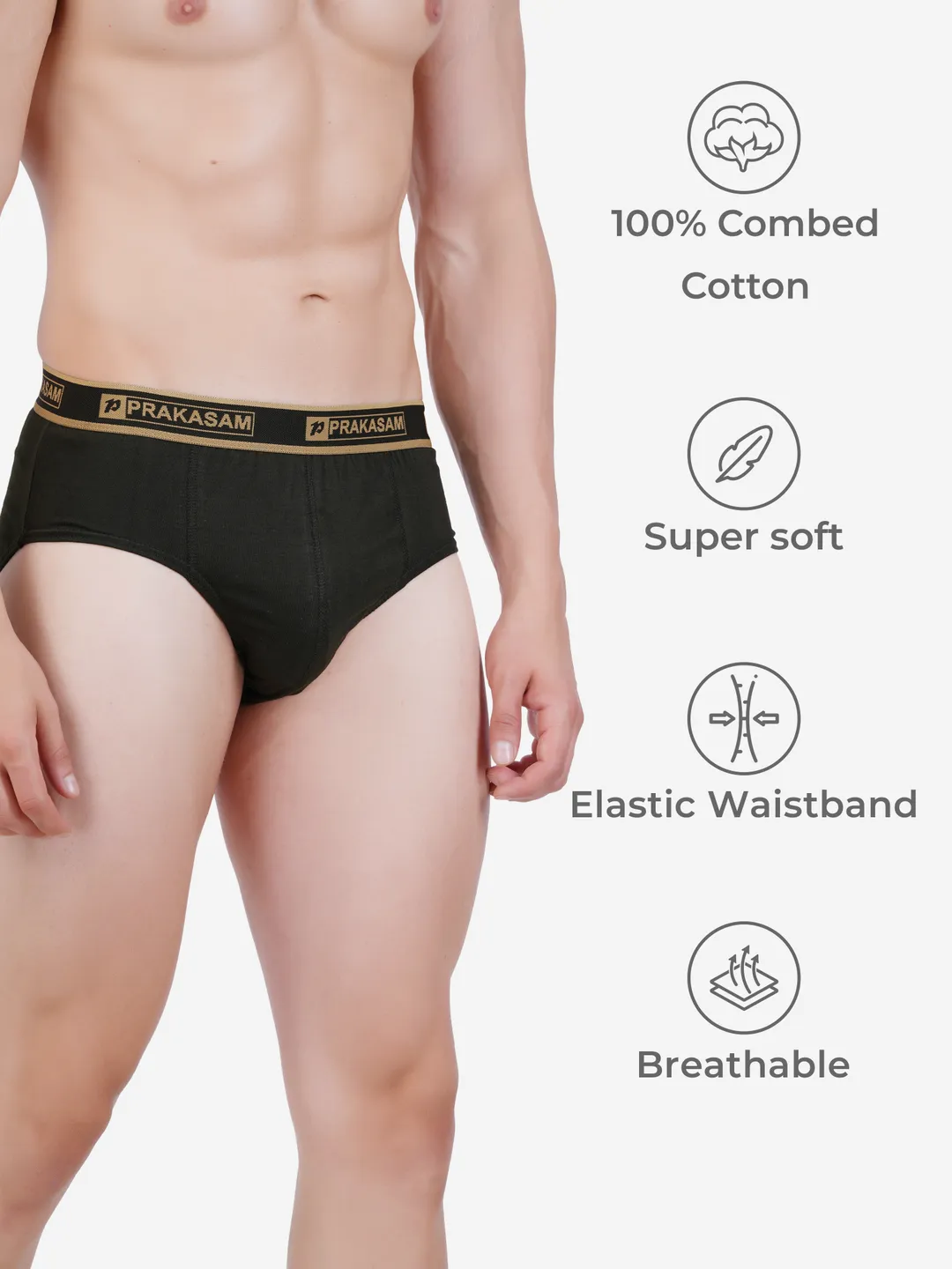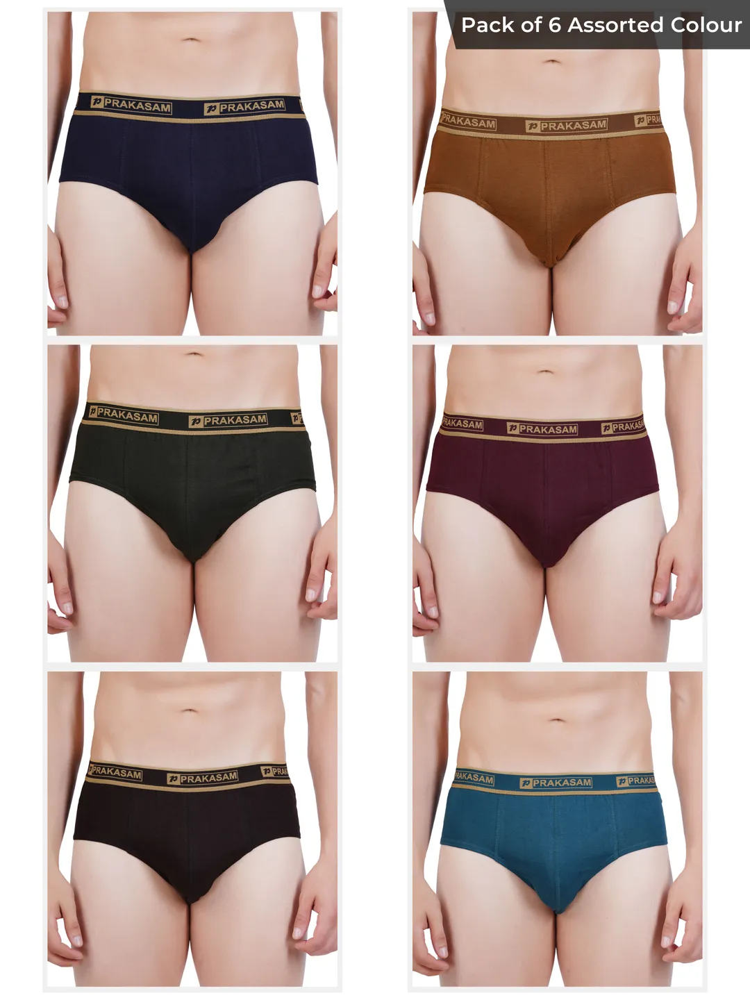 Prakasam Cotton -Buggi Mens 100% Pure Combed Cotton Outer Elastic Brief (Pack of 6)