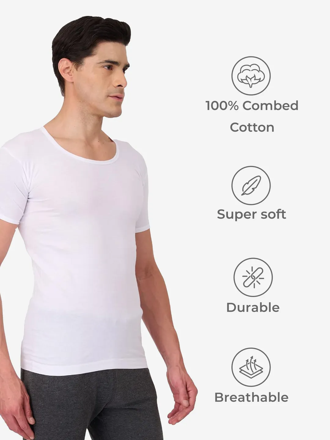 Discover the Ultimate Comfort in Premium Cotton with the Prakasam Cotton Gold Mens 100% Pure Combed Cotton RN-Vest (Pack of 3). These soft, breathable cotton vests are your perfect base layer for all-day comfort. The smooth, premium combed cotton retains its shape wash after wash while providing a tailored fit and full range of motion. The sleeveless style allows your skin to breathe easy, keeping you cool, dry, and comfortable whether lounging at home or running errands around town. With Prakasam Cotton Gold, you can trust the exceptional quality and craftsmanship of one of India's leading brands. Experience unbeatable comfort and ease with this essential 3-pack of men's cotton vests, designed for reliable performance and everyday wear. Treat yourself to the softness and quality you deserve. Add the Prakasam Cotton Gold Mens 100% Pure Combed Cotton Round Neck with sleeves-Vest 3-Pack to your cart today!