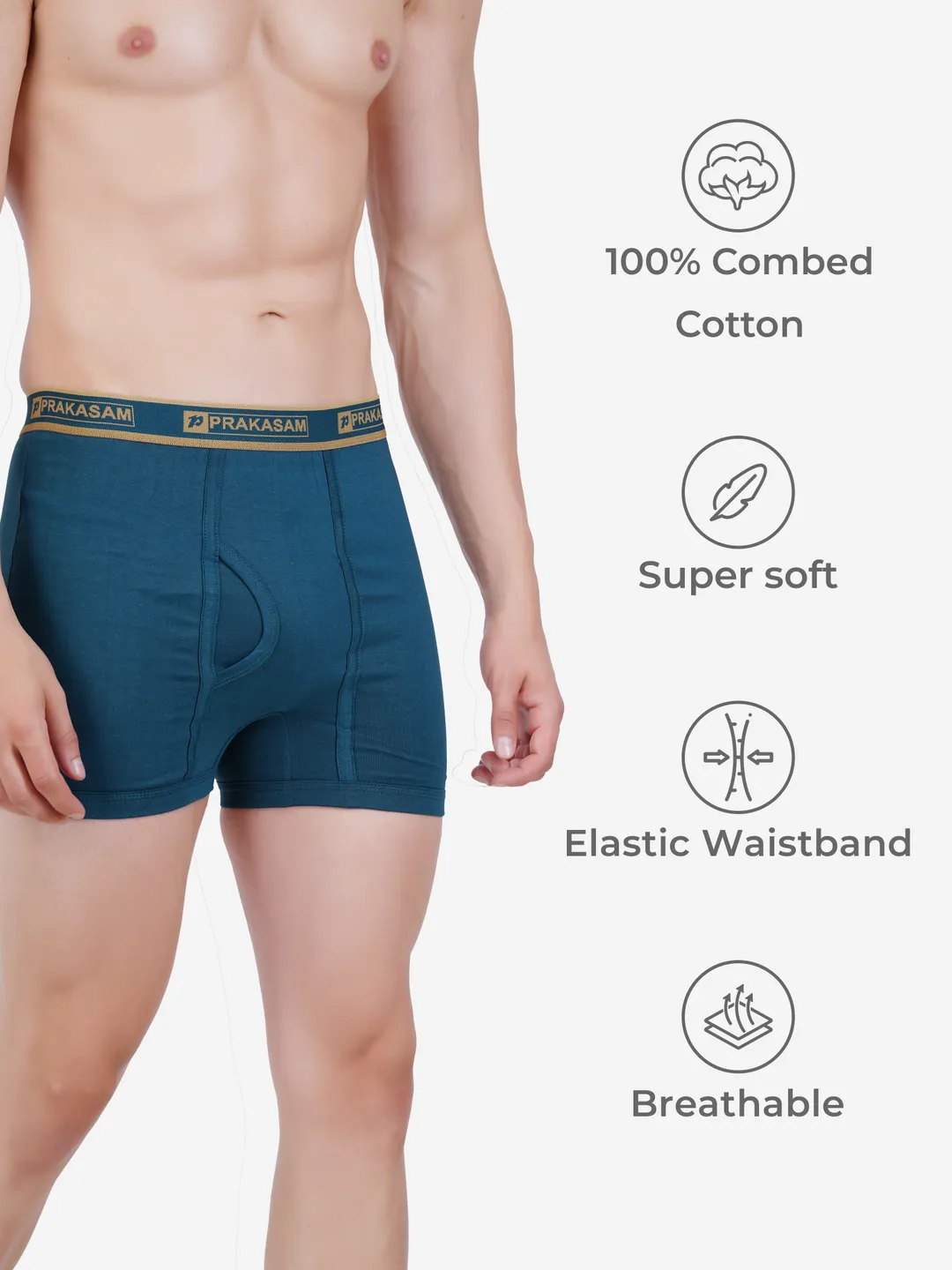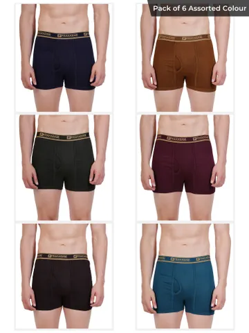 Prakasam Cotton -Marlow Mens 100% Pure Combed Cotton Outer Elastic Without Pocket Trunks (Pack of 6)