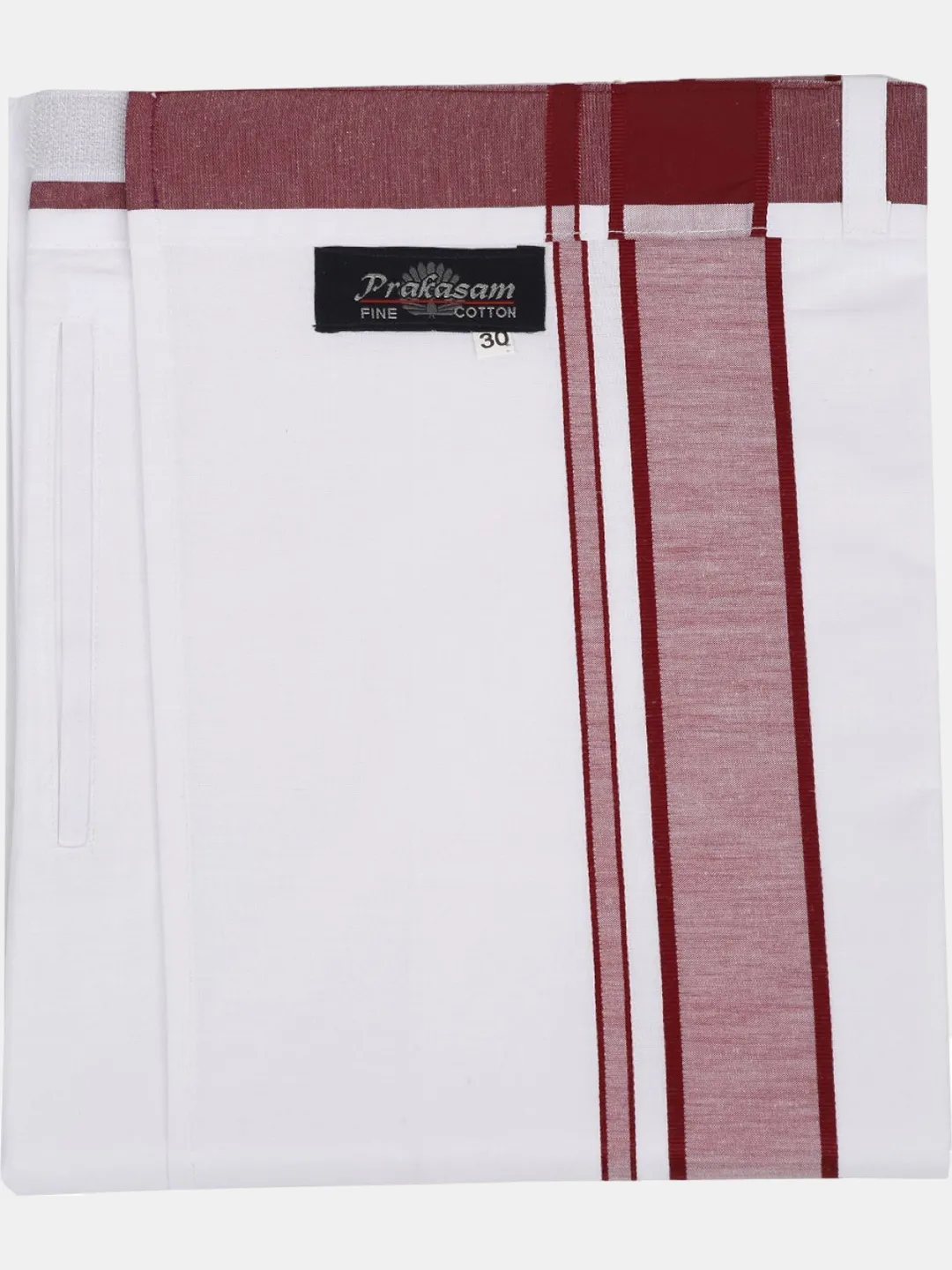 Premium Cotton Big Size Border (Moon) Readymade Single Pocket Cherry Dhoti