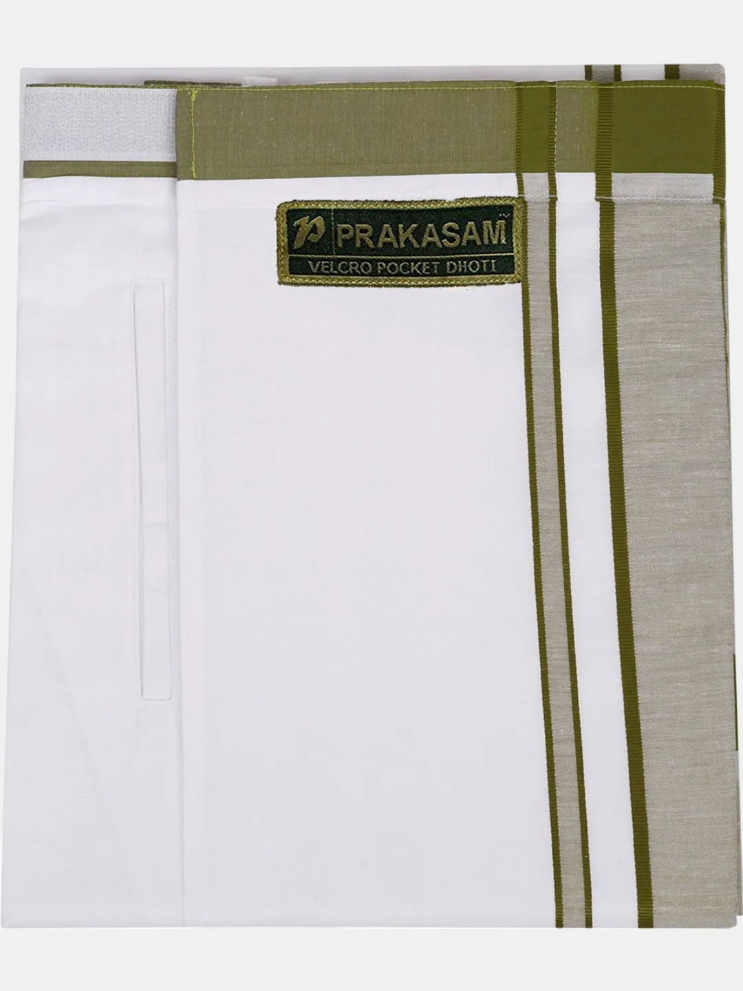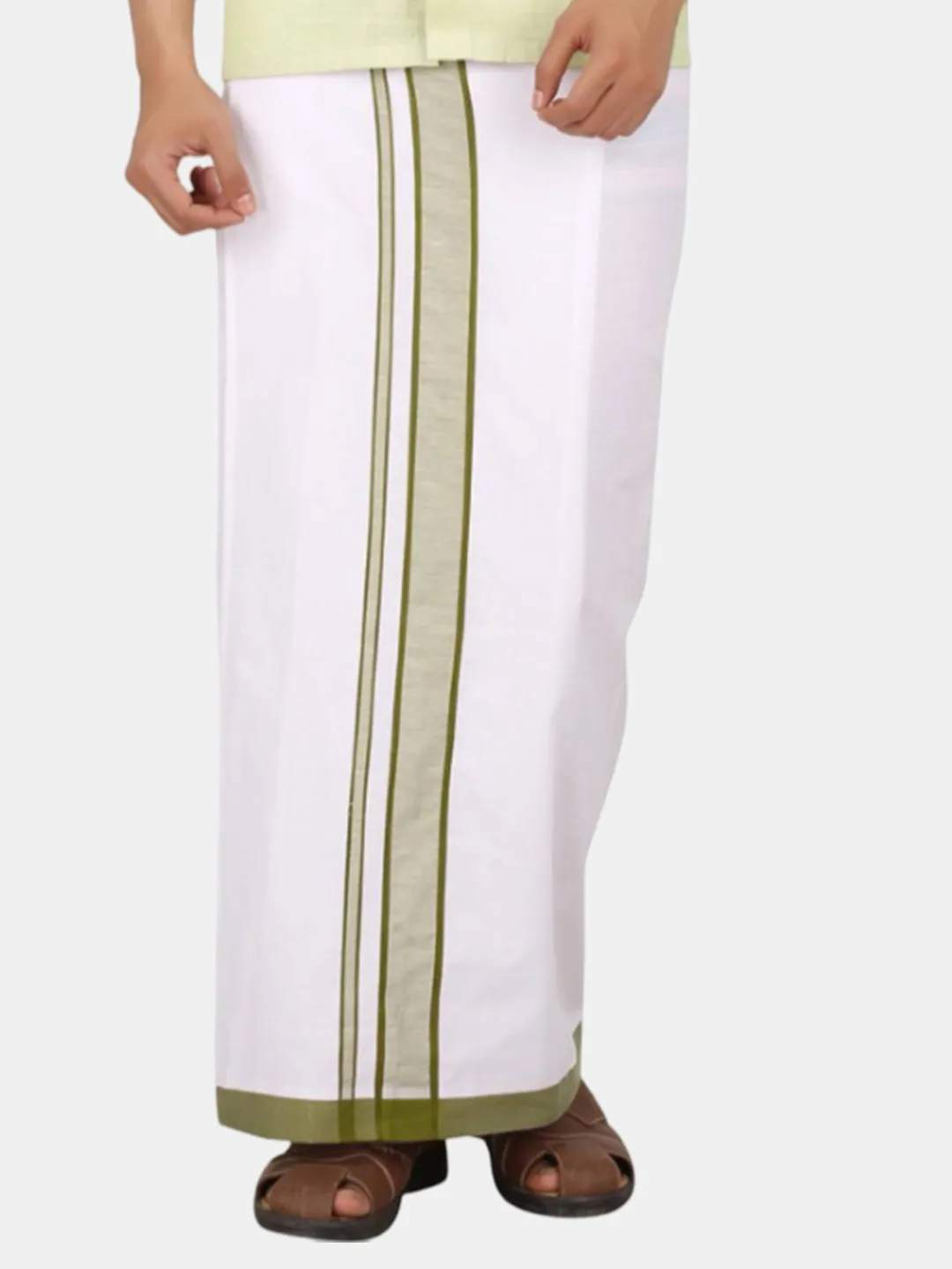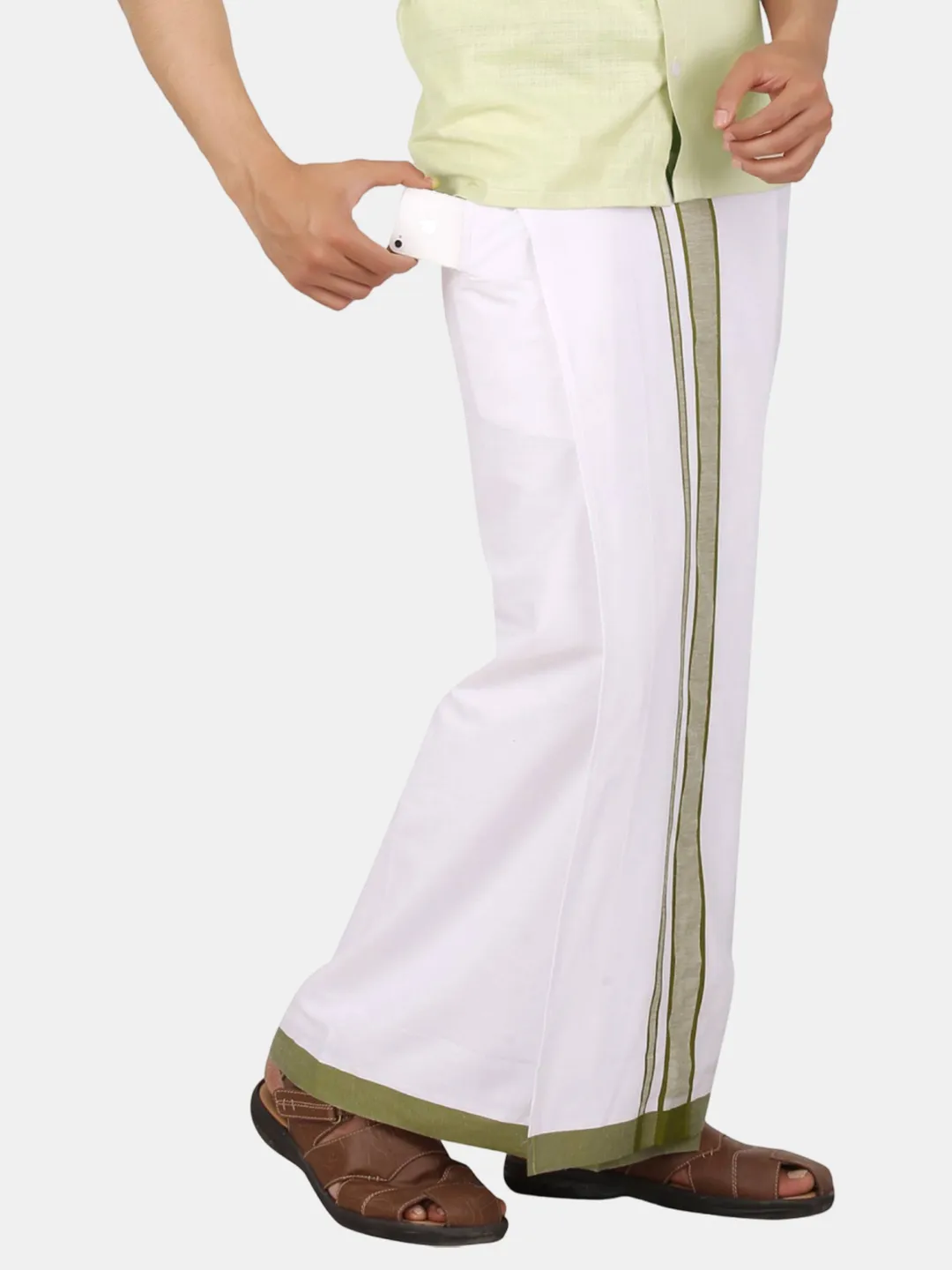 Premium Cotton Big Size Border (Moon) Readymade Single Pocket Mild Green Dhoti