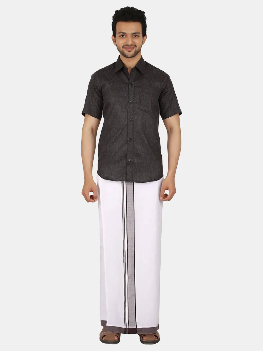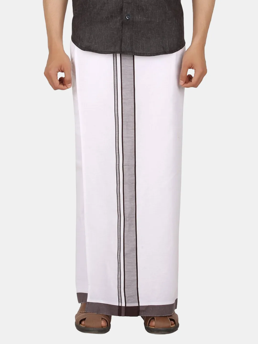 Product Details Premium Quality Men???s Single Dhoti White dhoti with big Size colour border.The border looks very smart and border matching with shirt.