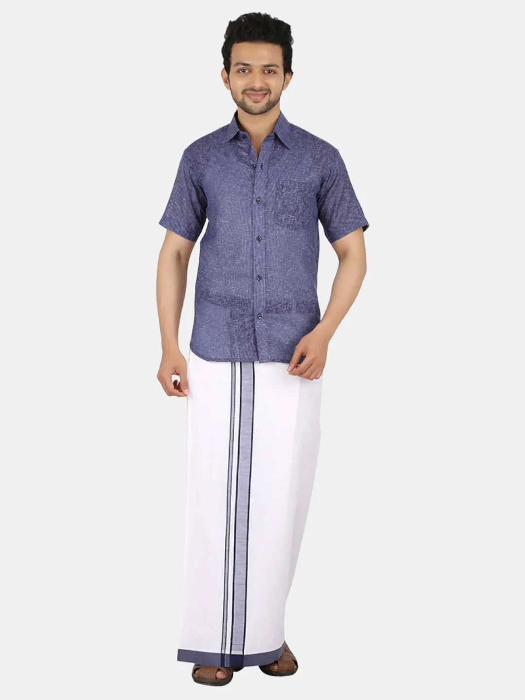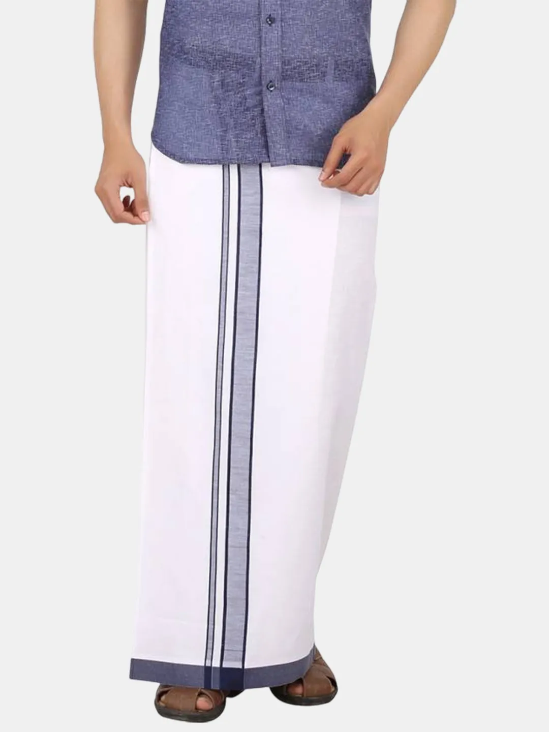 Product Details Premium Quality Men???s Single Dhoti White dhoti with big Size colour border.The border looks very smart and border matching with shirt.