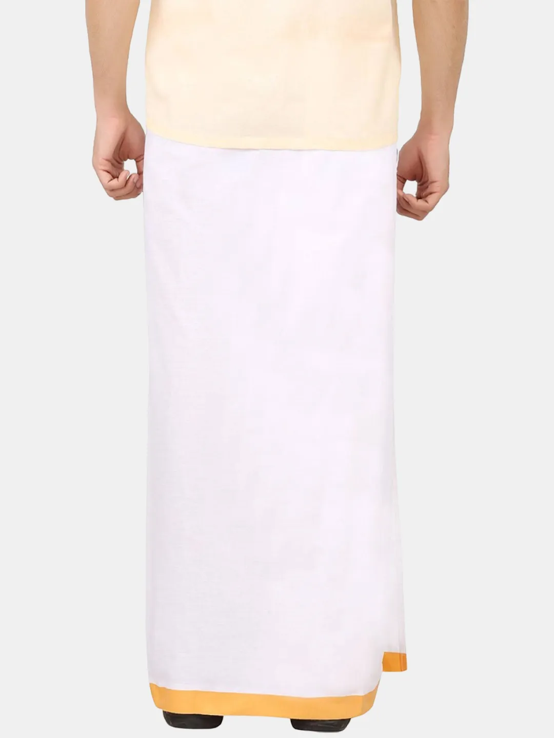 Premium Quality Men???s Single Dhoti White dhoti with big Size colour border.The border looks very smart and border matching with shirt.