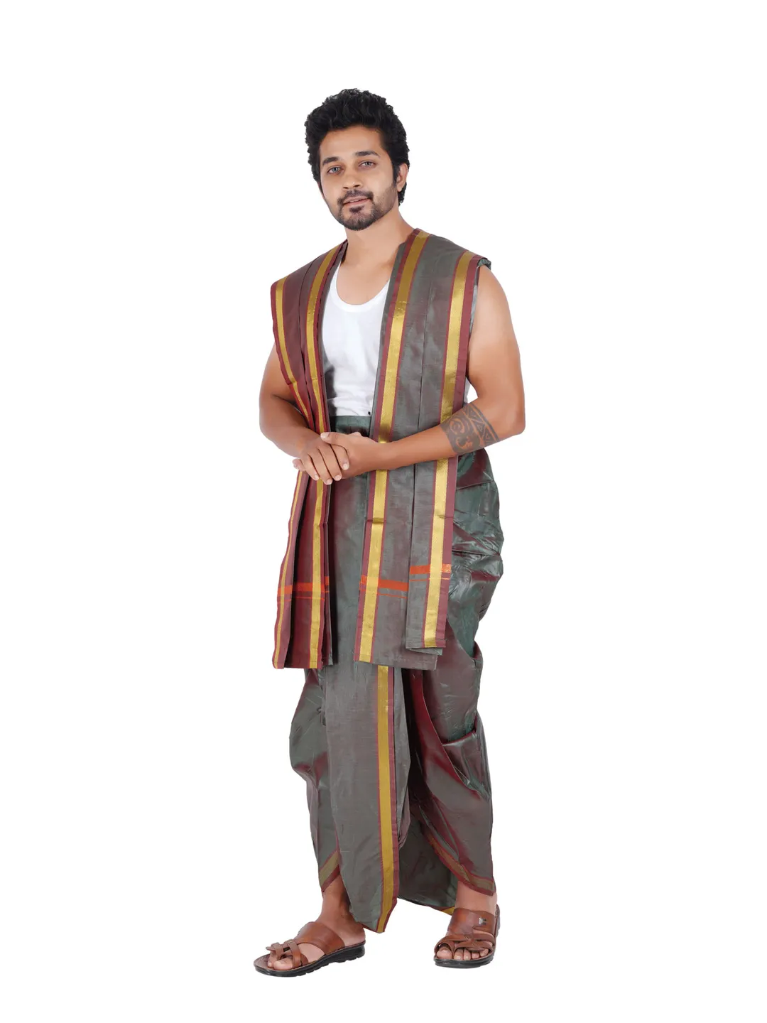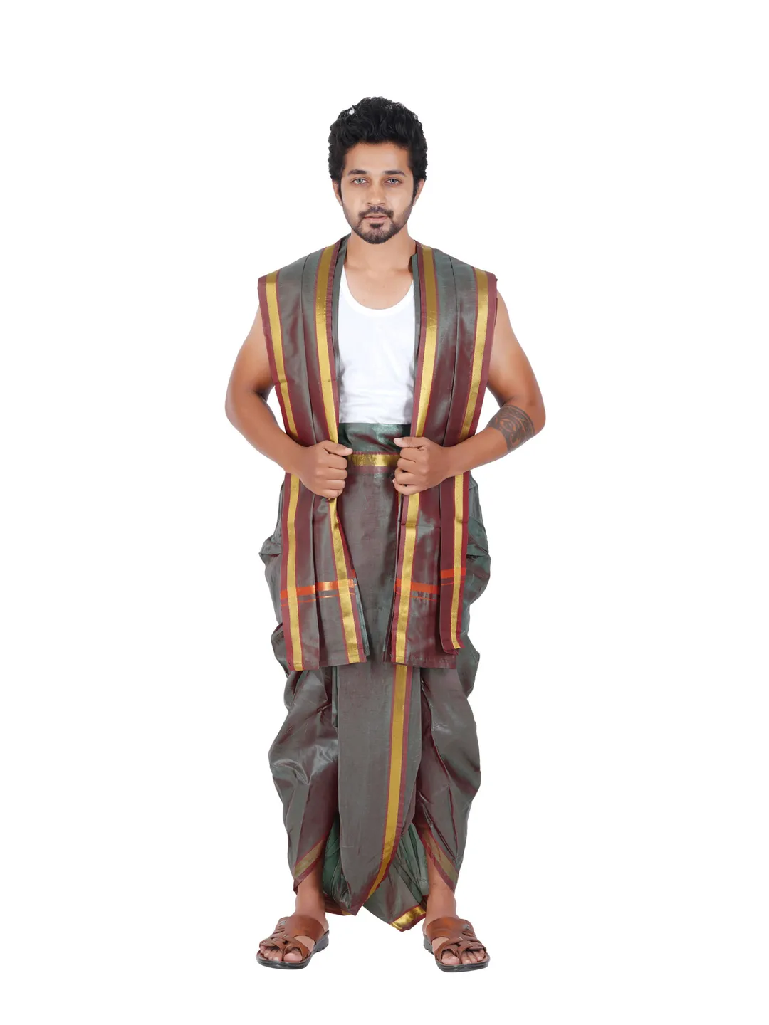 Ready To Wear (Readymade) Asha Silk 9x5 Panchakacham With Towel set (Jari-50k)