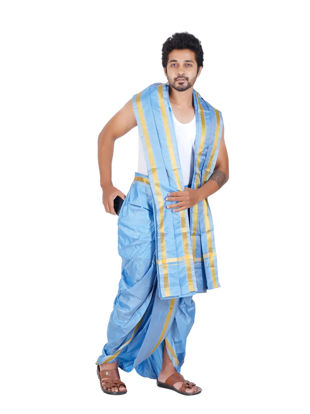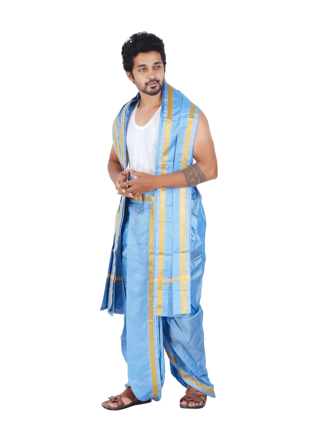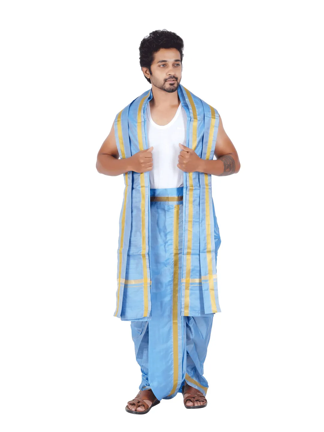 Ready To Wear (Readymade) Asha Silk 9x5 Panchakacham With Towel set (Jari-50k)