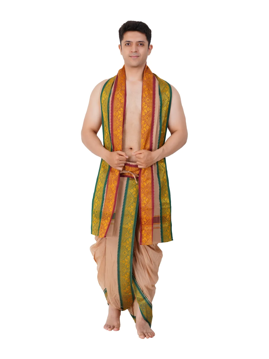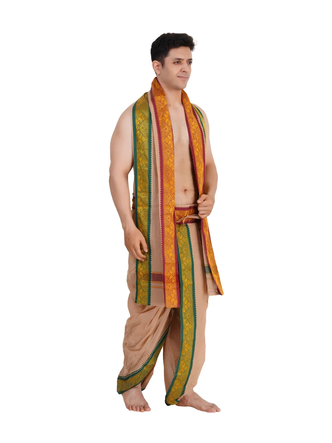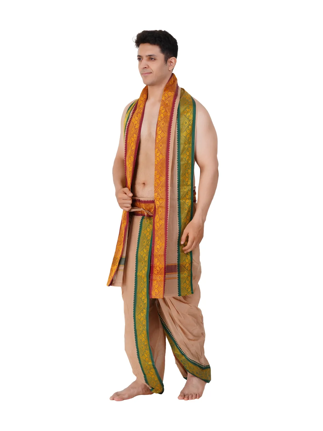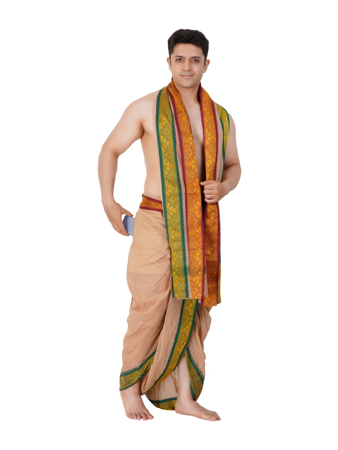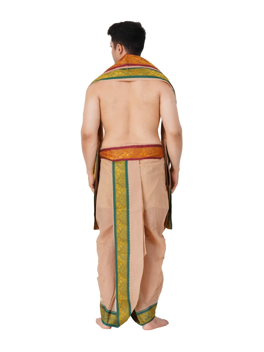 Ready To Wear (readymade) Cotton Biscut Kavi Colour Panchakacham with Towel Set (3 inch)