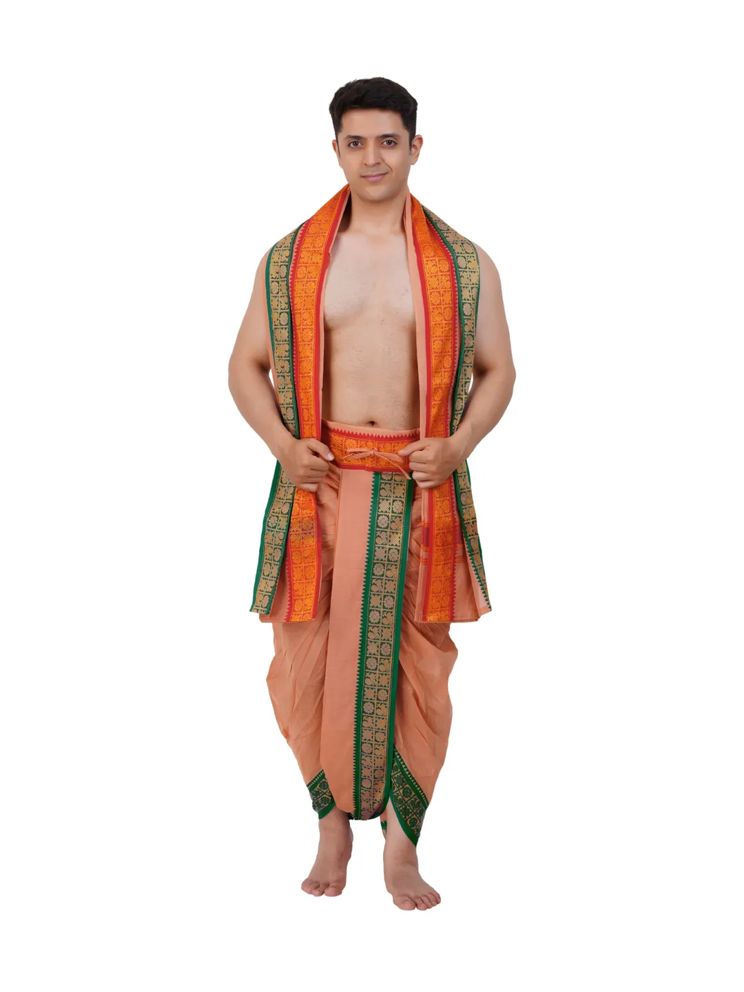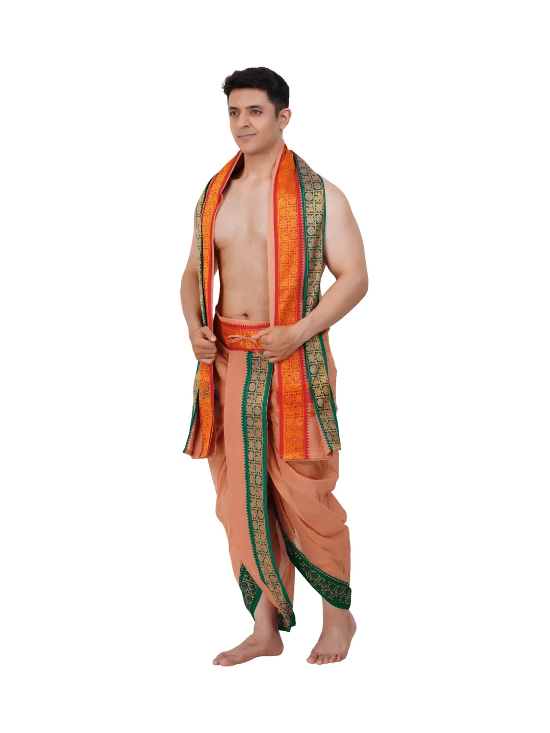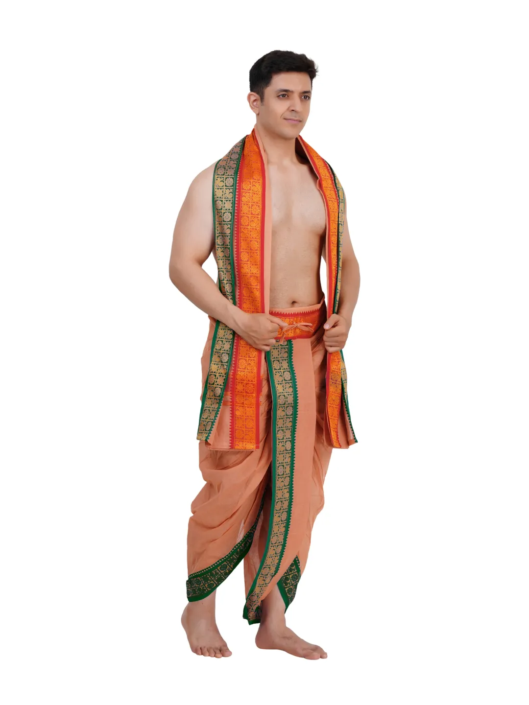 Ready To Wear (readymade) Cotton Kavi Colour Panchakacham with Towel Set (3 inch)